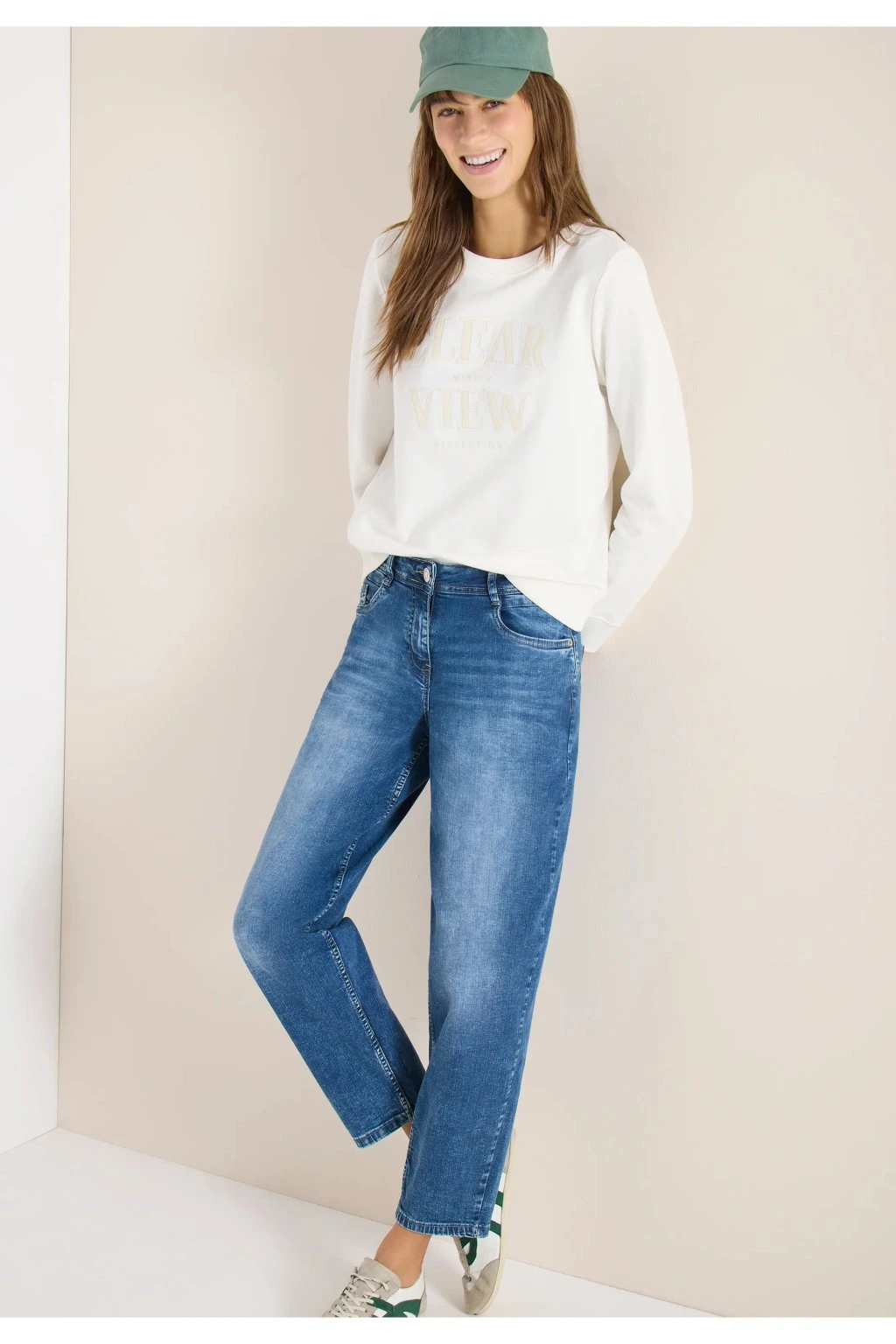 Dámske džínsy v modernom strihu sú ideálnou voľbou na každodenné nosenie. Majú klasické zapínanie na gombík a zips, praktické vrecká a pohodlný strih, ktorý dobre sedí a neobmedzuje v pohybe. Vďaka nadčasovému modrému odtieňu sa ľahko kombinujú s tričkom, blúzkou aj svetrom. Štýlový a univerzálny kúsok, ktorý využijete do práce aj na voľný čas.