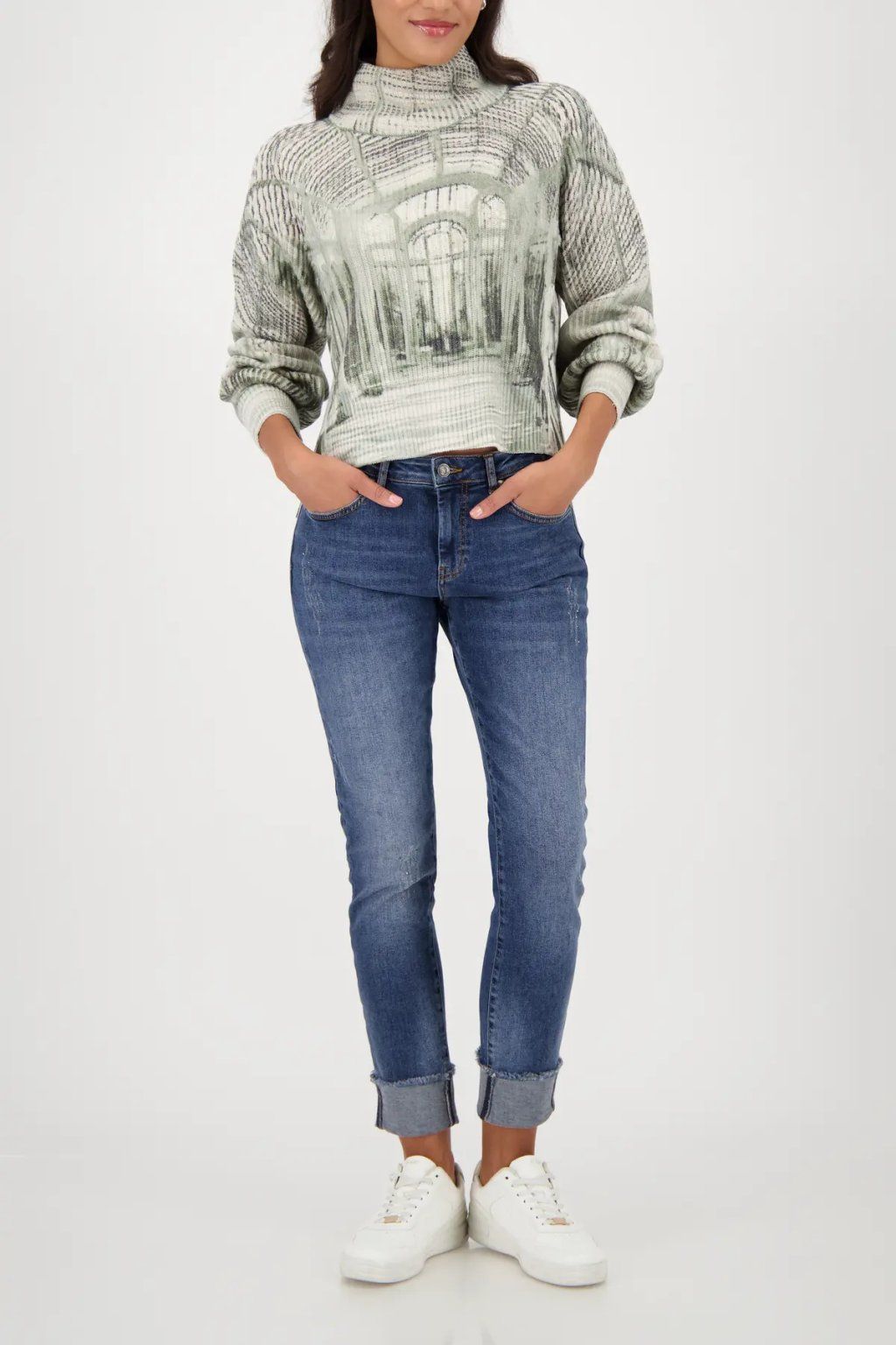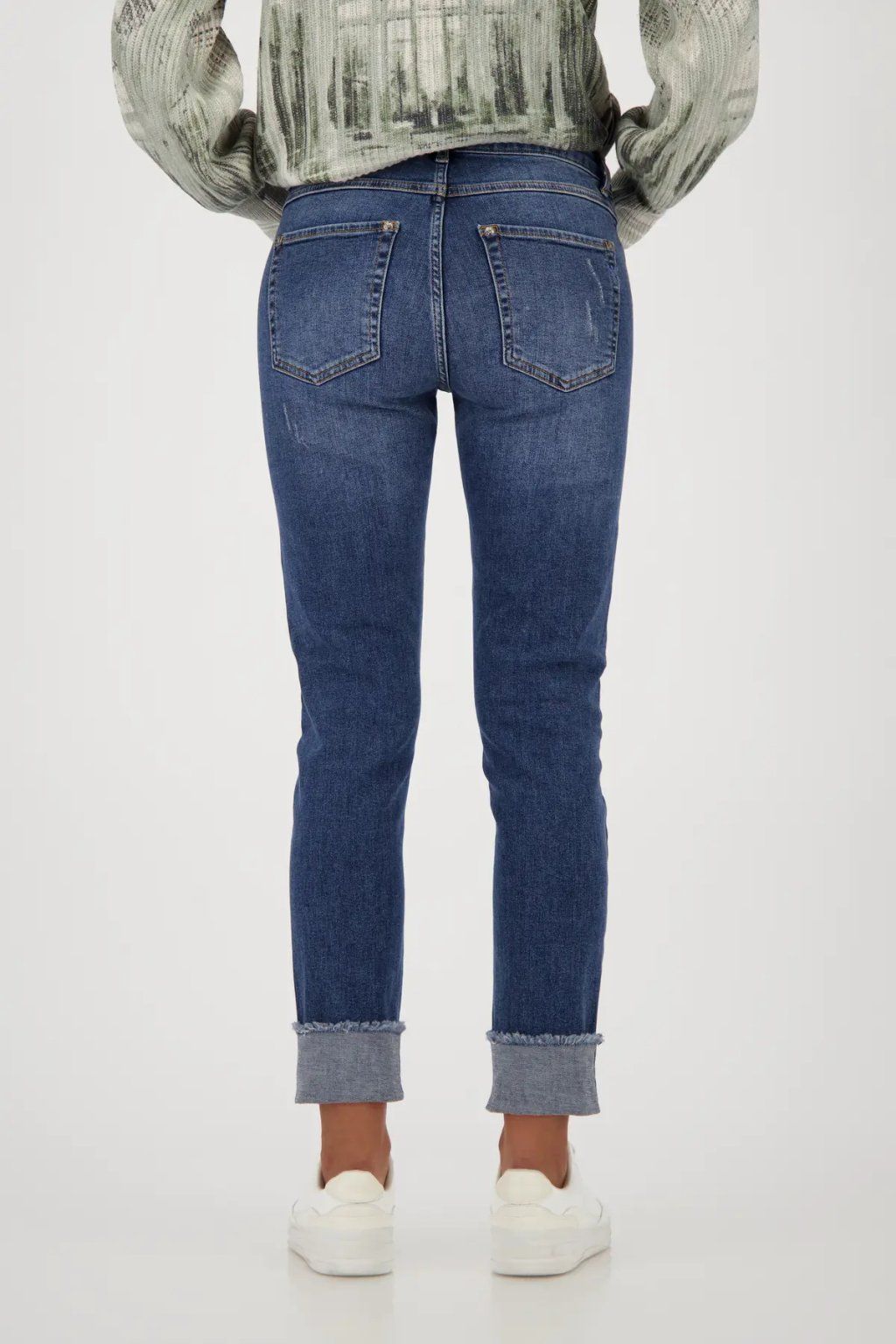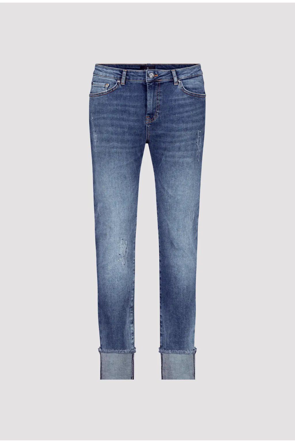 Dámske džínsy v klasickom modrom denimovom odtieni sú skvelou voľbou na každodenné nosenie. Priliehavejší strih krásne zvýrazní postavu, zatiaľ čo vyhrnuté nohavice s jemne rozstrapkaným lemom dodávajú modelu moderný a ležérny vzhľad. Jemné vyšisovanie a drobné ozdobné detaily podčiarkujú štýlový charakter džínsov, ktoré ľahko skombinujete s tričkom, blúzkou i svetrom. Pohodlný a nadčasový kúsok do mesta, do práce aj na voľný čas.