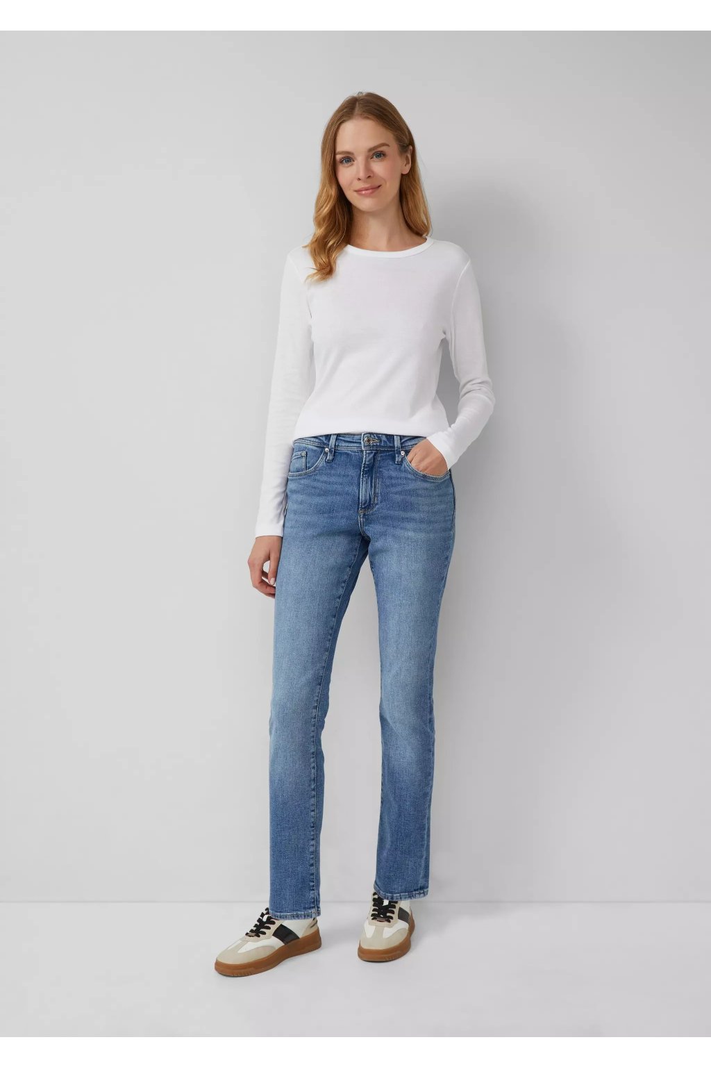 Objavte džínsy Betsy: perfektné slim fit džínsy pre každodenné nosenie. Vďaka pohodlnému stredne vysokému pásu a klasickému dizajnu s piatimi vreckami dokonale zapadnú do vášho života. Nadčasový spoločník v regularnej dĺžke pre uvoľnené chvíle.