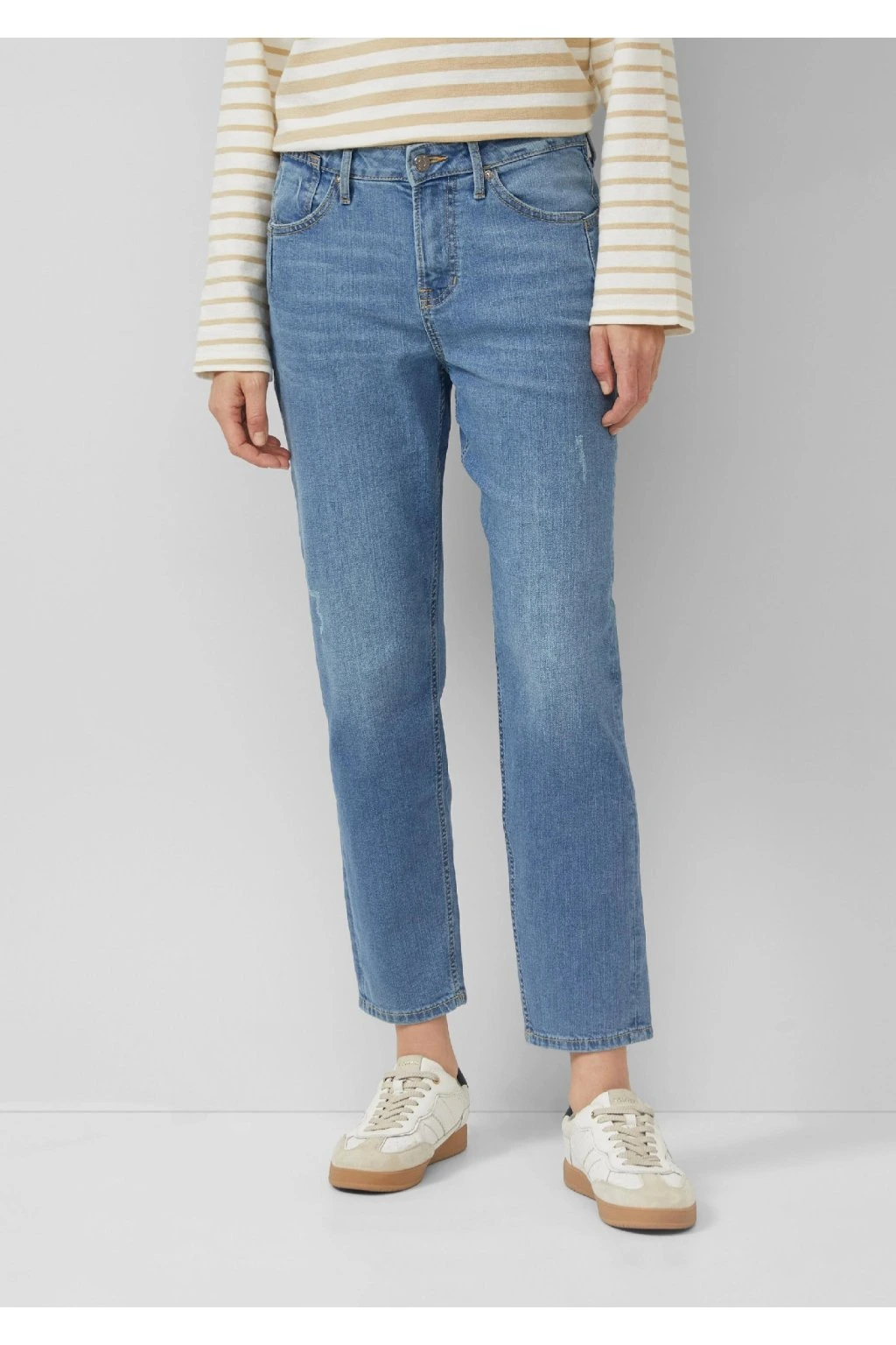 Moderné dámske džínsy vo svetlom modrom odtieni sú ideálnou voľbou pre pohodlný a štýlový každodenný outfit. Príjemný denim s ľahkou pružnosťou sa prispôsobí postave a zaistí komfort pri nosení po celý deň. Klasický strih s praktickými vreckami a skrátenou dĺžkou nohavíc pôsobí nadčasovo a ľahko sa kombinuje s tričkom, svetrom aj košeľou. Perfektný kúsok do práce, na voľný čas aj do mesta, ktorý by nemal chýbať v žiadnom šatníku.