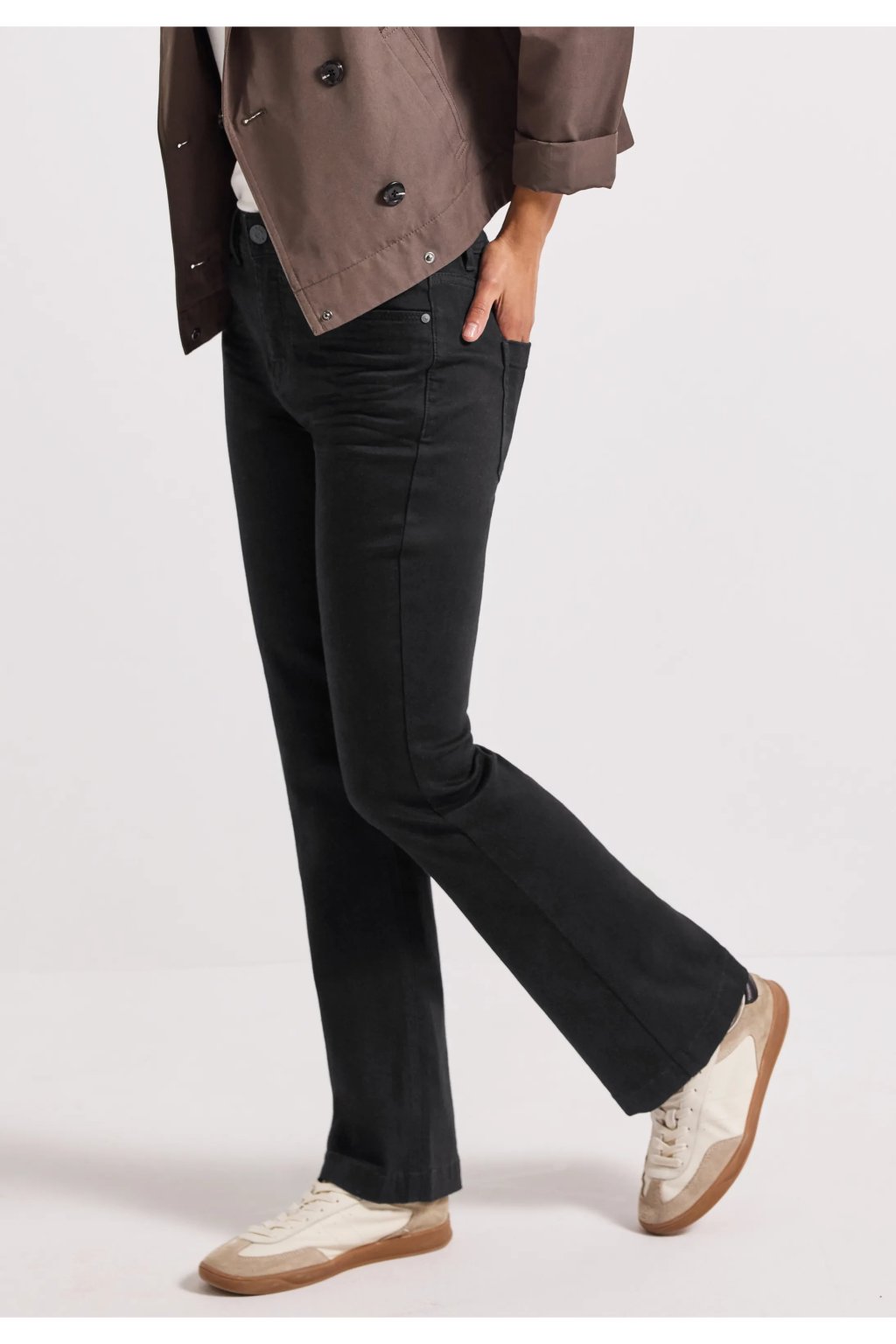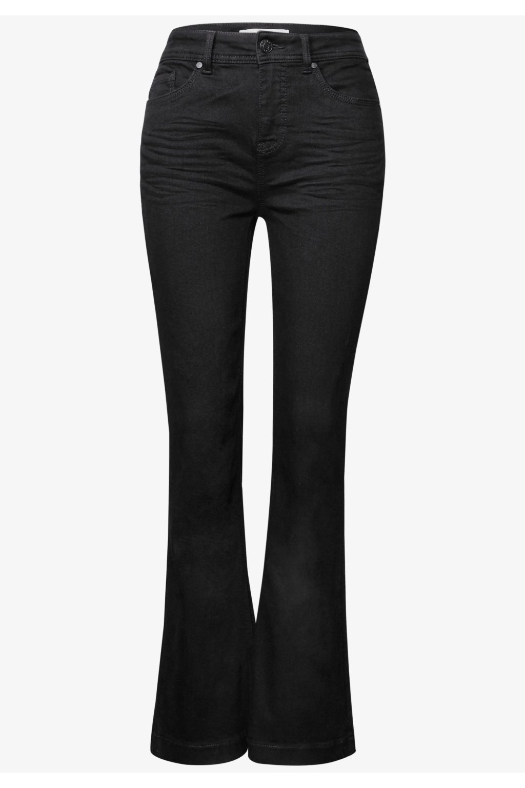 Tieto džínsy s úzkym strihom od značky Street One pre ženy v čiernej farbe zdôrazňujú ženskú siluetu vďaka svojmu úzkemu strihu a vysokému pásu. Nohavice s úzkym strihom dodávajú módny vzhľad a sú všestranné. Pružná bavlnená zmes zaručuje pohodlné nosenie - ideálna pre elegantné aj ležérne outfity.