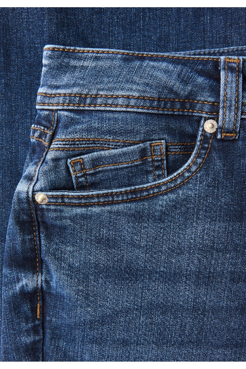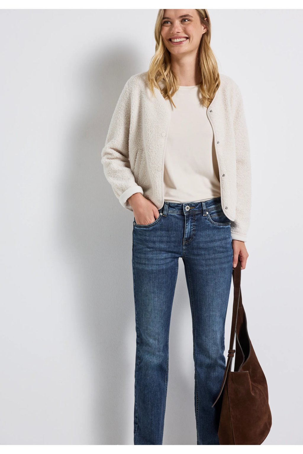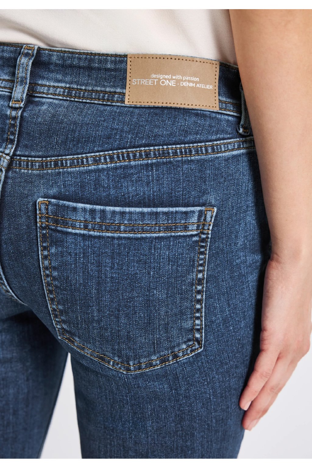 Tieto džínsy od značky Street One pre ženy kombinujú priliehavý slim strih s módnymi nohavicami s rozšírením pri členkoch. Modré pranie vytvára klasický džínsový vzhľad, zatiaľ čo zmes bavlny so strečom zaisťuje vysokú úroveň pohodlia. Stredne vysoký pás a 5 vreciek robia z týchto džínsov všestranný kúsok pre každodenný život.