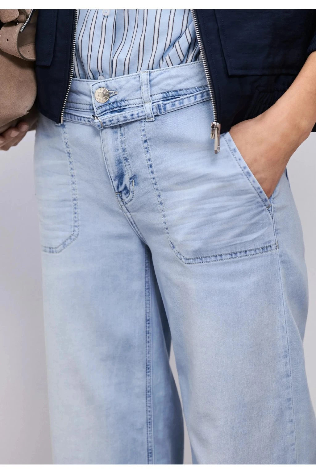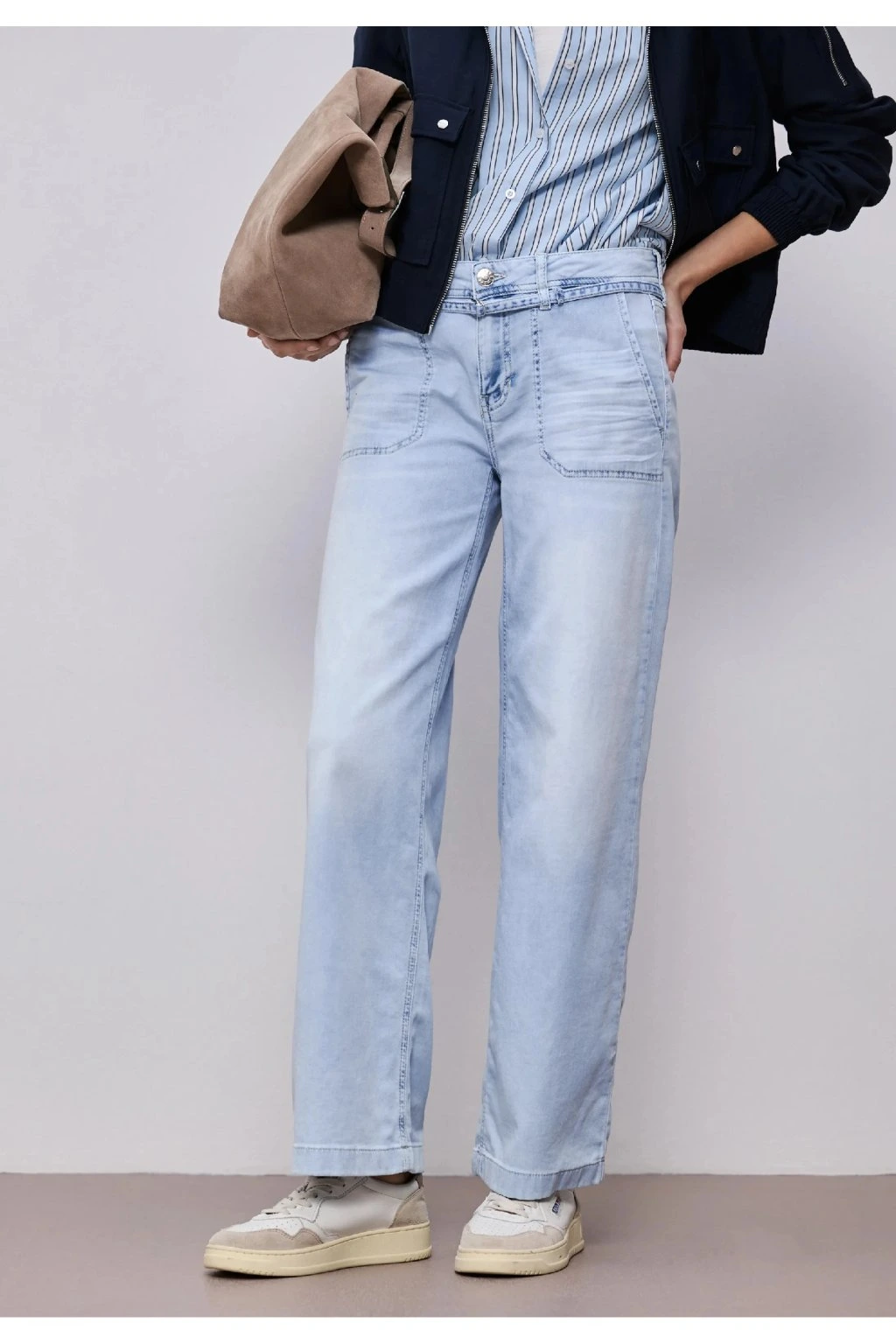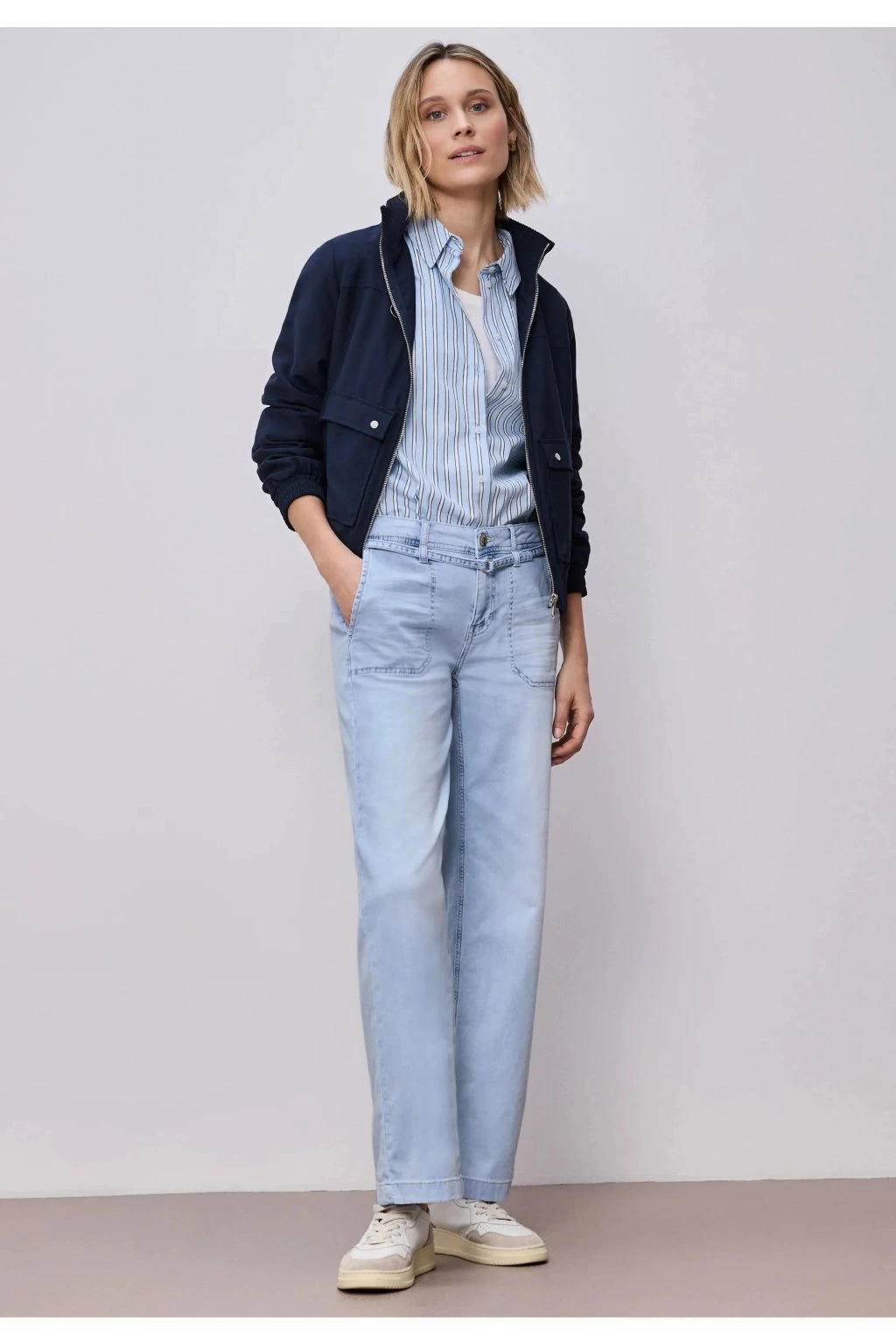 Svetlomodré dámske džínsy v pohodlnom strihu sú ideálnou voľbou pre každý deň. Mäkký a príjemný denim sa prispôsobí postave a zaistí maximálny komfort pri nosení. Moderný rovný strih a jemné vyšisovanie dodávajú džínsom ležérny, ale stále upravený vzhľad, ktorý ľahko skombinujete s košeľou, svetrom aj teniskami. Skvelý kúsok do práce, na prechádzku aj voľný čas.