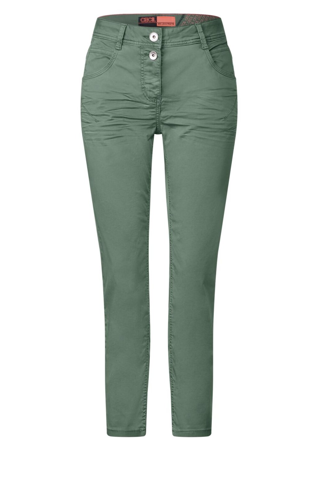 Nohavice ležérneho strihu v strihu Scarlett značky CECIL zaujmú svojim všestranným dizajnom, ktorý sa skvele hodí na každodenné nosenie. So zapínaním na 2 gombíky a zipsom, bočnými vreckami a zadnými vreckami ponúka praktické funkcie. Stredný pás a štíhle nohavice zaisťujú pohodlné nosenie a robia z nej všestranný doplnok pre každý deň.