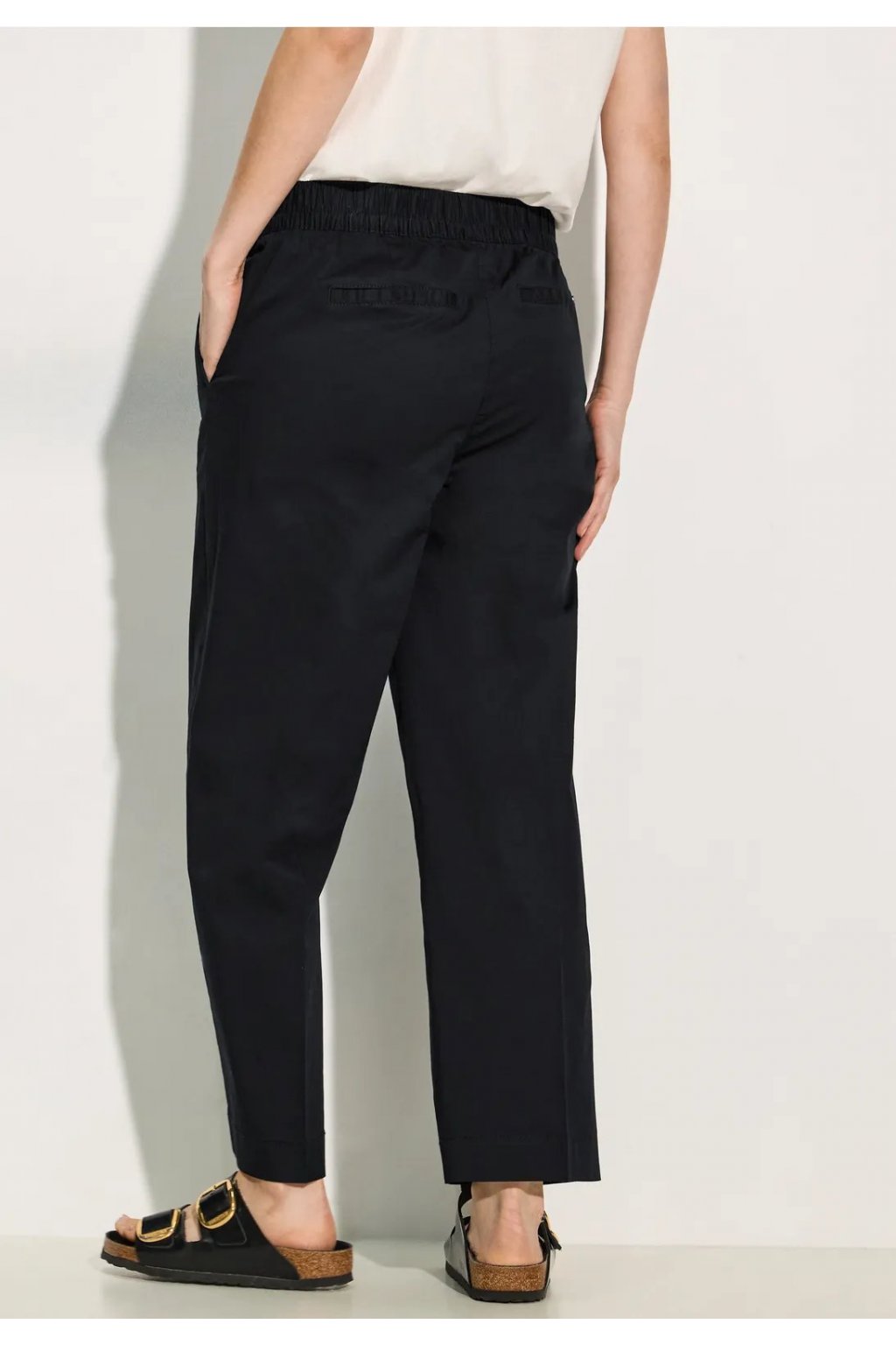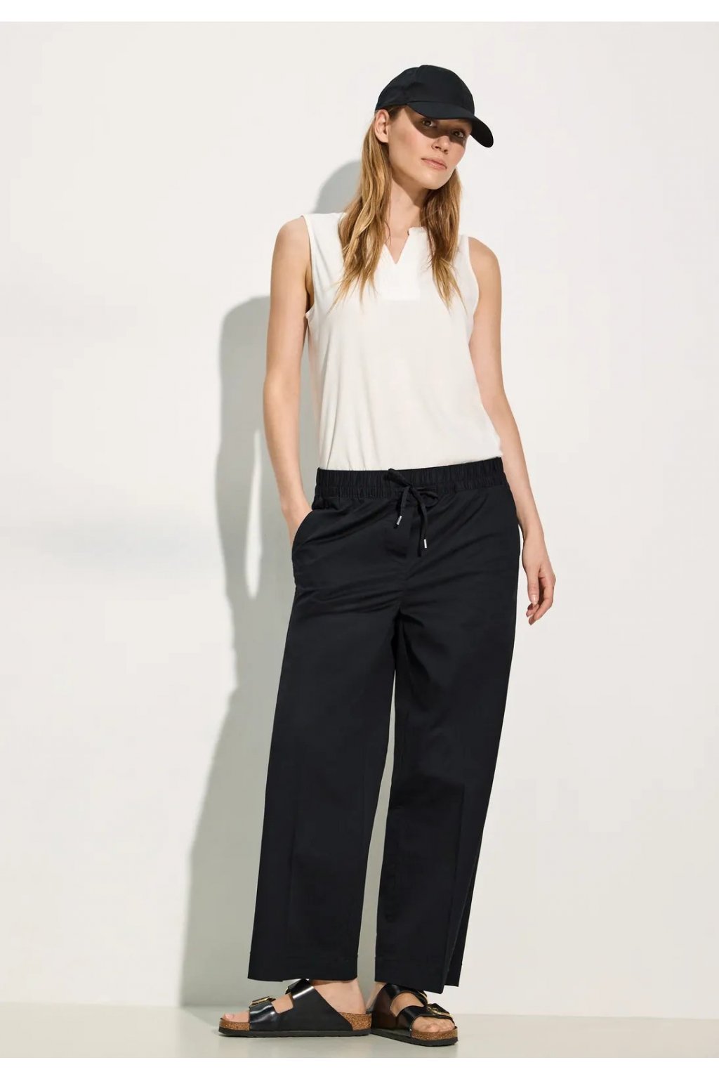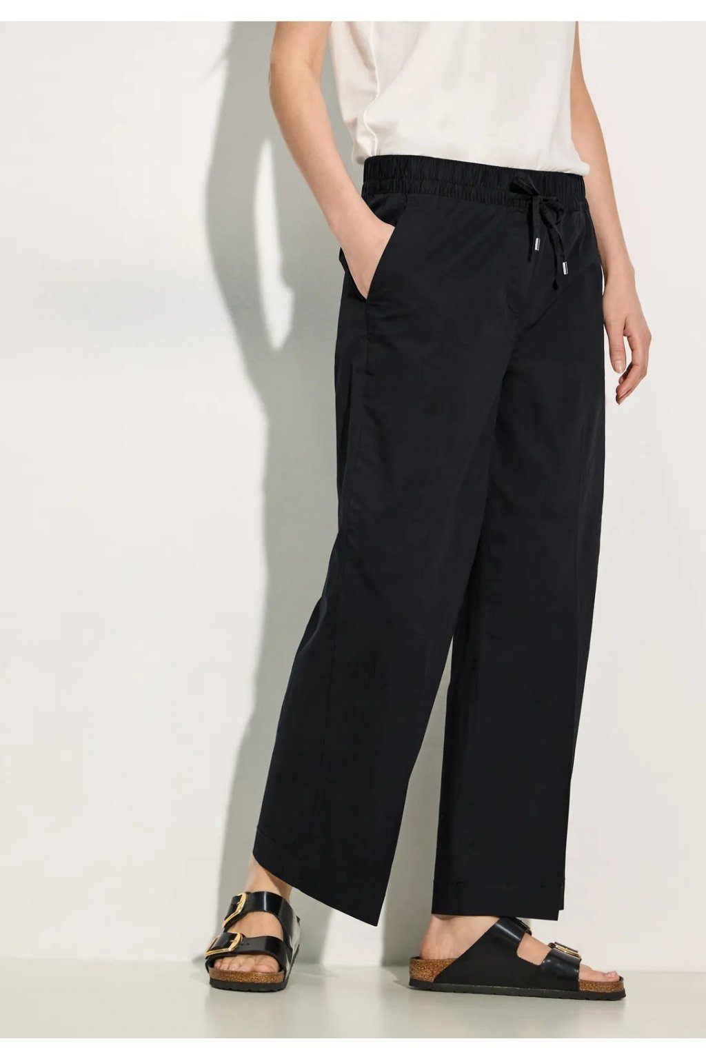 Dámske 7/8 nohavice od CECIL sú ľahké letné nohavice voľného strihu, ktoré ponúkajú pohodlný strih s vysokým pásom a širokými nohavicami. Elastický pás a šnúrka umožňujú individuálne nastavenie, praktické bočné vrecká ponúkajú funkčnosť. Vyrobené z bavlny so strečom av štýle Neele, kombinuje pohodlie s módnym šarmom.