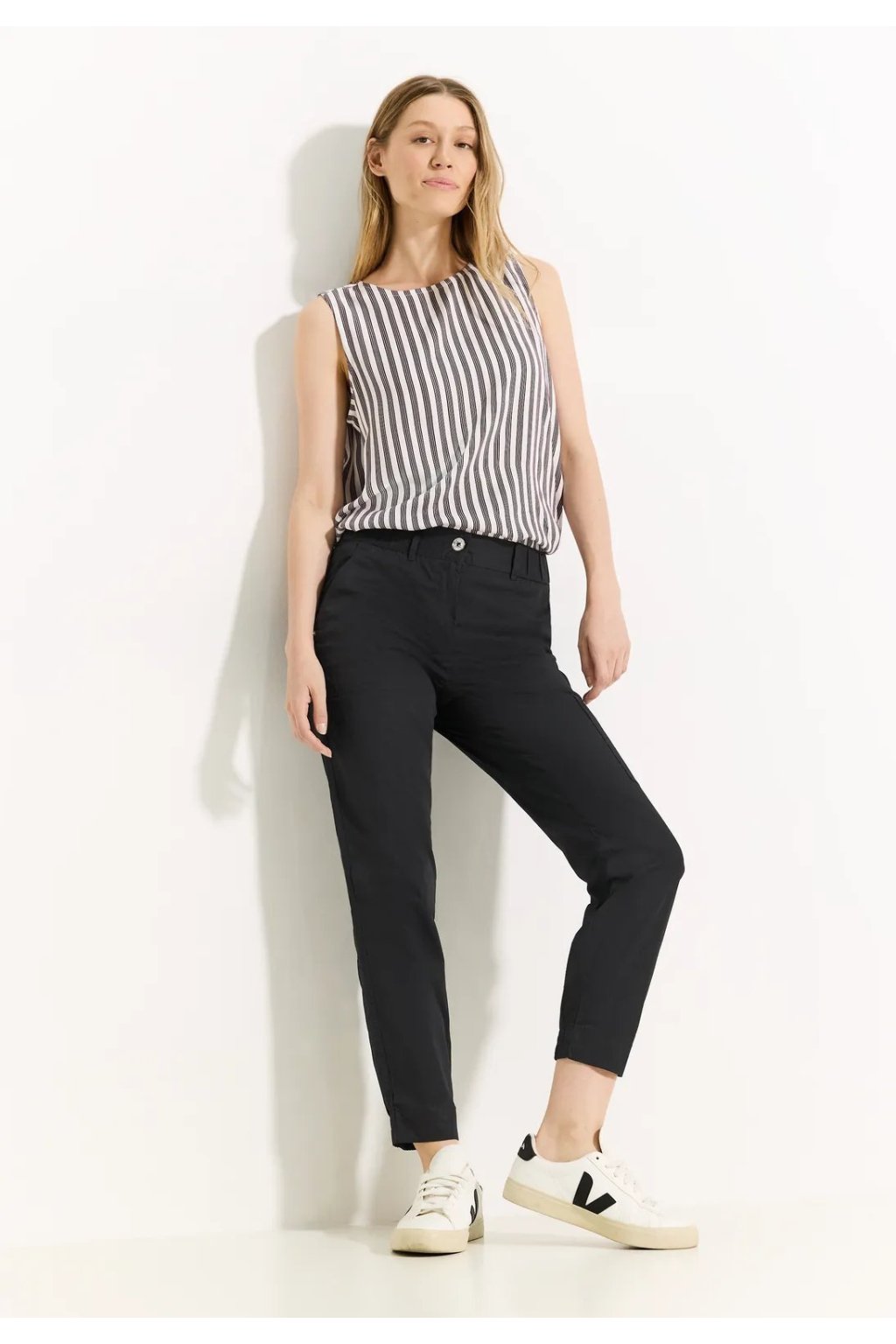 Cargo nohavice CECIL pre ženy sú neformálne letné nohavice ležérneho strihu so stredným pásom a úzkymi nohavicami pre moderný strih. Vybavené elastickým pásom a manžetami na leme, ponúkajú pohodlie a flexibilitu. Vyrobené z bavlny so strečom, kombinuje štýl a pohodlie v trendy štýle Tracey.