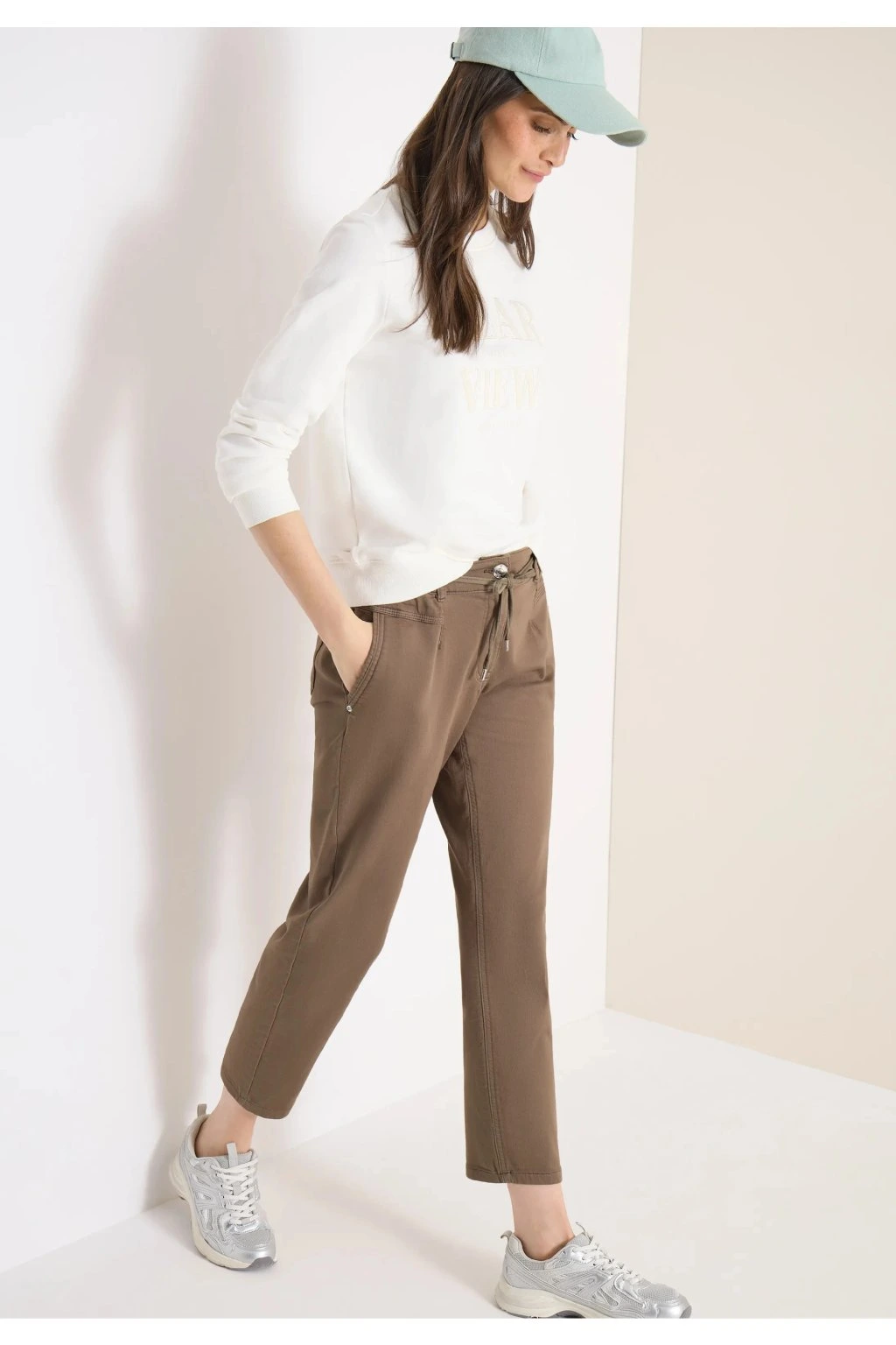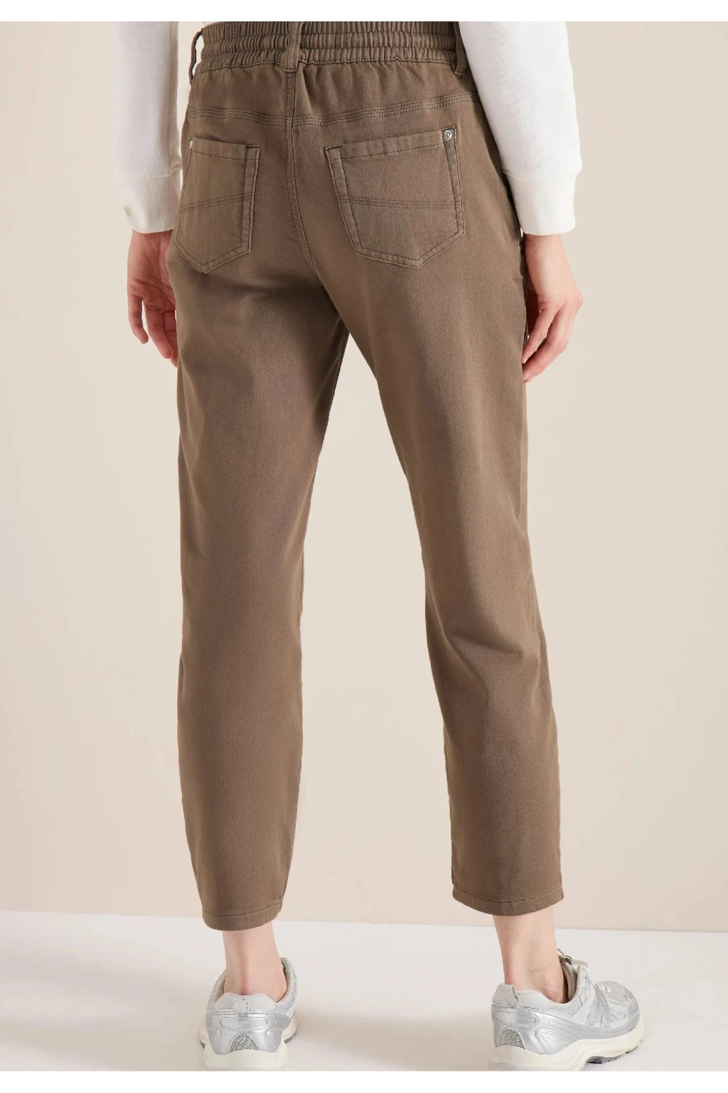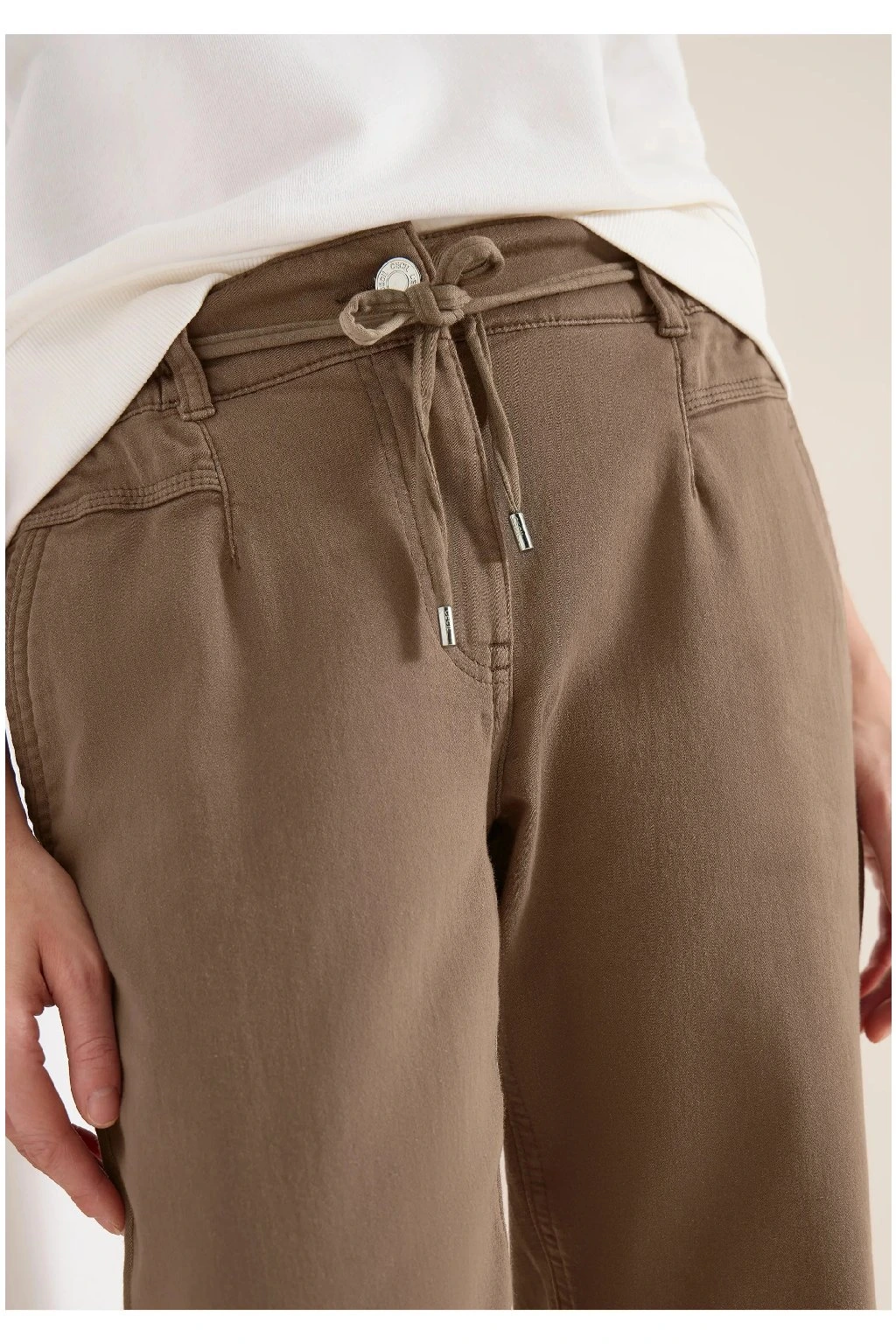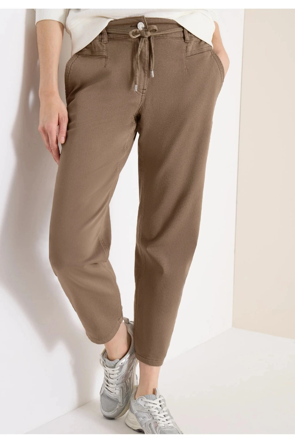Dámske nohavice v príjemnej hnedej farbe sú ideálnou voľbou na pohodlné každodenné nosenie. Majú moderný strih s ľahko zúženými nohavicami, klasické vrecká a praktické zaväzovanie v páse, ktoré zaisťuje skvelé prispôsobenie postave. Príjemný materiál poskytuje komfort po celý deň a neutrálny odtieň sa ľahko kombinuje s blúzkou, tričkom aj svetrom. Štýlový a univerzálny kúsok pre voľný čas aj neformálny outfit.
