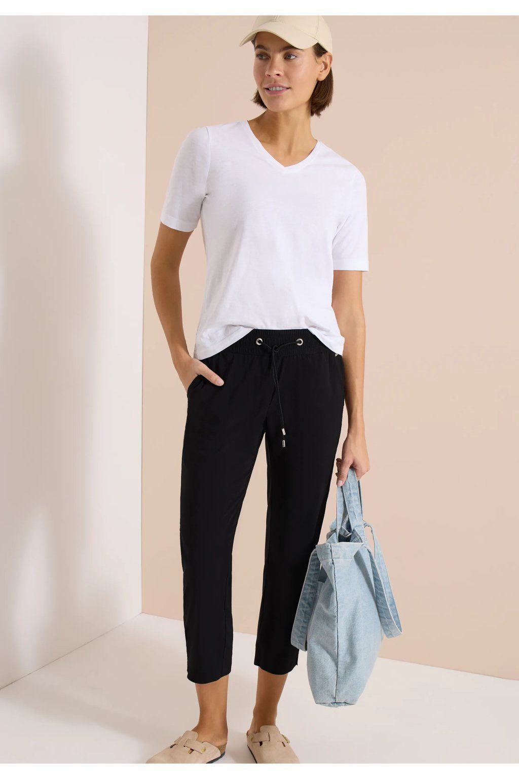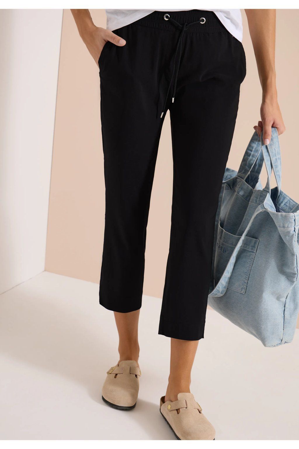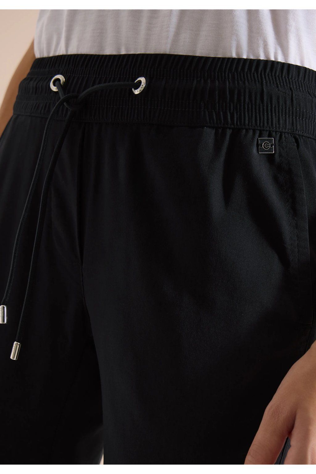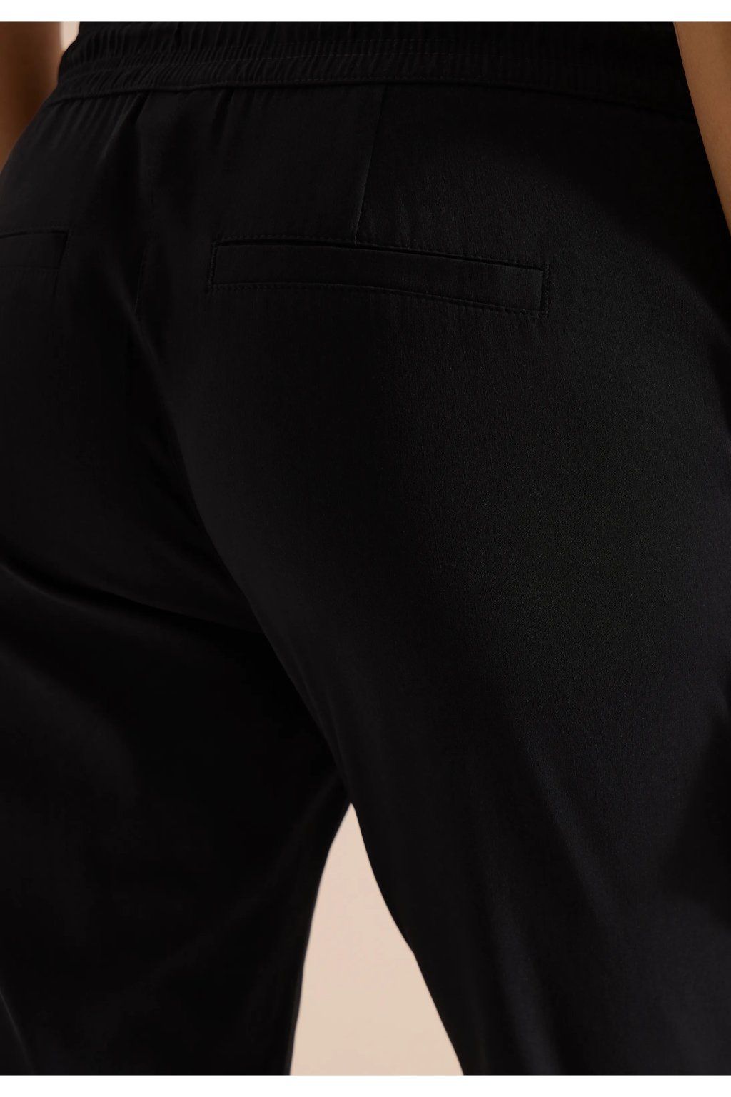 Dámske nohavice v čiernom prevedení sú skvelou voľbou na pohodlné a štýlové každodenné nosenie. Majú jednoduchý nadčasový strih, ľahko skrátenú nohavicu a pružný pás so šnúrkou na zaväzovanie, vďaka ktorému sa krásne prispôsobia postave. Praktické vrecká a minimalistický dizajn podčiarkujú ich univerzálnosť, takže ich ľahko skombinujete s tričkom, blúzkou aj ľahkým svetrom. Ideálny kúsok do mesta, na cestovanie aj na voľný čas, kedy chcete spojiť komfort s nenútenou eleganciou.