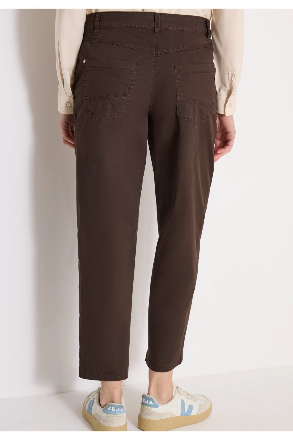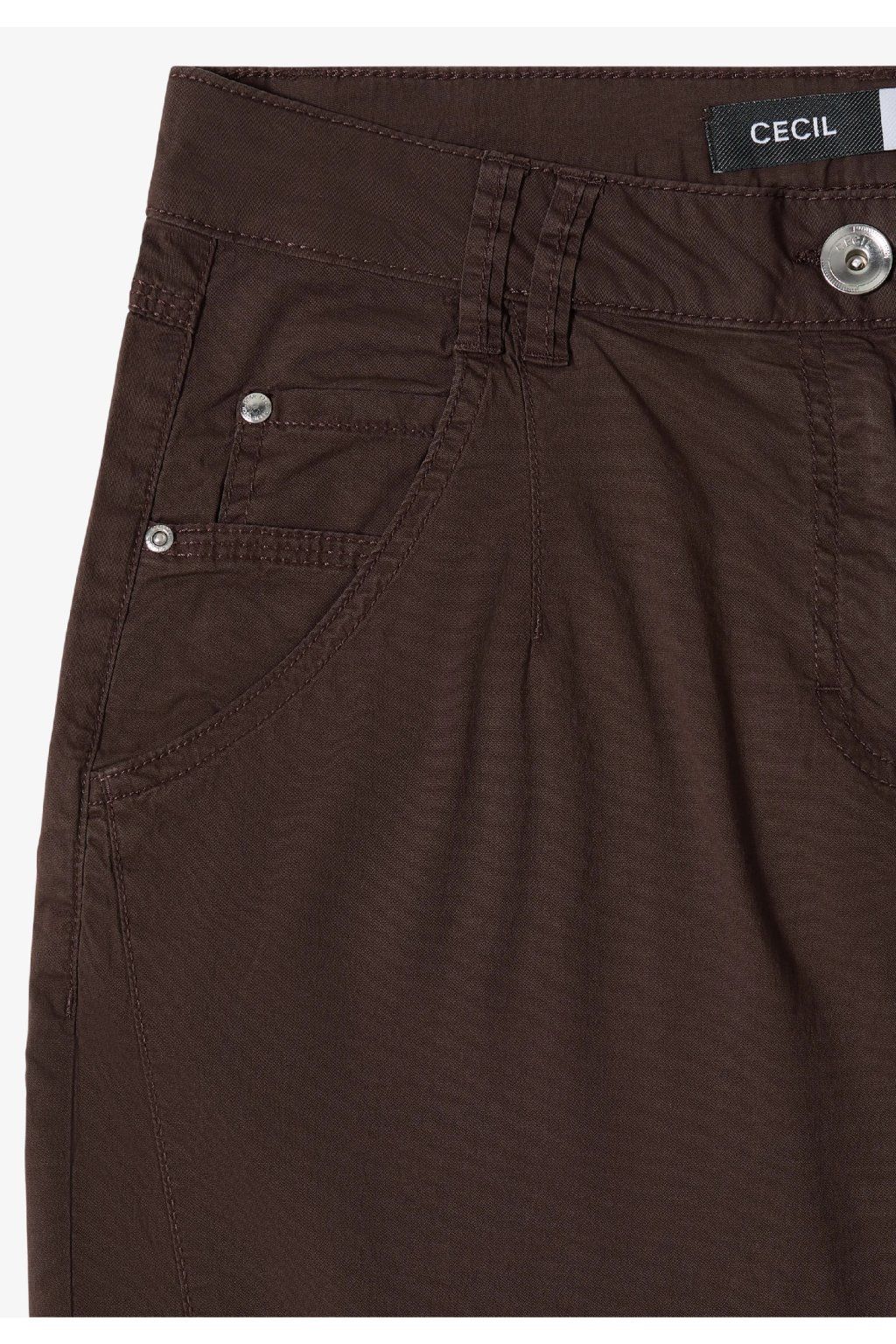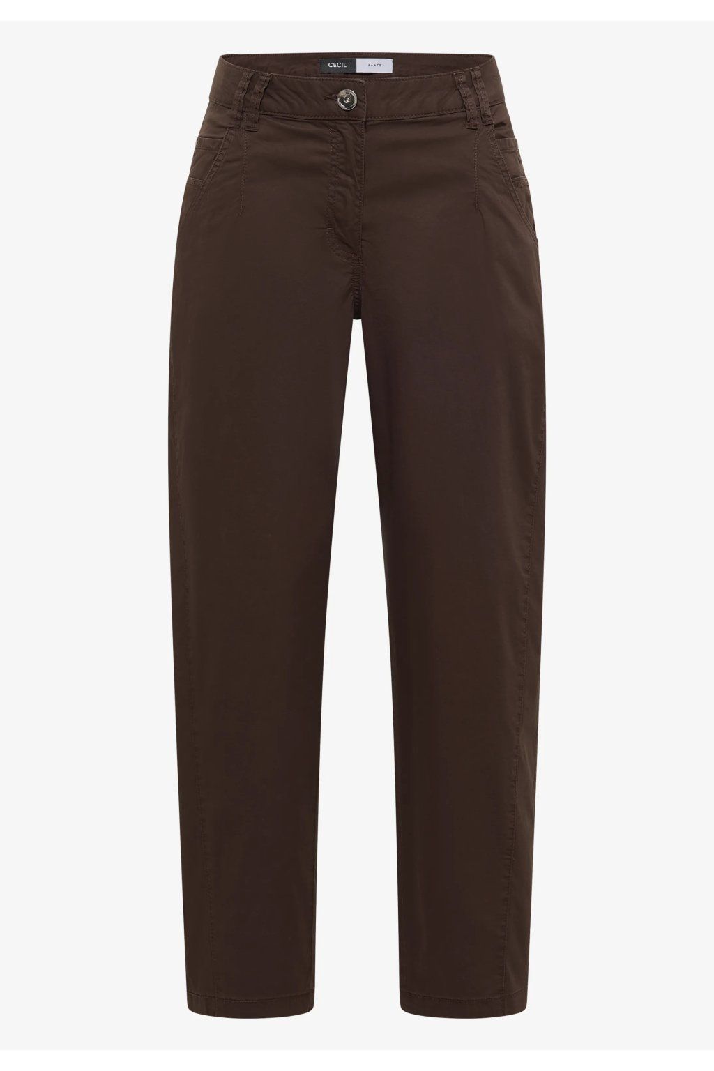 Dámske nohavice v elegantnom tmavo hnedom odtieni sú skvelou voľbou pre ženy, ktoré hľadajú pohodlný, univerzálny a zároveň štýlový kúsok do každodenného šatníka. Nohavice majú klasický strih s užšou, ľahko skrátenou nohavicou, ktorá pôsobí moderne a veľmi dobre sa kombinuje s teniskami, mokasínami aj členkovou obuvou. Jednoduchý dizajn dopĺňa klasické zapínanie na gombík a zips, pútka na opasok a praktické vrecká, ktoré podčiarkujú ich ležérne elegantný vzhľad.