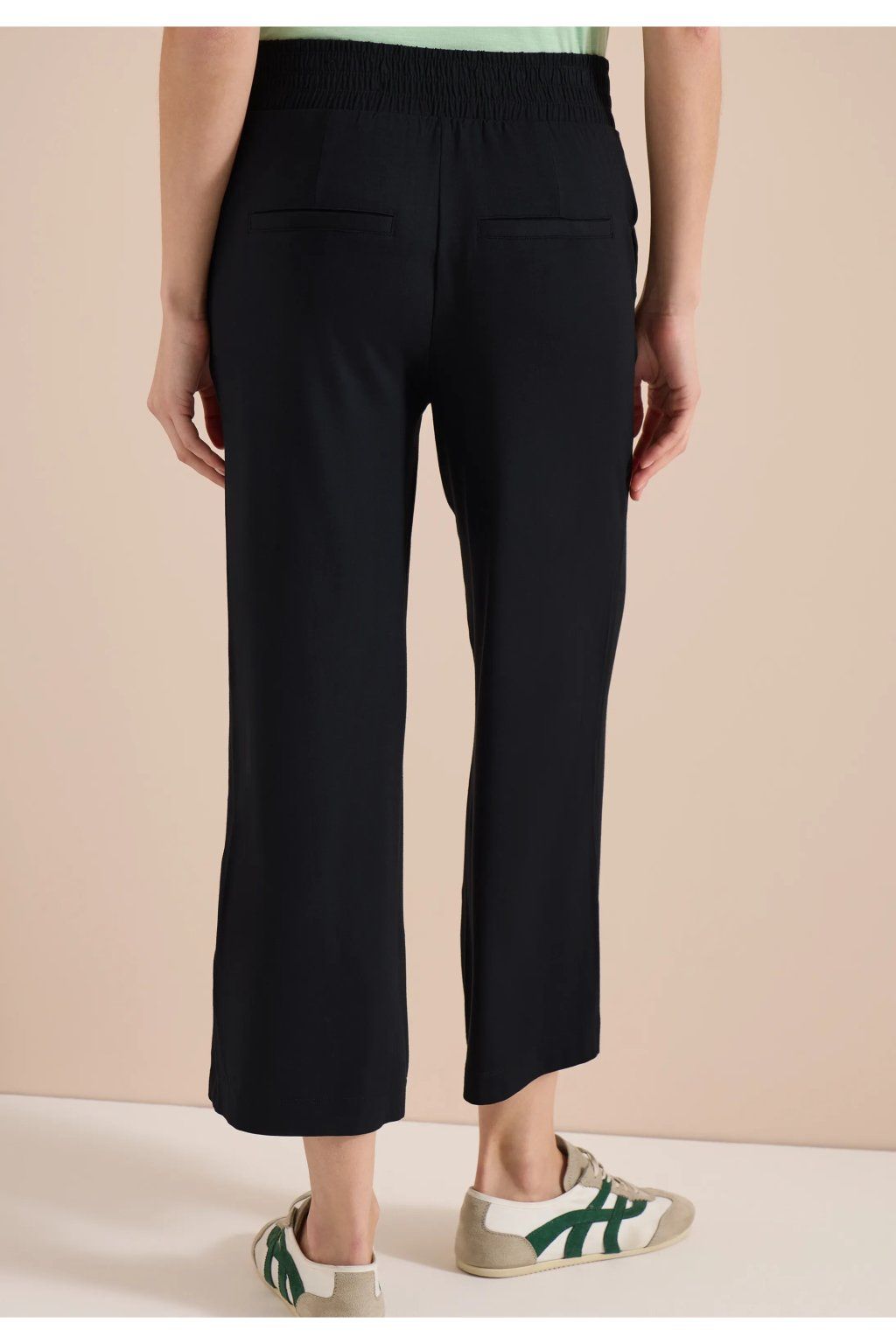 Dámske nohavice v čiernom prevedení sú elegantným a zároveň veľmi pohodlným kúskom na každý deň. Majú voľnejší rovný strih so skrátenou nohavicou, ktorý pôsobí moderne, vzdušne a ľahko sa kombinuje s tričkom, blúzkou aj ľahkým svetrom. Vďaka minimalistickému dizajnu a nadčasovej farbe ich využijete do práce, do mesta aj na voľný čas. Univerzálny model pre ženy, ktoré chcú spojiť komfort, jednoduchosť a štýl.