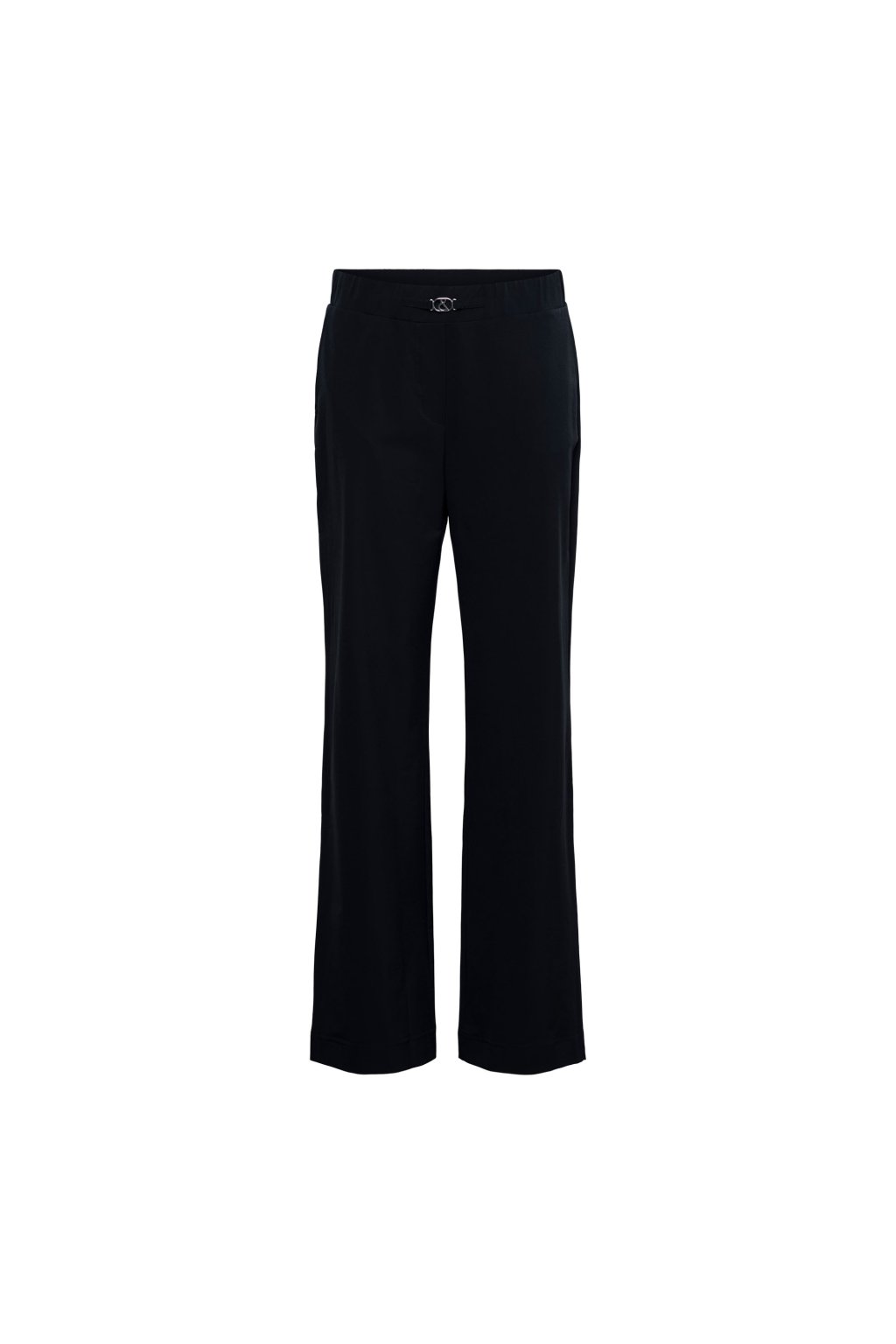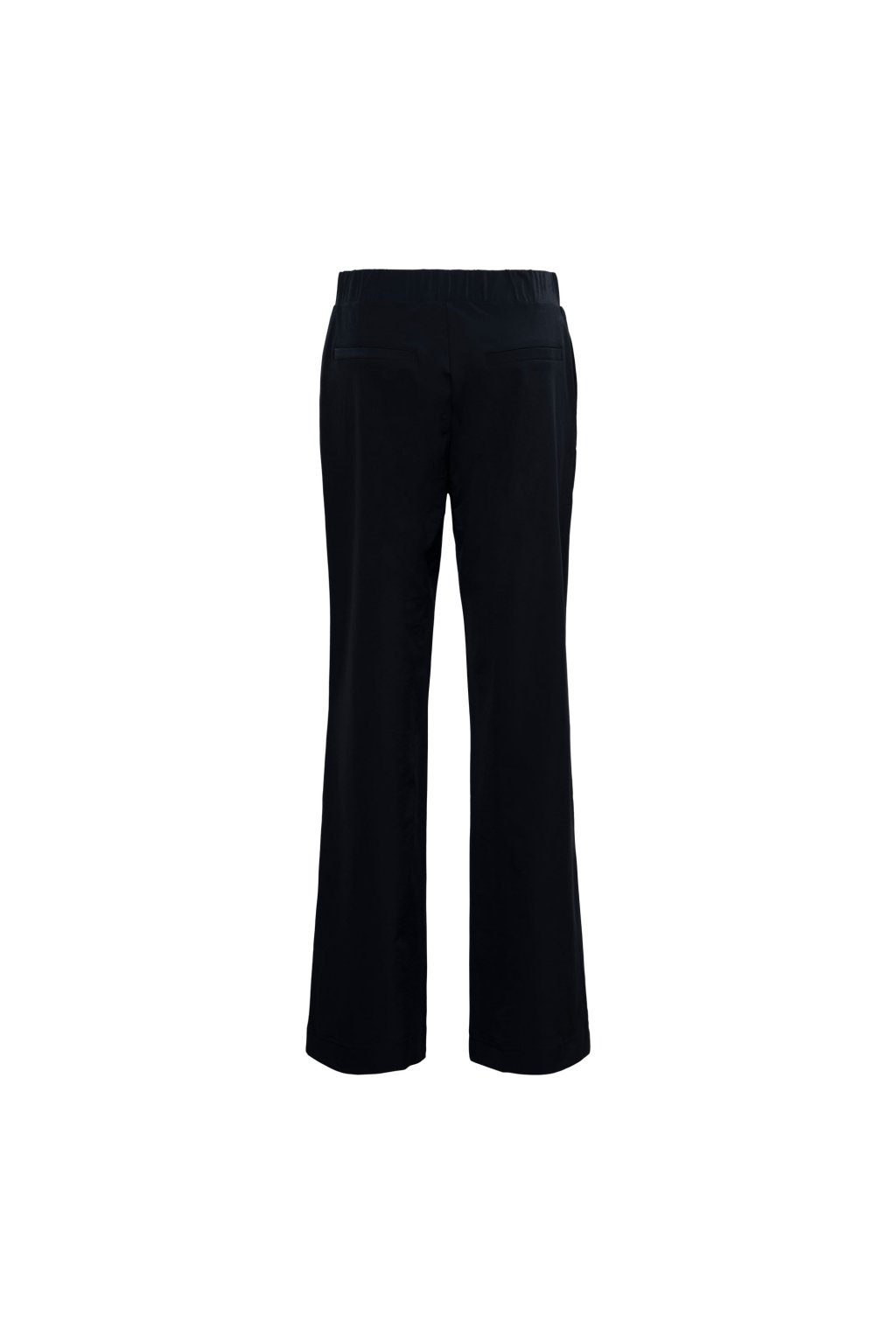 Tieto basic nohavice sú vyrobené z kvalitného travel materiálu, ktorý je pohodlný, praktický a ideálny pre každodenné nosenie aj cestovanie. Majú rovný strih s rovnými nohavicami, hladký pás s elastickou úpravou pre maximálny komfort a dekoratívnu pracku ako jemný dizajnový detail. Nohavice sú doplnené bočnými vreckami vpredu a výpustkovým vreckom vzadu, vďaka čomu spájajú funkčnosť s čistým, nadčasovým vzhľadom.