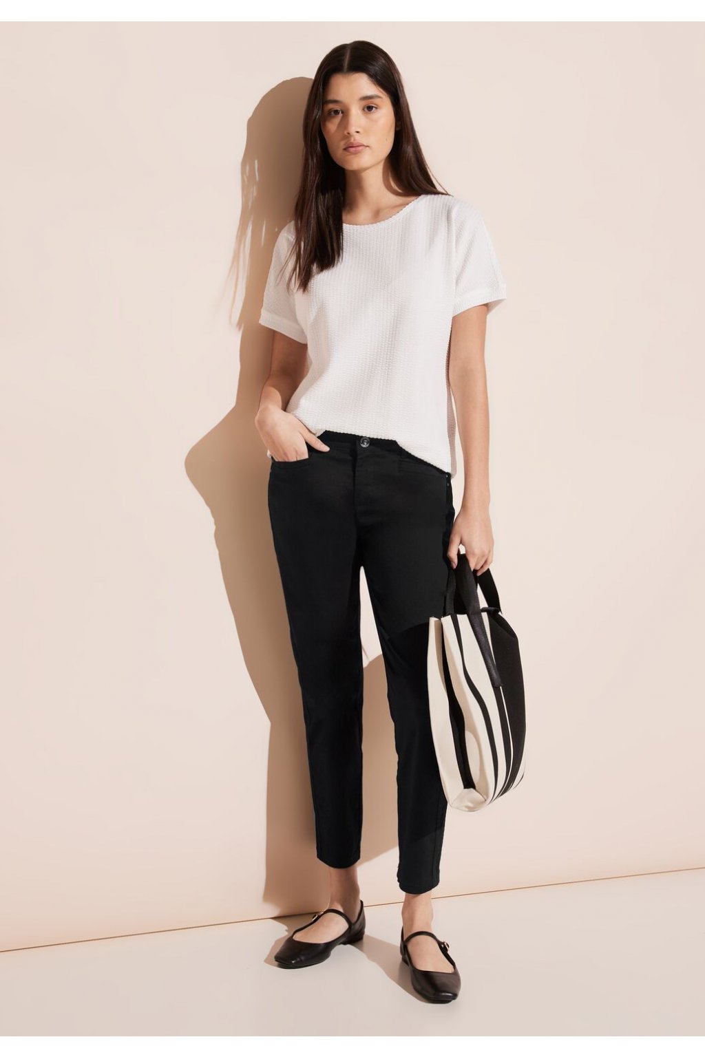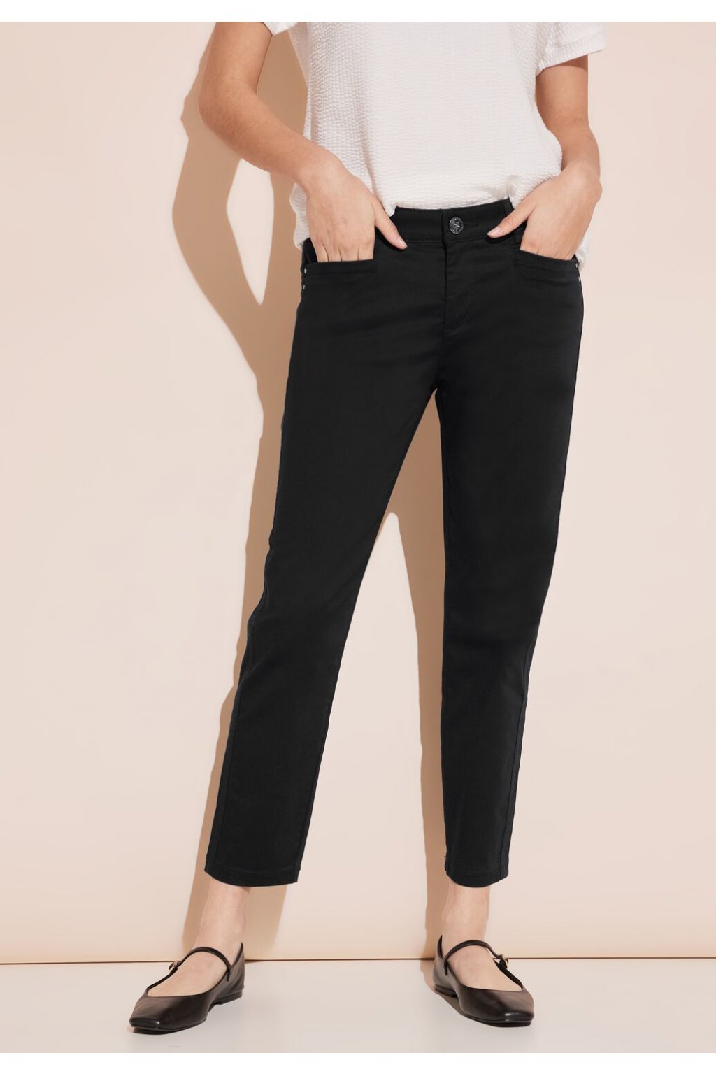 7/8 saténové nohavice v štýle Yulius od Street One pre ženy sú všestranné chino nohavice v ležérnom strihu so stredným pásom a štíhlymi nohavicami, ktoré je možné nosiť od voľného času po rôzne udalosti. S praktickými bočnými vreckami a zadnými vreckami kombinuje štýl s funkčnosťou. Vysoko kvalitná zmes bavlny so strečom ponúka pohodlie a voľnosť pohybu pre každú príležitosť.