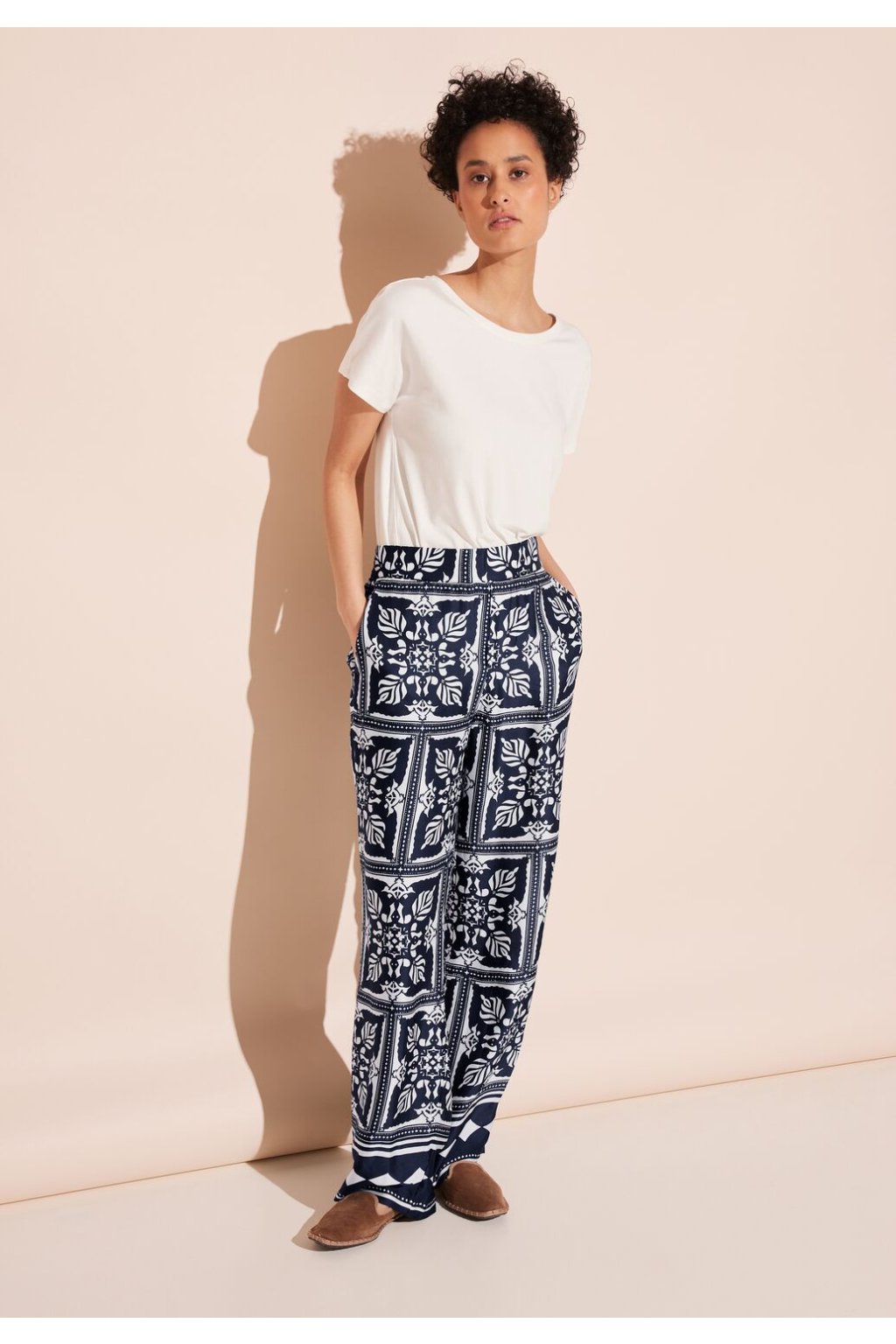 Dámske nohavičky Satin Print Pants od Street One zaujmú elegantným vzhľadom z viskózy v kombinácii s vysokým pásom a rovnými nohavicami pre lichotiacu siluetu. Praktické bočné vrecká ponúkajú úložný priestor, zatiaľ čo elastický pás v zadnom leme zaisťuje ďalšie pohodlie a optimálne prispôsobenie. Vďaka svojmu grafickému mixu potlače dodá každému outfitu moderný a štýlový nádych.