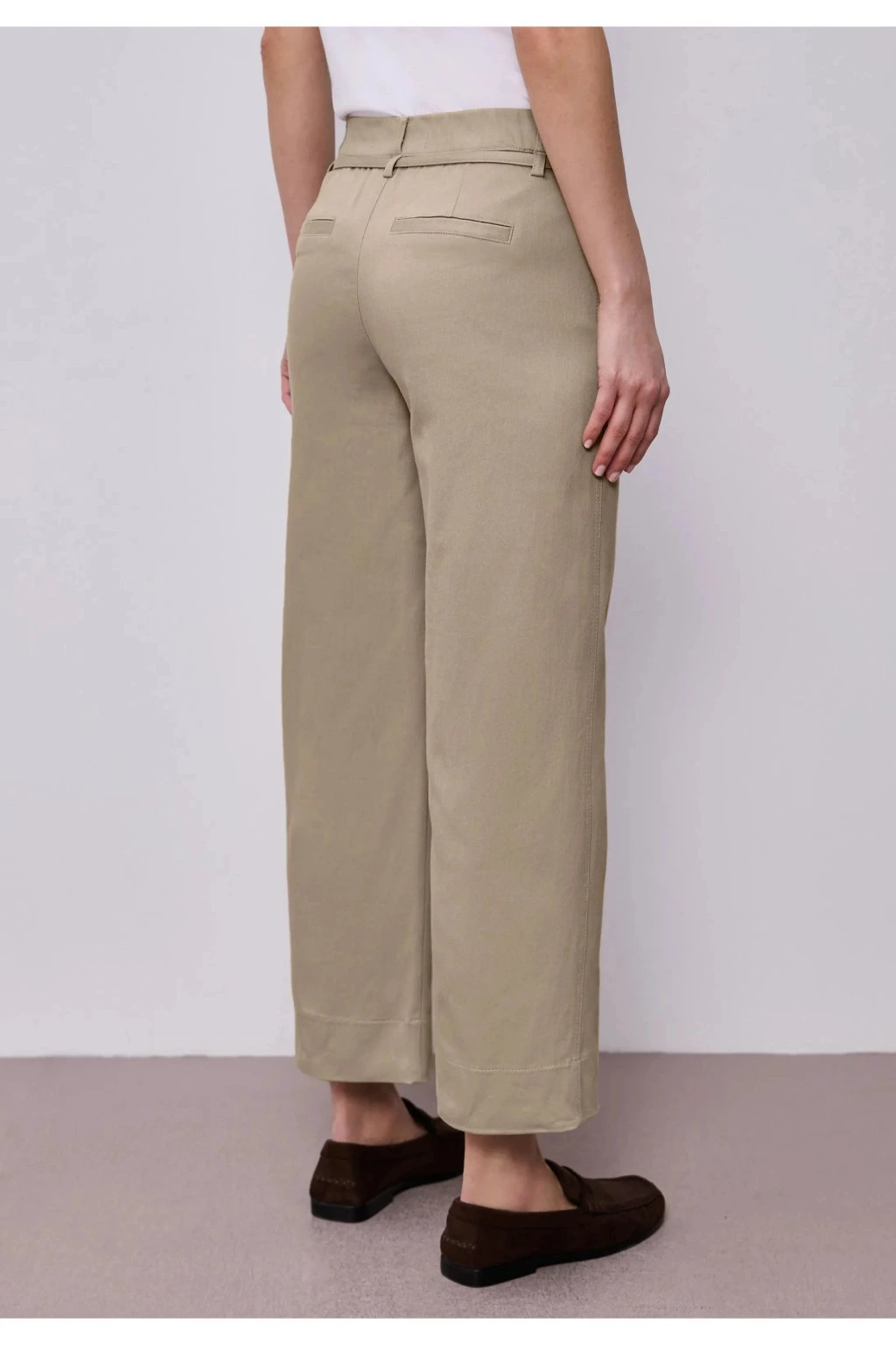 Dámske nohavice v elegantnej béžovej farbe sú nadčasovým kúskom, ktorý ľahko zakomponujete do každodenného šatníka. Majú rovný strih, klasické zapínanie a jemný detail v páse, ktorý dodáva modelu moderný vzhľad. Príjemný materiál a pohodlný strih zaisťujú komfort po celý deň. Skvele sa hodí k blúzke, košeli aj jednoduchému tričku - ideálna voľba do práce aj na voľný čas.