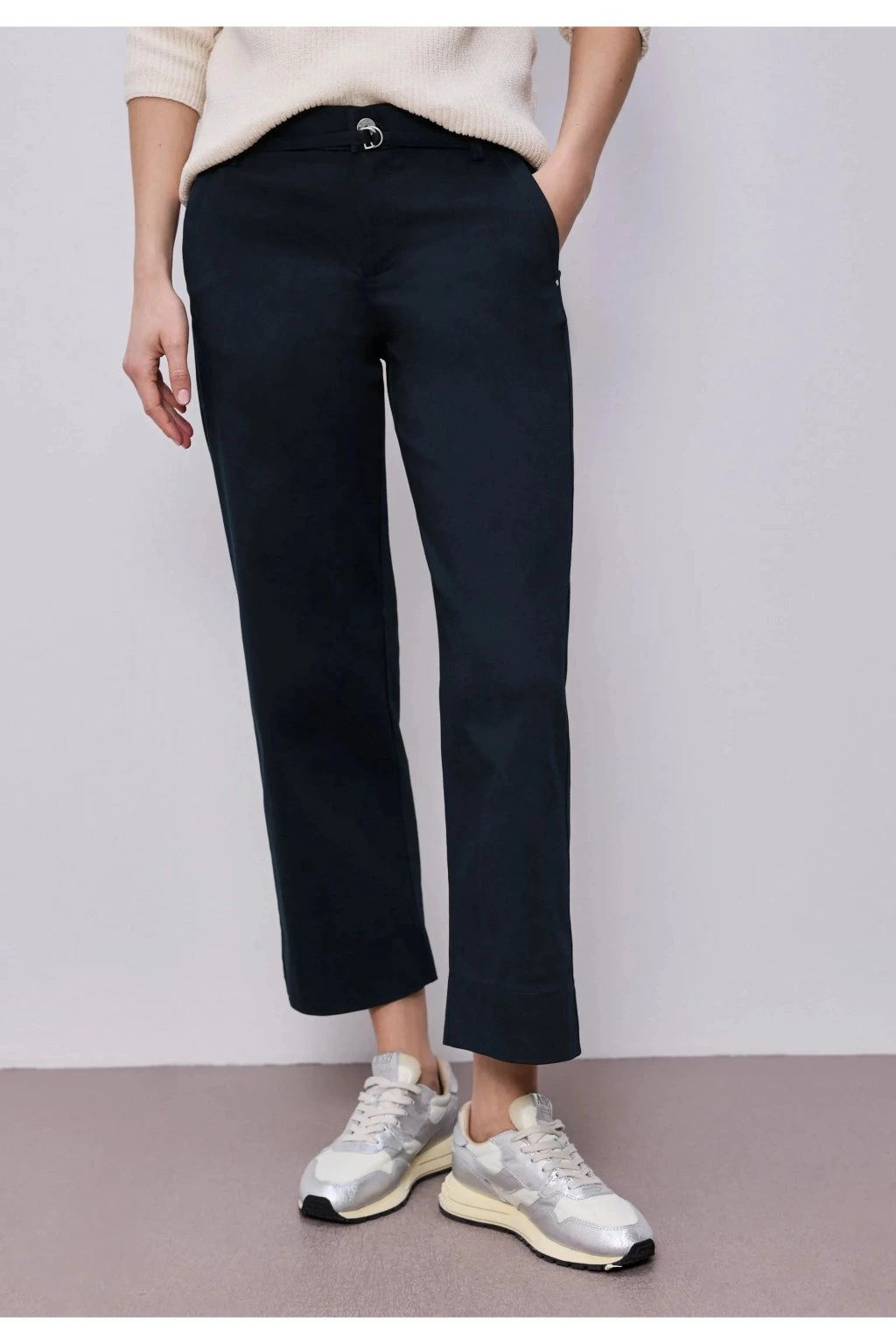 Dámske nohavice v tmavo modrej farbe sú elegantným a zároveň veľmi pohodlným kúskom na každodenné nosenie. Majú rovný strih, klasické vrecká a jemný detail v páse, ktorý dodáva modelu moderný vzhľad. Vďaka nadčasovej farbe ich ľahko skombinujete s blúzkou, košeľou i svetrom. Skvelá voľba do práce, na schôdzky aj pre štýlový voľný čas.