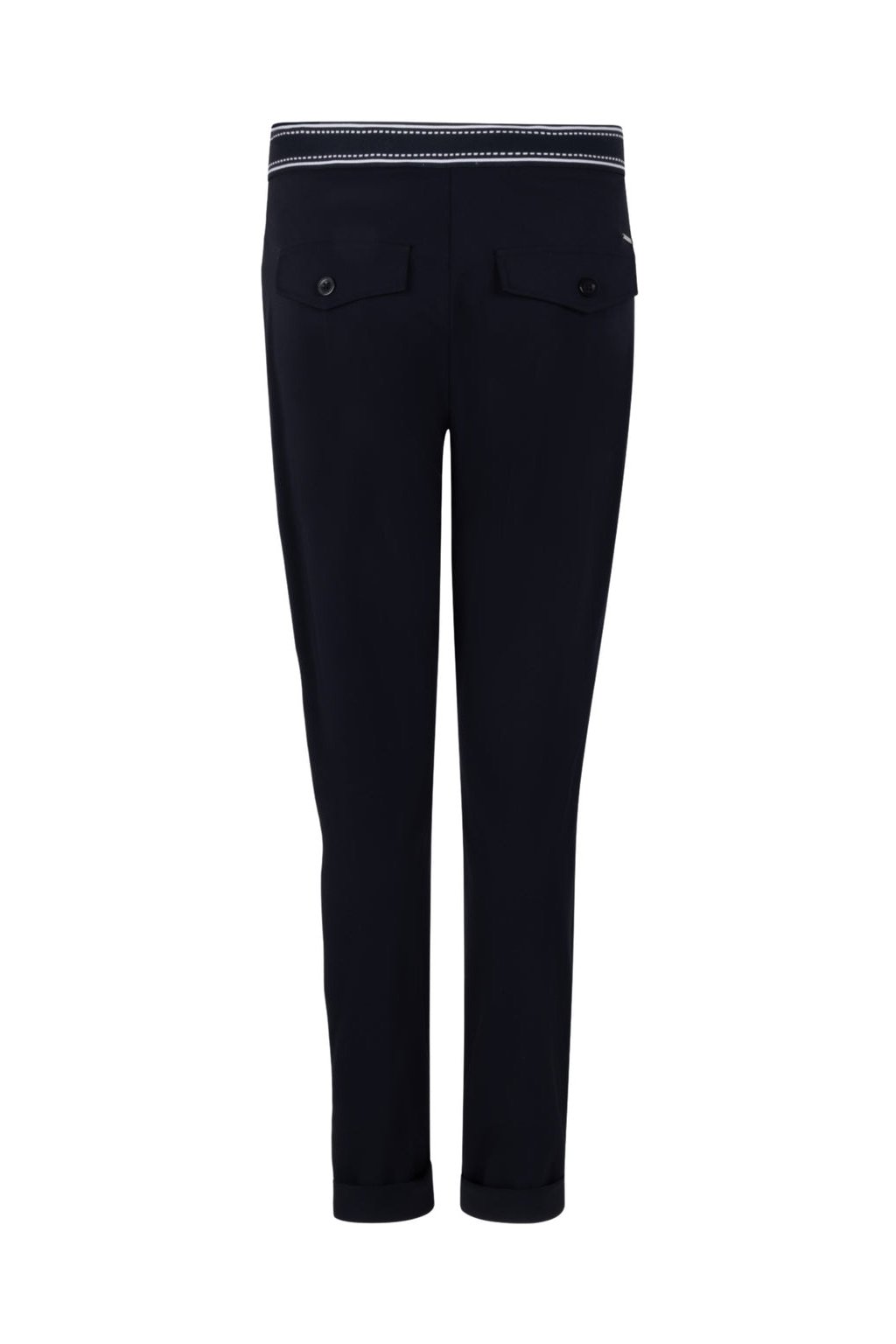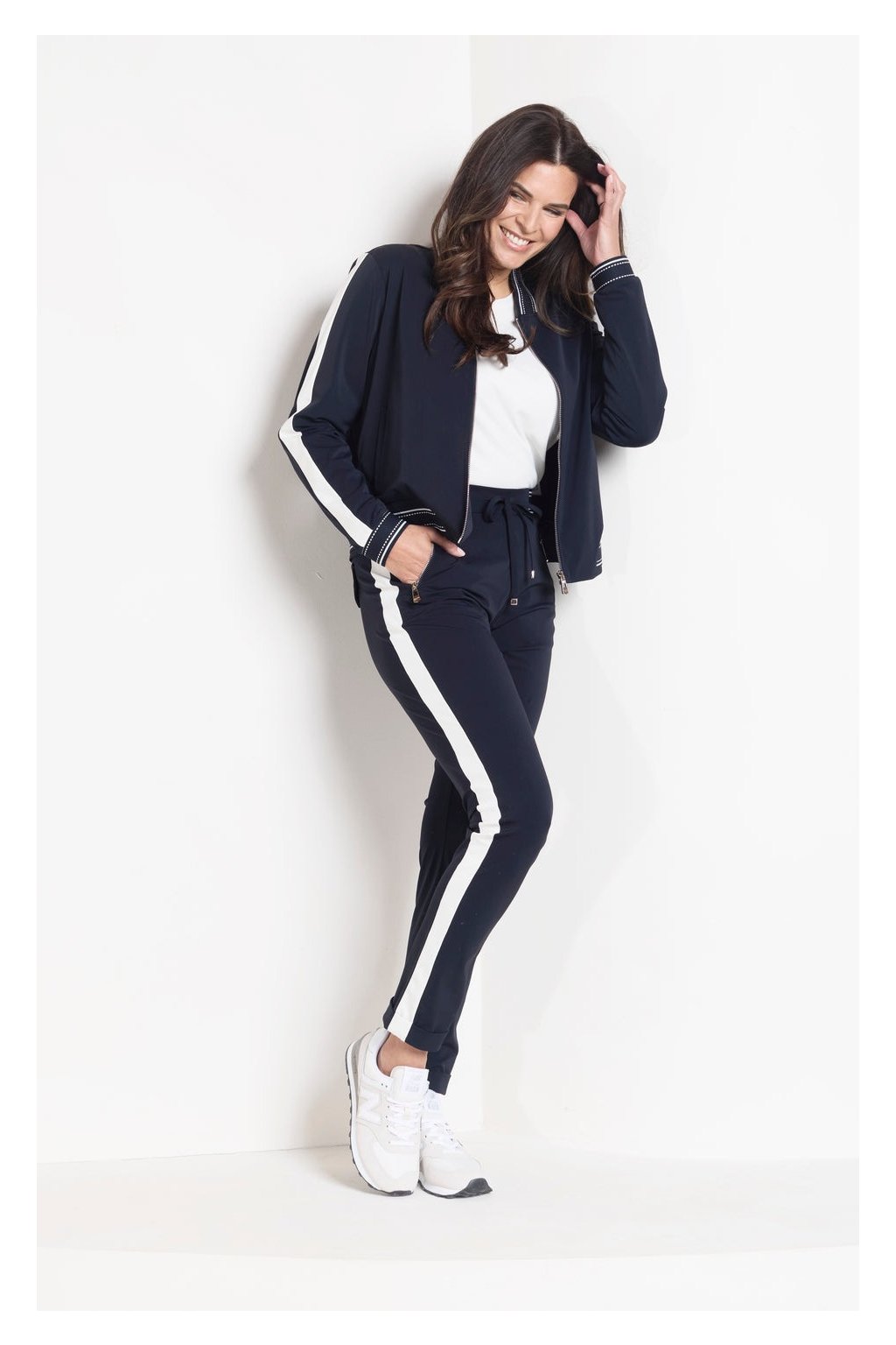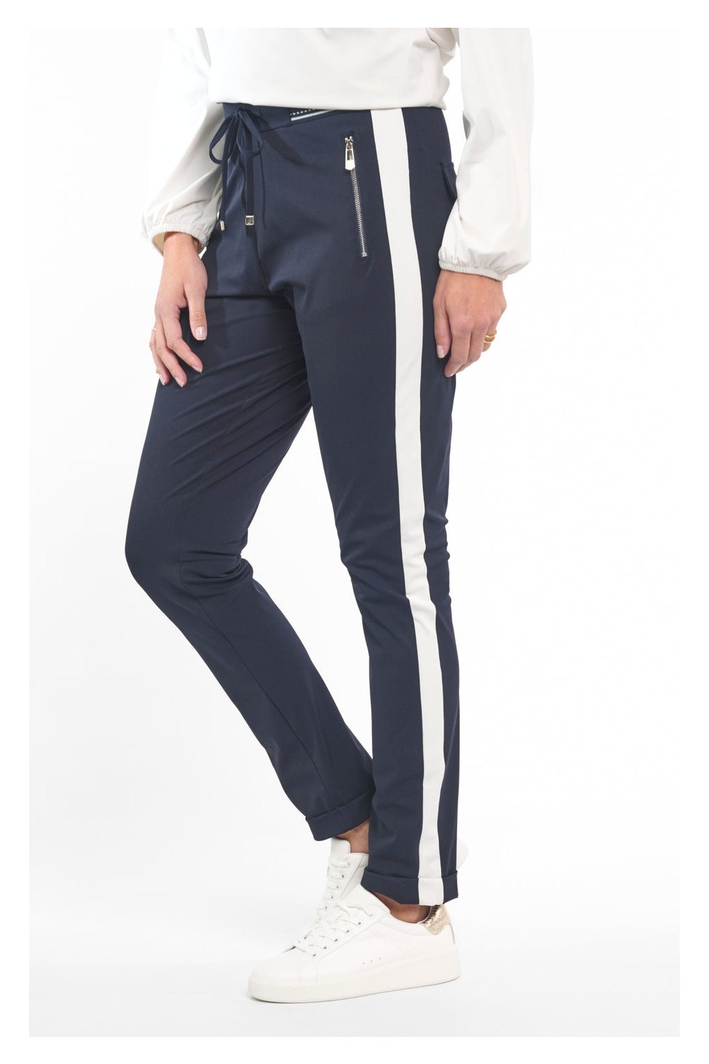 Cestovné nohavice Eve Night Blue sú pohodlné zúžené nohavice z cestovnej látky. Vďaka športovému pásu so sťahovacou šnúrkou, kontrastným bočným panelom a vyhrnutému lemovaniu vytvárajú tieto nohavice moderný a nenútene štýlový vzhľad.