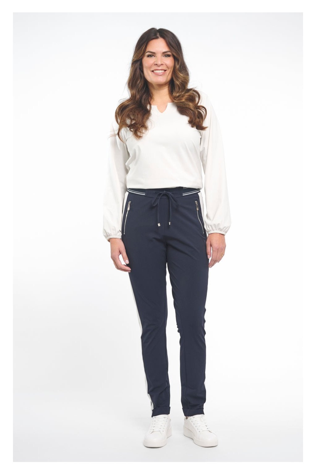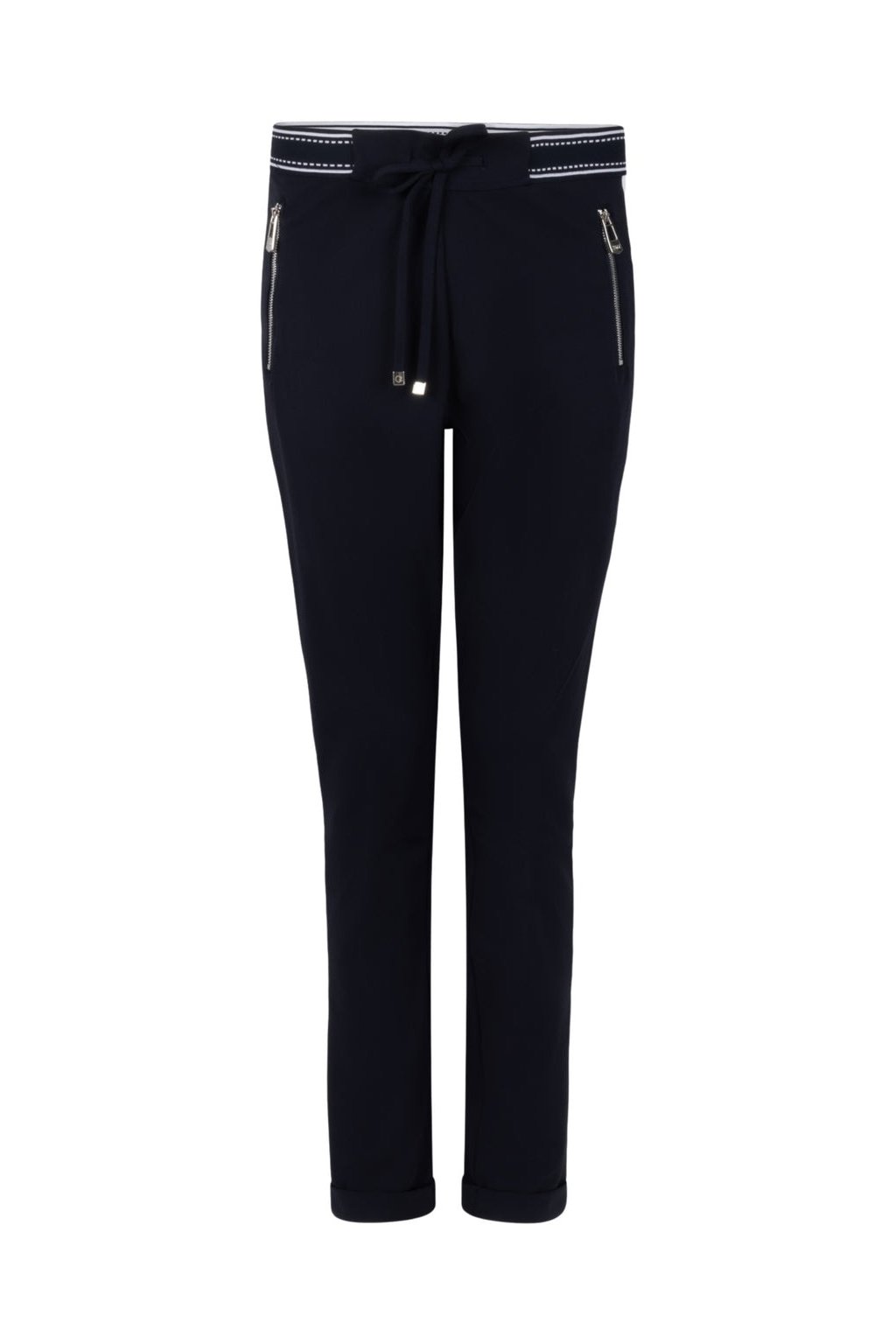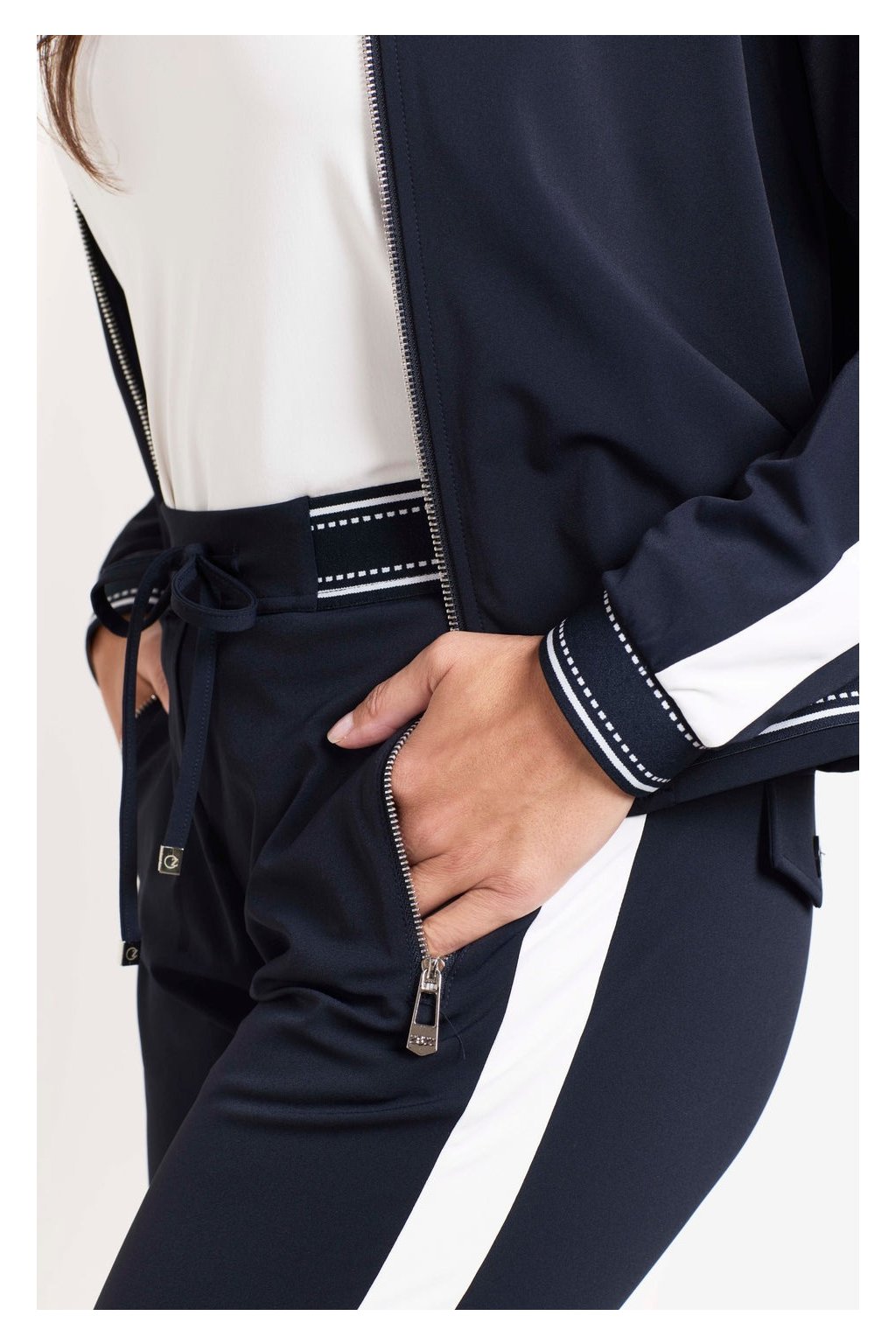Cestovné nohavice Eve Night Blue sú pohodlné zúžené nohavice z cestovnej látky. Vďaka športovému pásu so sťahovacou šnúrkou, kontrastným bočným panelom a vyhrnutému lemovaniu vytvárajú tieto nohavice moderný a nenútene štýlový vzhľad.