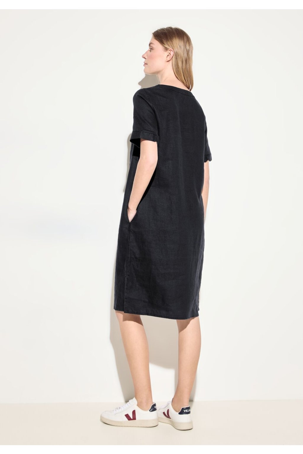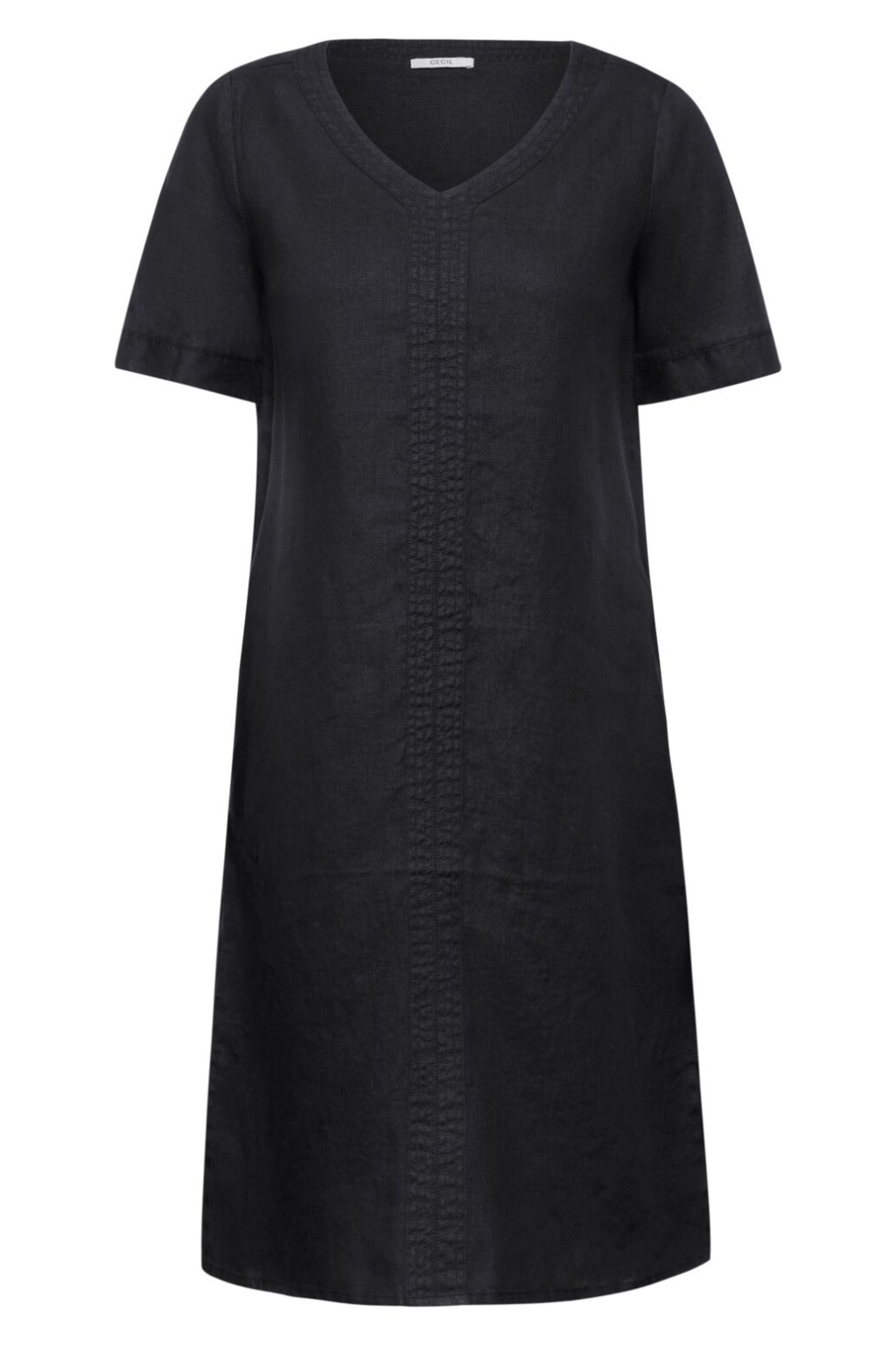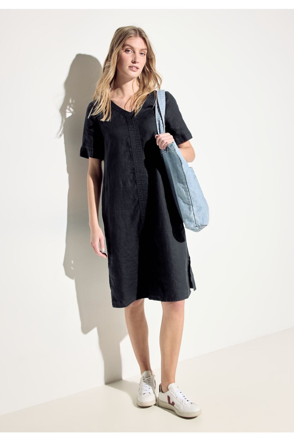 Šaty ku kolenám s krátkym rukávom od CECIL sú všestranným a pohodlným kúskom oblečenia pre ženy. S výstrihom do V, bočnými vreckami a ozdobnými švami ponúka ženský a atraktívny vzhľad. Bočné rázporky na leme zaisťujú voľnosť pohybu a dodávajú pláteným šatám ležérny nádych.