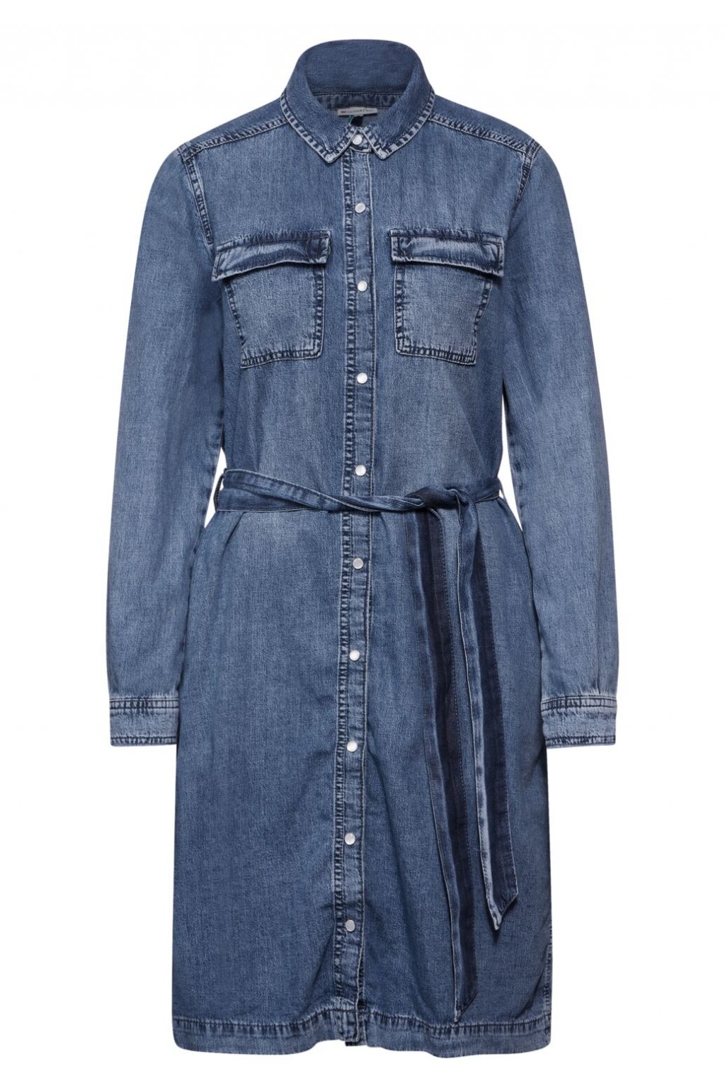 Džínsové šaty pre ženy od Street One sú módne košeľové šaty, ktoré dokonale spájajú eleganciu a ležérnosť. S golierom a gombíkovou légou po celej dĺžke dodá každému outfitu štýlový nádych. Dizajn v dĺžke ku kolenám a bočné vrecká a náprsné vrecká ponúkajú praktickú funkčnosť, zatiaľ čo čistá bavlna zaisťuje vysoký komfort.