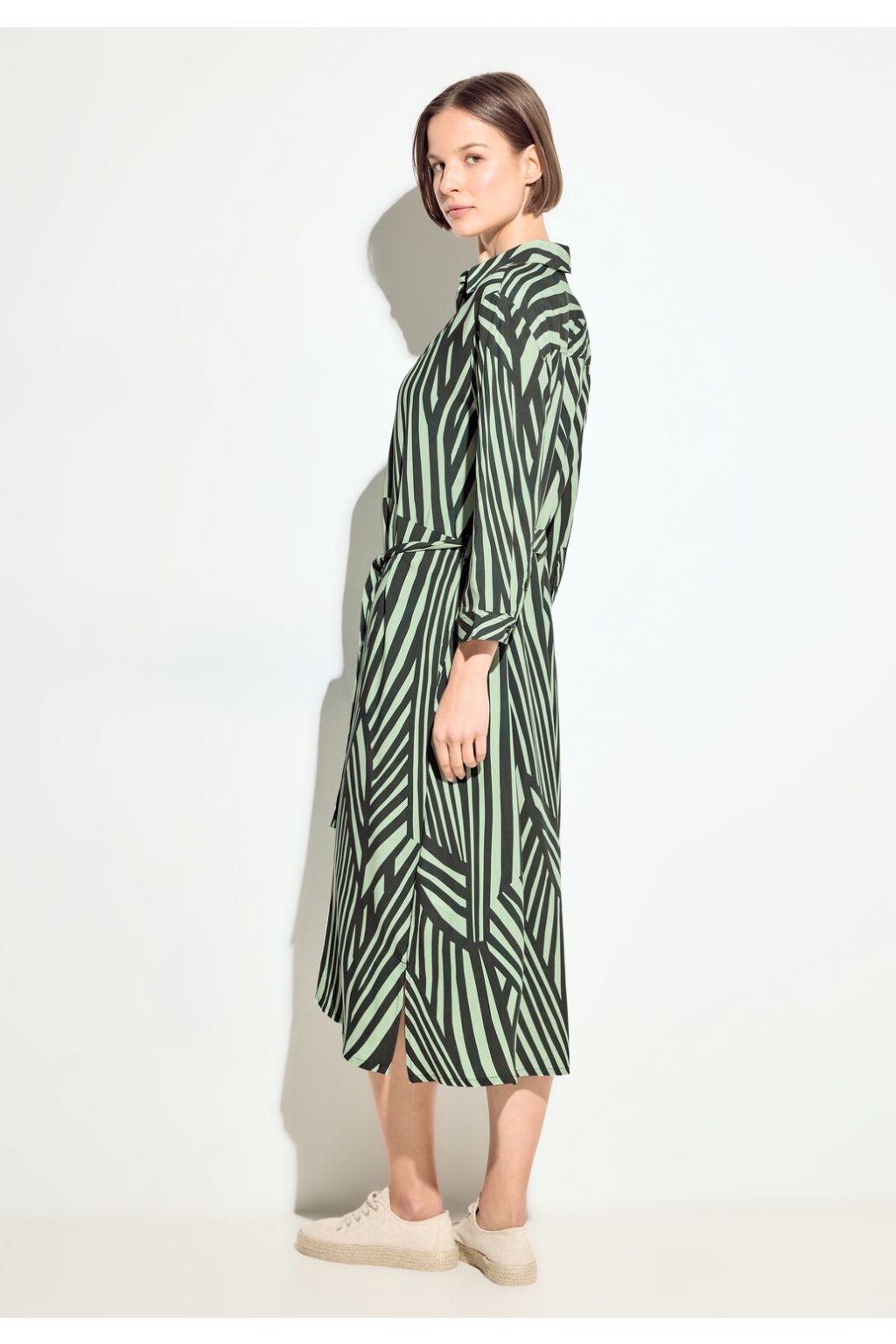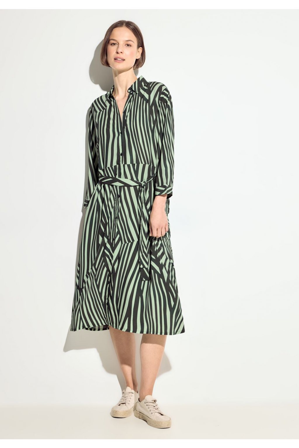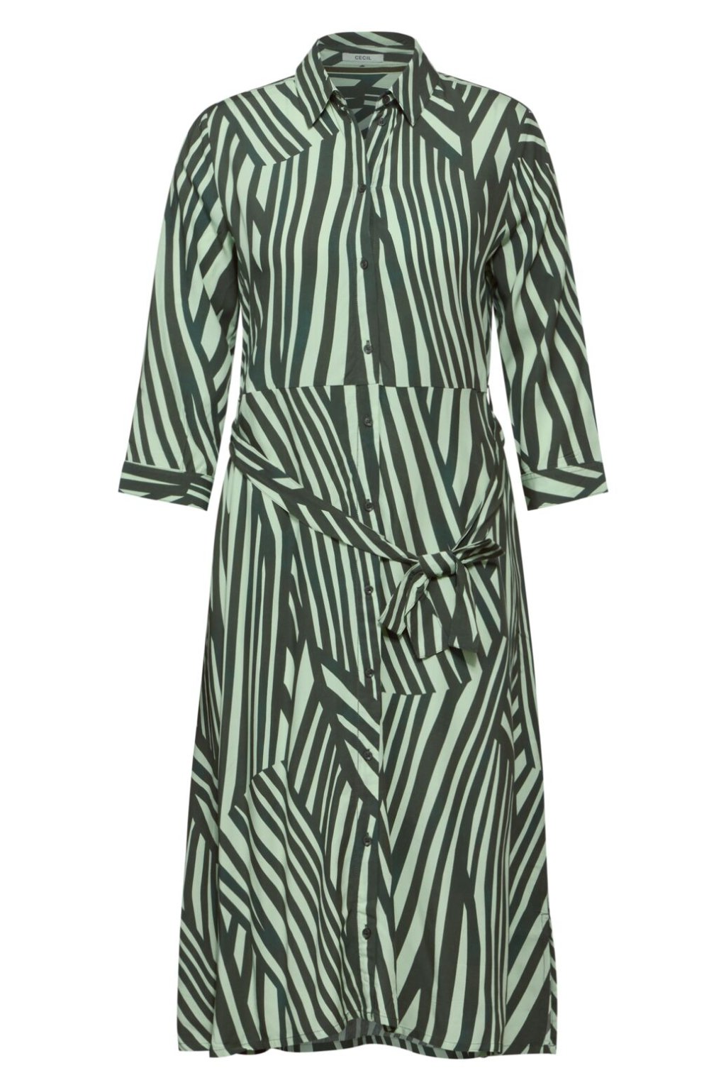 Viskózové šaty od CECIL sú elegantné midi šaty v pruhovanom mixe. So svojimi 3/4 rukávmi s manžetami, golierom a gombíkovou légou ponúka štýlový nádych. Pútka a látkový pásik zdôrazňujú pás, zatiaľ čo bočné rázporky pri leme umožňujú voľnosť pohybu a robia šaty vzdušnými a ľahkými.