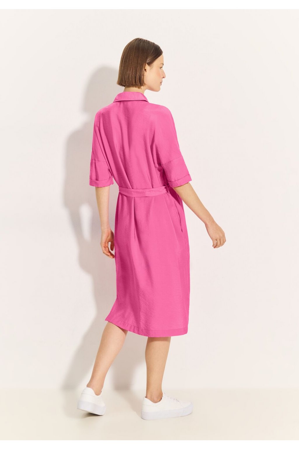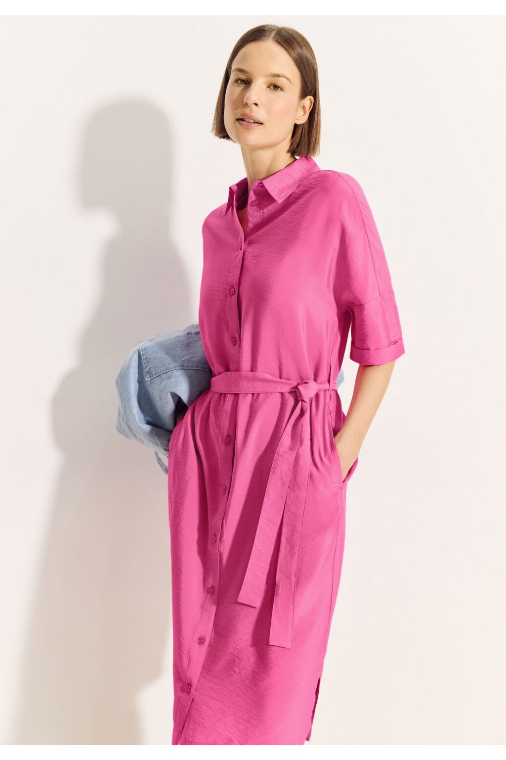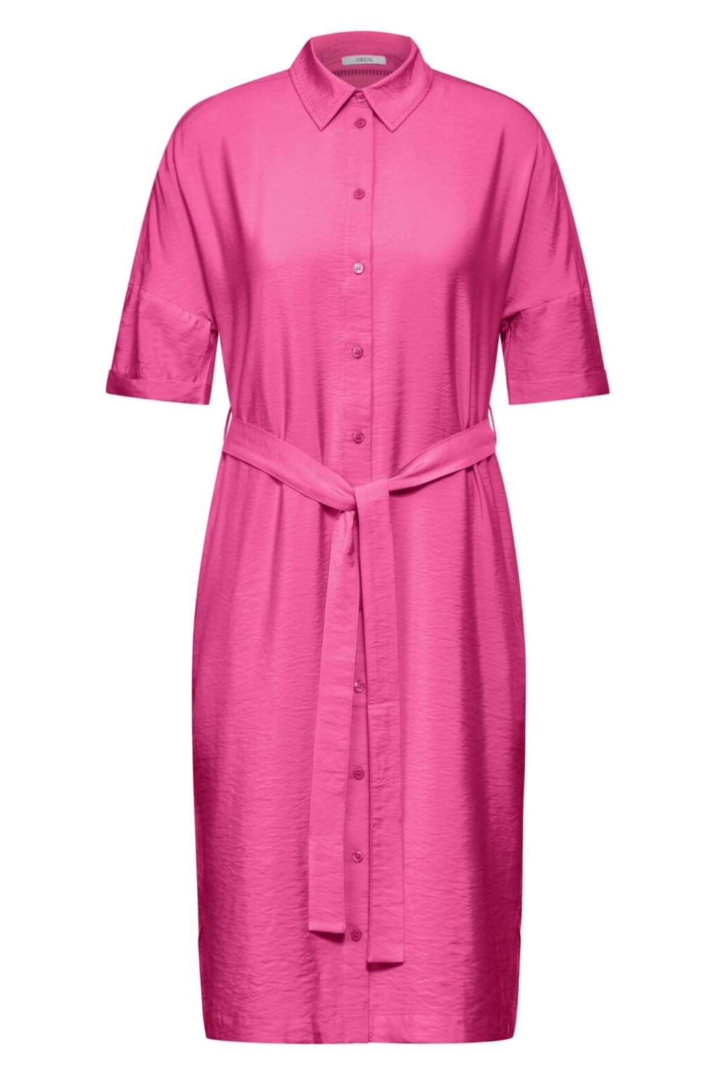Mušelínové midi šaty od CECIL pre ženy sa prezentujú ako elegantné blúzkové šaty s krátkym rukávom, klasickým golierom a gombíkovou légou pre štýlový vzhľad. S bočnými pútkami a pásikom na zaväzovanie zvýrazňuje pás, zatiaľ čo bočné vrecká a rázporky v leme zaisťujú funkčnosť a voľnosť pohybu. Tieto šaty s jednoduchou údržbou a nežehliacimi sú perfektnou voľbou pre nenáročný, ale sofistikovaný vzhľad.