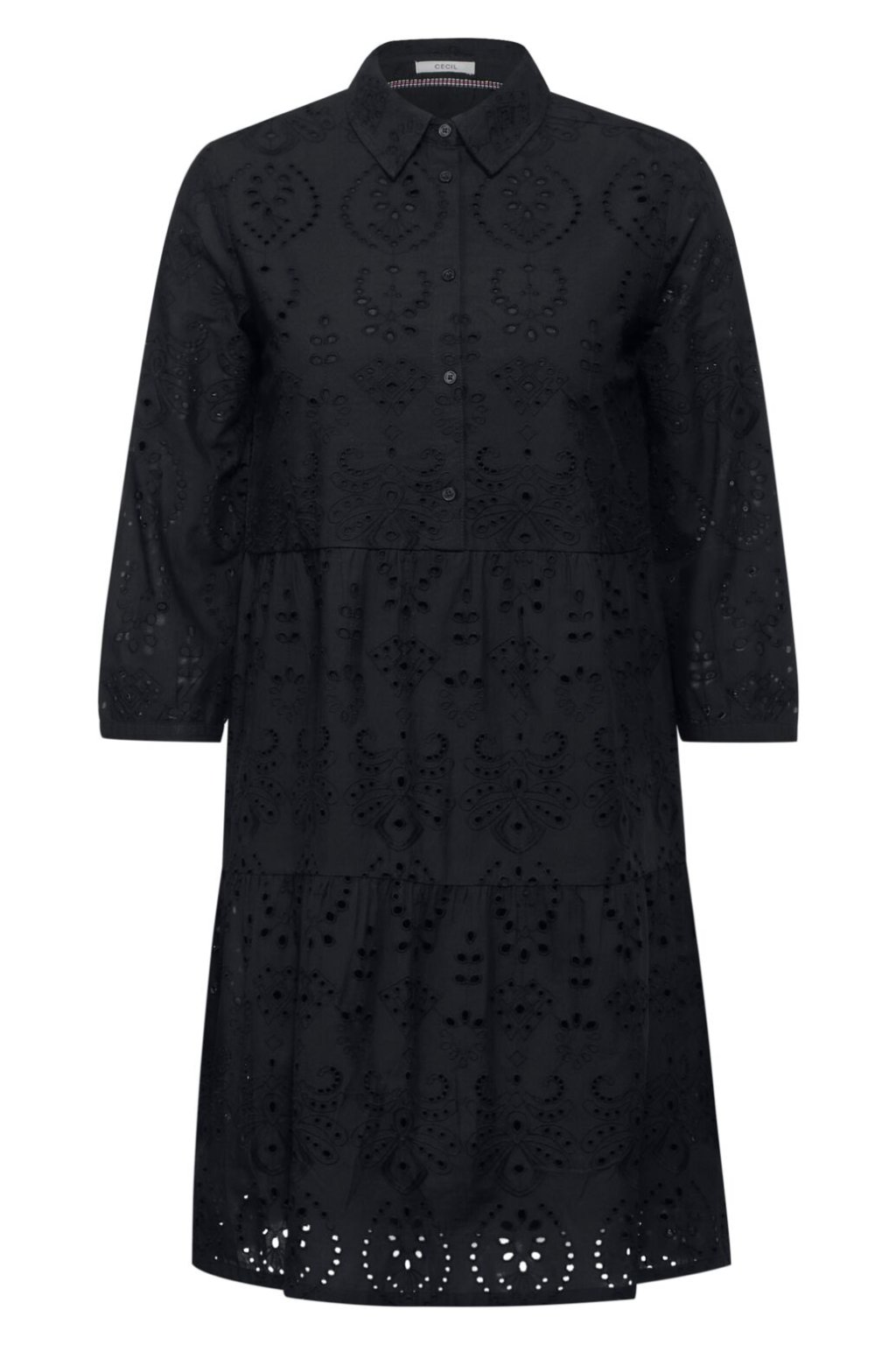 Dámska vyšívaná blúzka CECIL je elegantný bavlnený odev s klasickým golierom a gombíkovou légou pre sofistikovaný vzhľad. 3/4 rukávy s manžetami a gombíkom dodávajú šatám lichotivú siluetu. Kvalitná výšivka očka a ľahká podšívka robia z týchto šiat štýlovú a pohodlnú voľbu na leto.