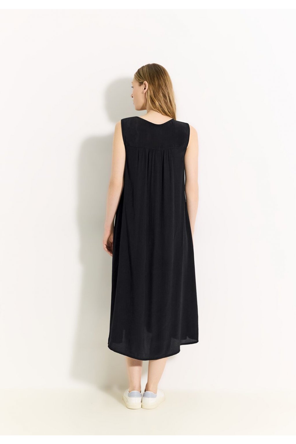 Dámske letné šaty bez rukávov od CECIL majú lichotivý výstrih do V a jemné volániky pozdĺž predného švu. Jemná krepová štruktúra a vysoko kvalitná viskóza zaisťujú pohodlné nosenie. Ideálne pre teplé dni, tieto šaty ponúkajú nielen štýl, ale aj pohodlie po celý deň.