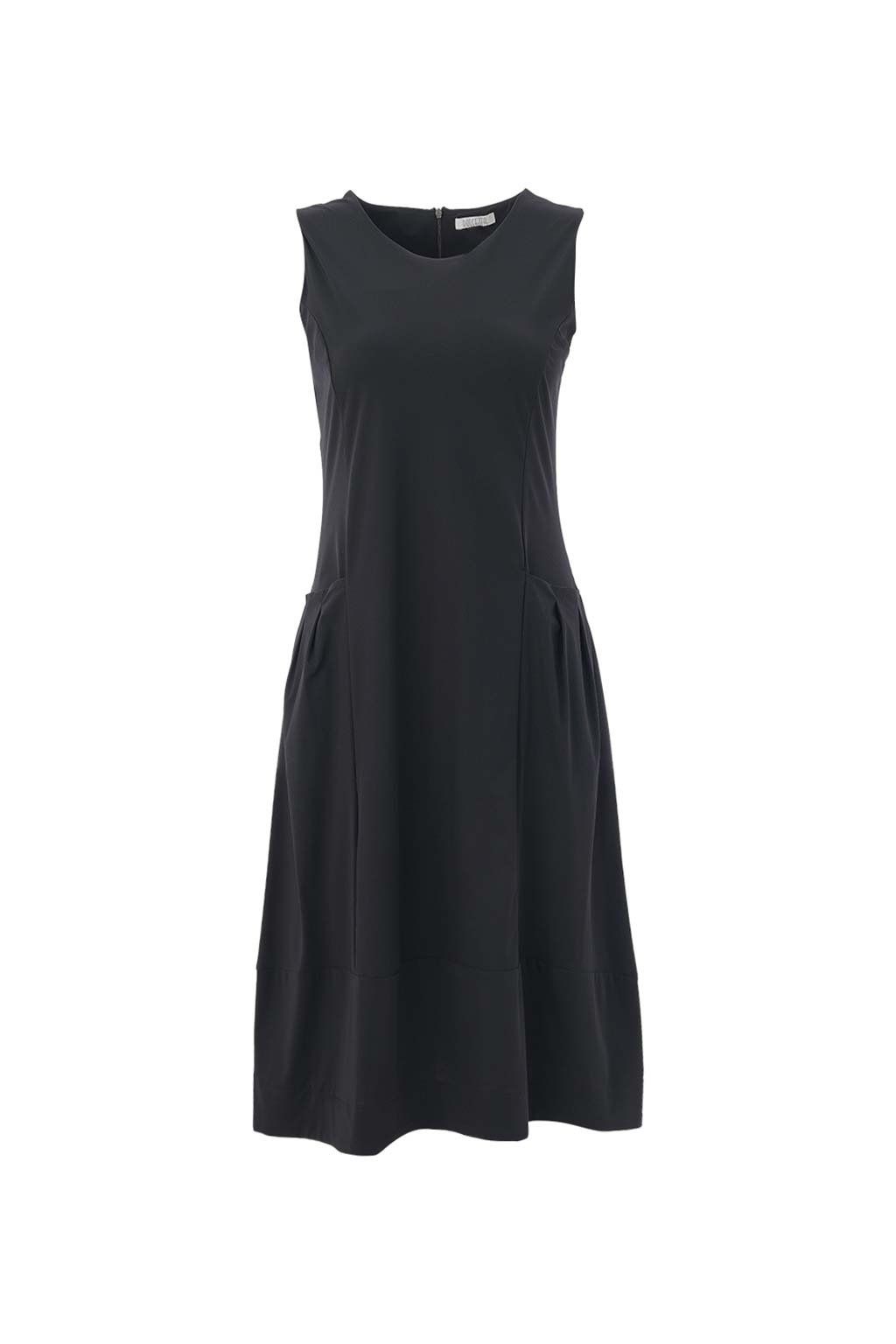 Dámske šaty v čiernom prevedení sú elegantným a nadčasovým kúskom, ktorý v sebe spája jednoduchosť, pohodlie a ženský štýl. Strih bez rukávov pôsobí čisto a veľmi vkusne, zatiaľ čo dlhšia splývavá sukňa dodáva modelu ľahkosť a jemnú eleganciu. Zaujímavým detailom sú výraznejšie bočné partie, ktoré šatám prepožičiavajú originálnu siluetu a moderný vzhľad. Vďaka minimalistickému dizajnu sa šaty ľahko kombinujú s teniskami, sandálkami aj elegantnejšou obuvou a hodia sa do mesta, na dovolenku aj na slávnostnejšie chvíle.