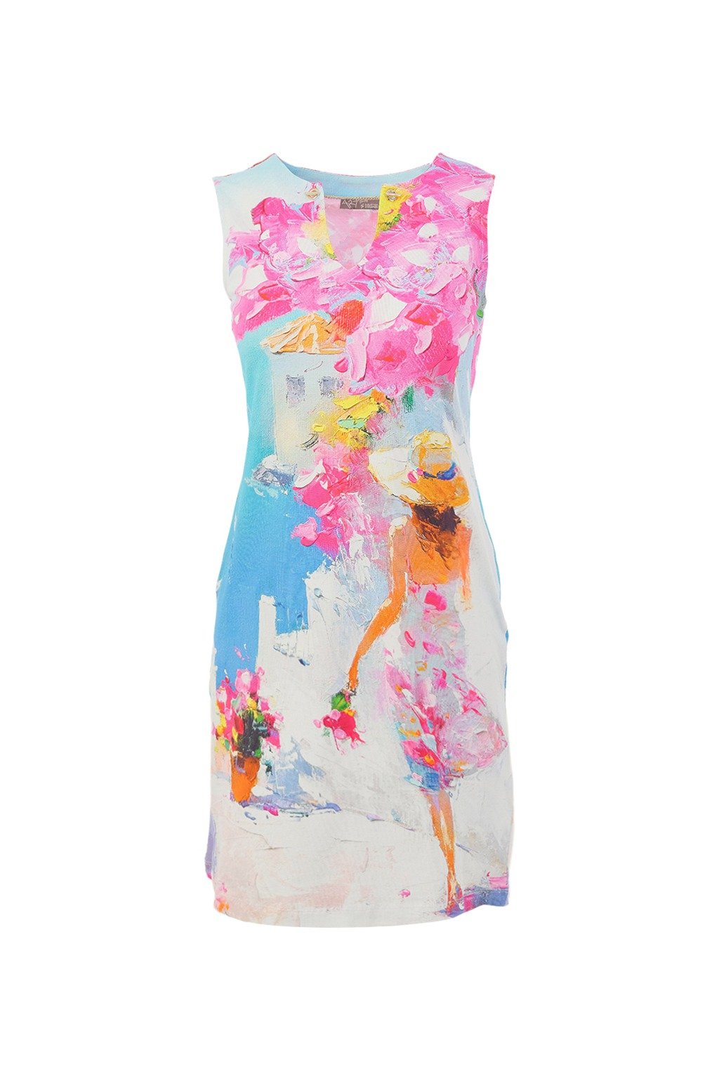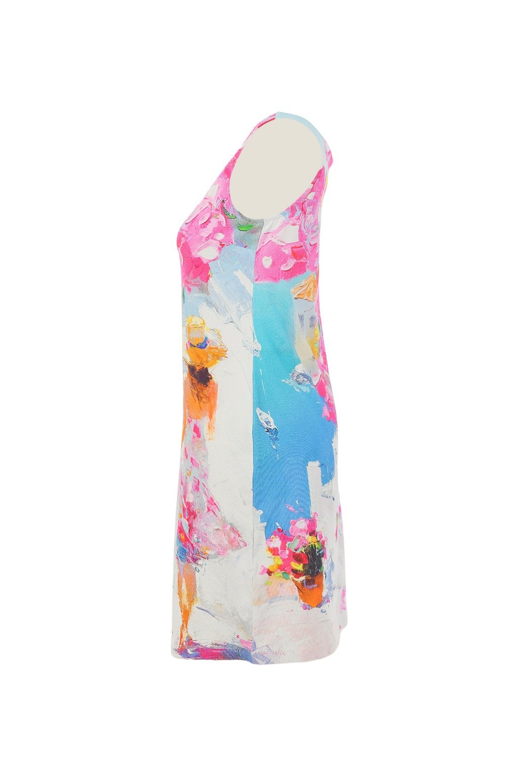 Tieto letné šaty si zamilujete pre ich sviežu farebnosť a ľahko hravý design, ktorý okamžite navodí dovolenkovú náladu. Kombinácia jemných odtieňov modrej, ružovej a bielej s kvetinovým motívom pôsobí veľmi ženským a optimistickým dojmom. Voľnejší áčkový strih krásne splýva s postavou a zaisťuje maximálne pohodlie aj v horúcich dňoch, zatiaľ čo výstrih do V elegantne predlžuje siluetu. Šaty sú ideálne na letné prechádzky, dovolenku pri mori aj neformálne stretnutie v meste - stačí doplniť sandálky a štýlový klobúk a váš svieži letný outfit je hotový.