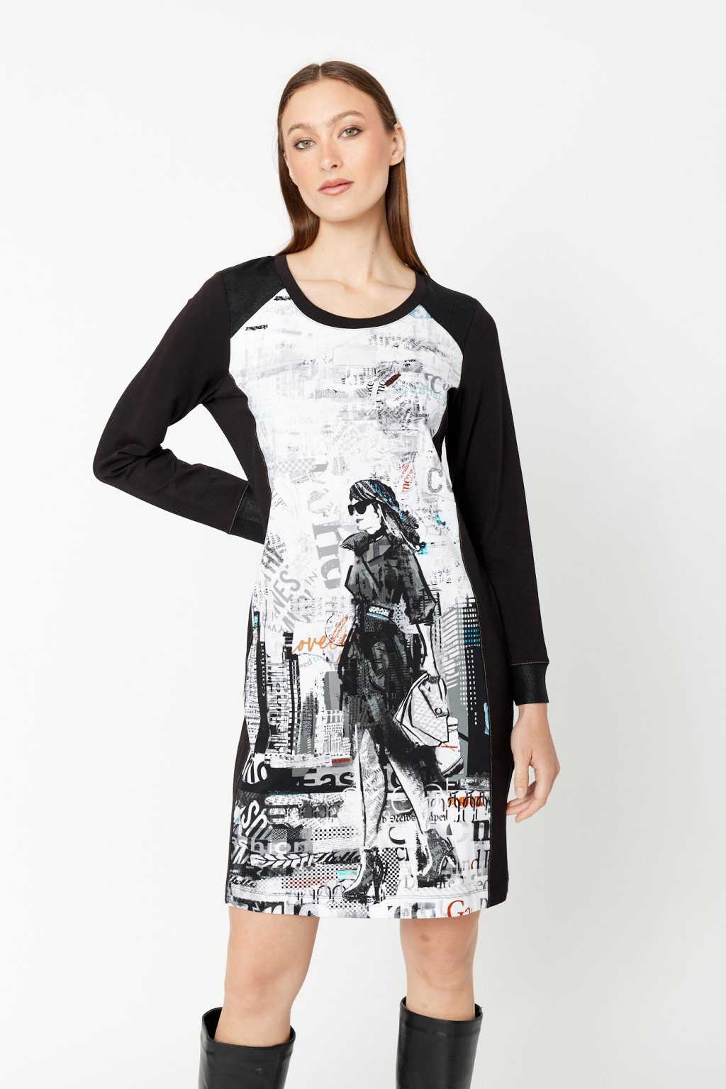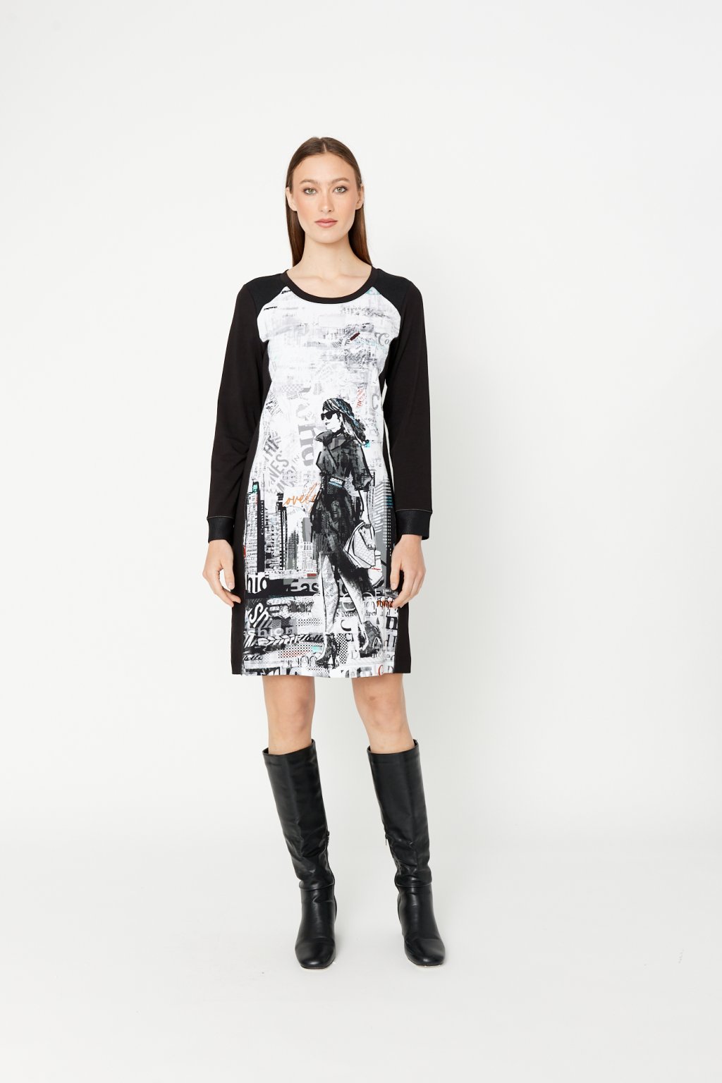 Pozdvihnite svoj šatník s týmito šatami po kolená od Dolcezza. Tieto šaty s okrúhlym výstrihom, raglánovými rukávmi s dlhým rukávom a ležérnym štýlom sú ideálne na každú príležitosť. Abstraktný vzor s textovou potlačou dodáva tomuto všestrannému kúsku jedinečný nádych, takže je nevyhnutnosťou vo vašej zbierke.