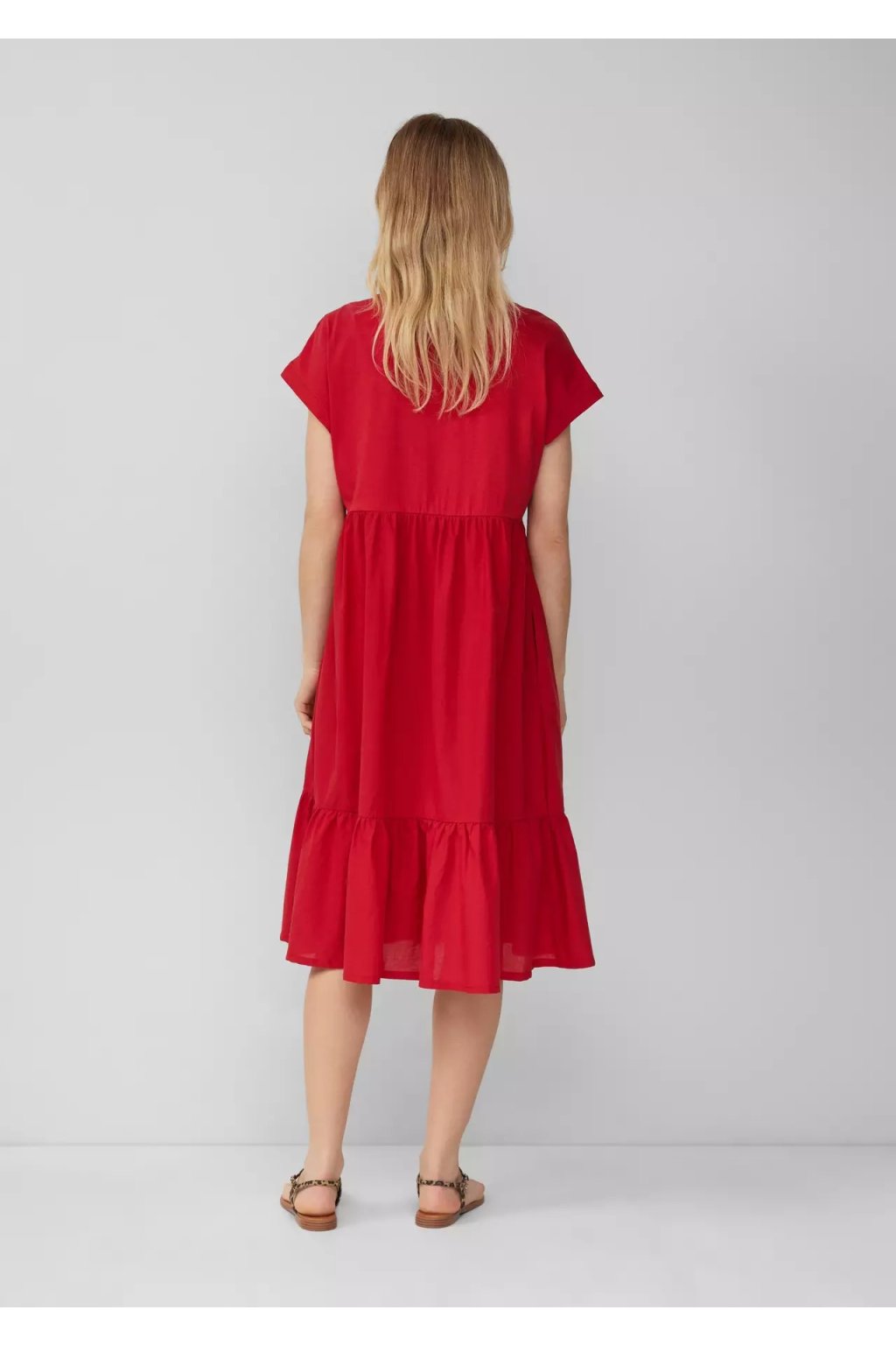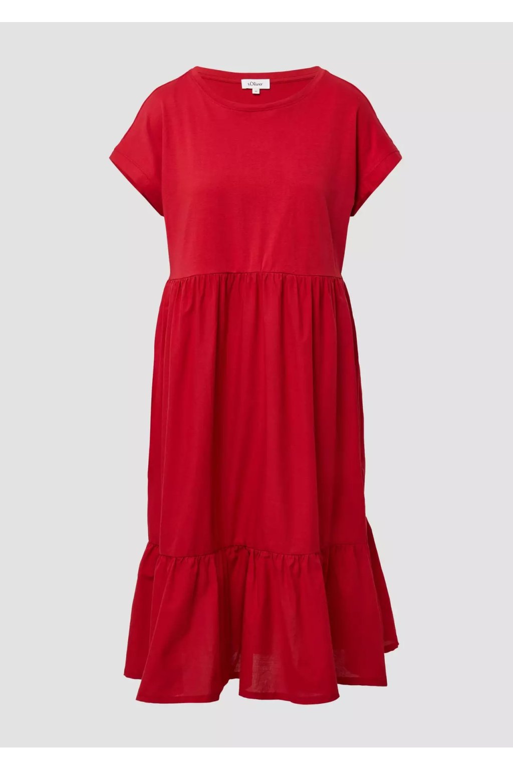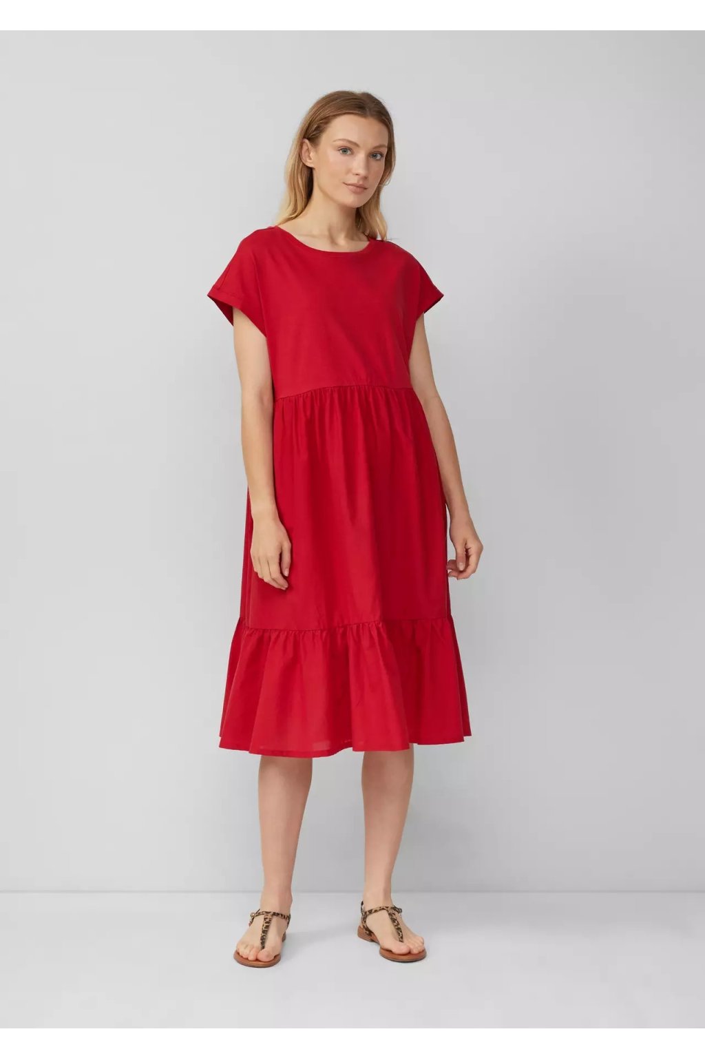 Tieto džersejové šaty v midi dĺžke s voľným strihom a spadnutými ramenami sú ideálne pre všedné dni. Mäkká tkanina a skryté vrecká dodávajú pohodlie, zatiaľ čo okrúhly výstrih a rozšírený spodný lem vytvárajú štýlovú siluetu.