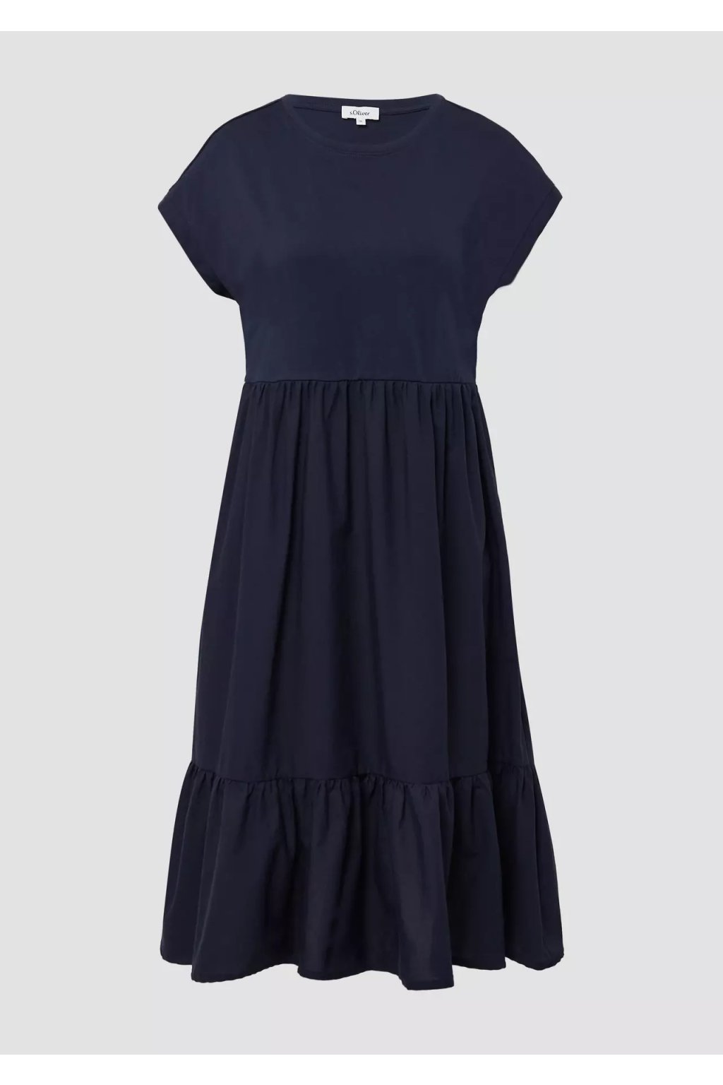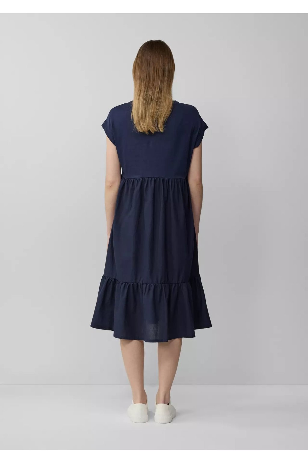 Tieto džersejové šaty v midi dĺžke s voľným strihom a spadnutými ramenami sú ideálne pre všedné dni. Mäkká tkanina a skryté vrecká dodávajú pohodlie, zatiaľ čo okrúhly výstrih a rozšírený spodný lem vytvárajú štýlovú siluetu.