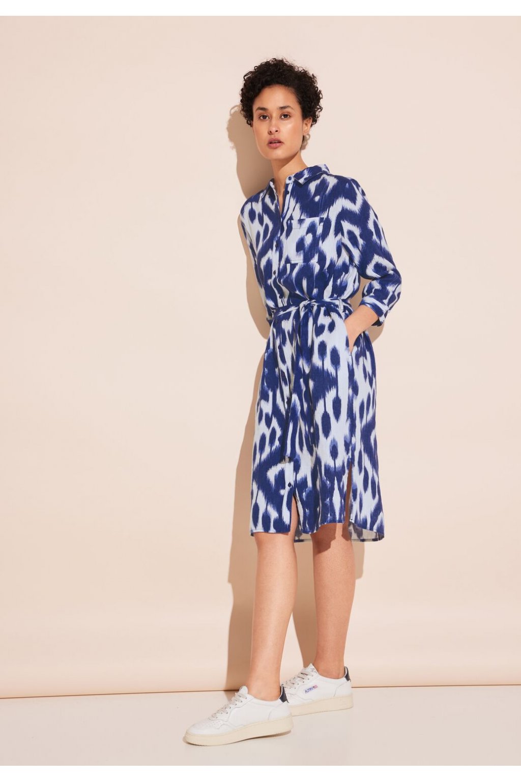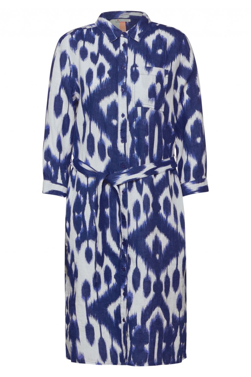 Dámske plátené šaty Street One kombinujú štýl a pohodlie s elegantným dizajnom košeľových šiat, ktoré zahŕňajú náprsné vrecko a dlhé rukávy s manžetami. Má klasický golier, gombíkovú légu a zaväzovací pásik, ktorý sťahuje pás. Praktické bočné vrecká a rázporky v leme dotvárajú elegantný vzhľad tohto odevu.