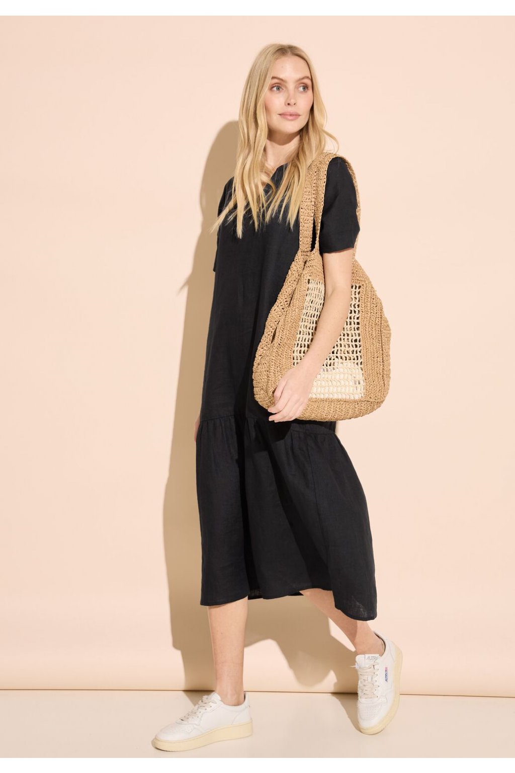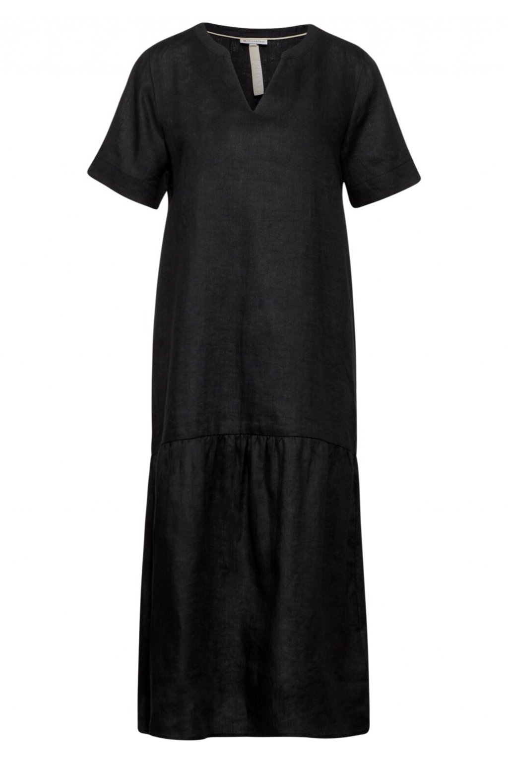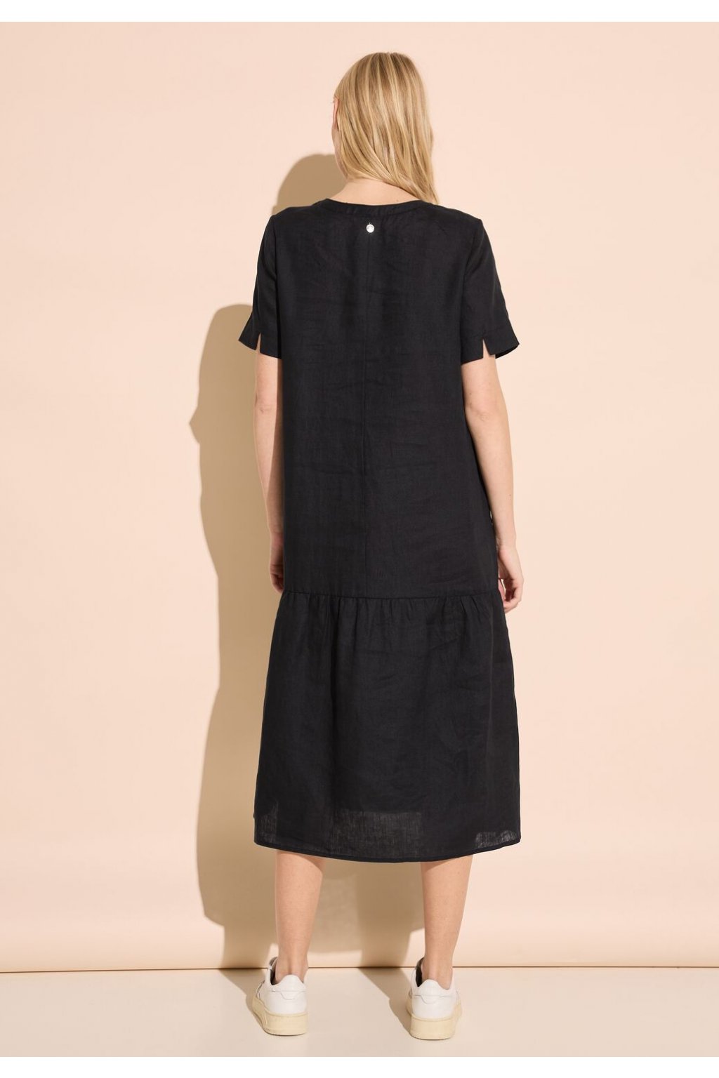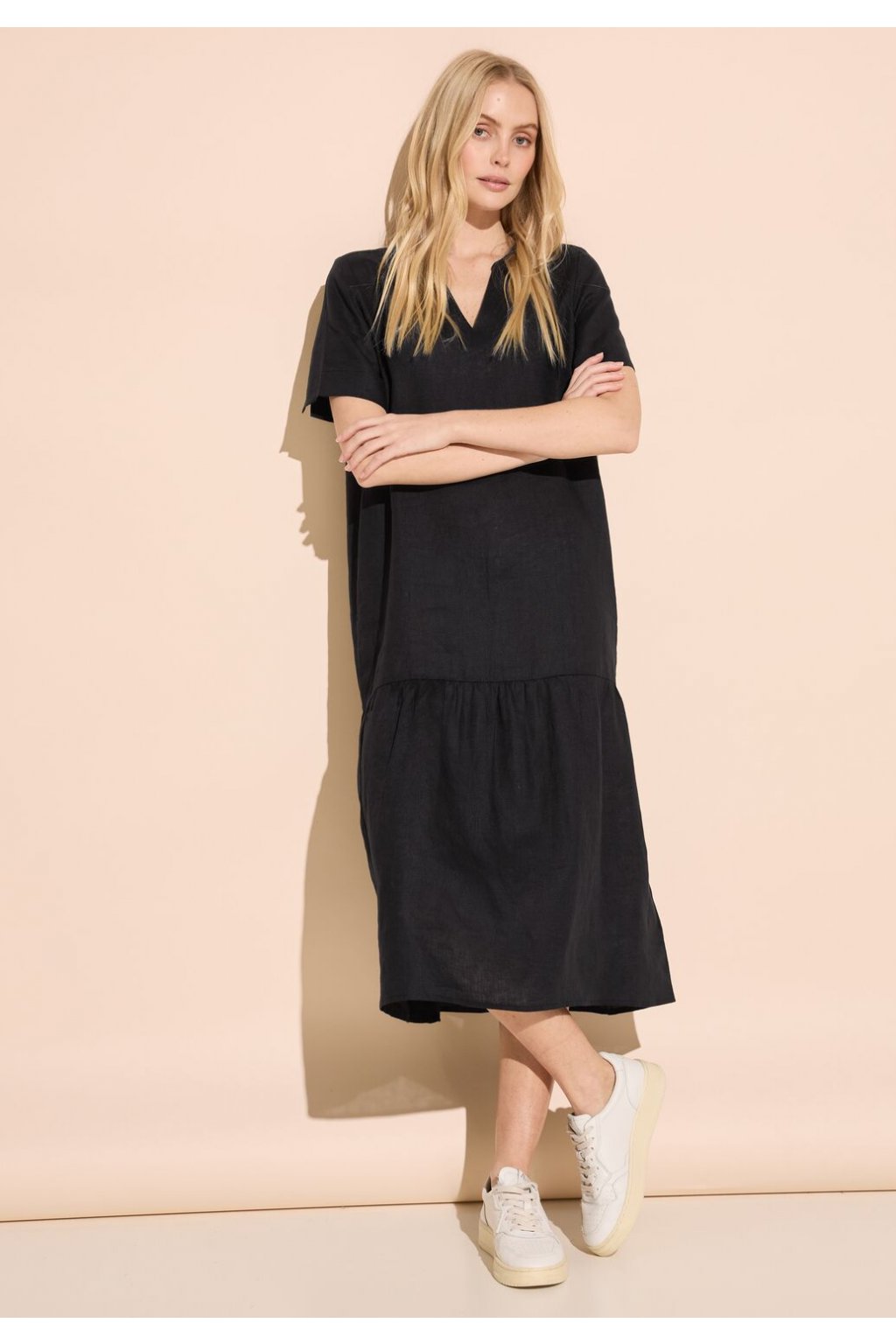 Jednofarebné midi šaty s volánikmi od Street One pre ženy sú naozajstným kúskom. Svojím dizajnom, atraktívnym výstrihom do V a krátkymi rukávmi s malými rázporkami vyžaruje eleganciu. Ľahké a vzdušné prádlo z neho robí perfektný všestranný pomocník do práce, na voľný čas aj na dovolenku.