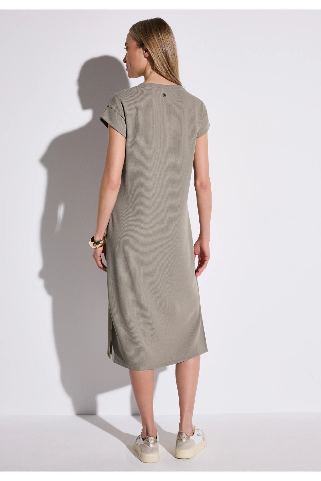 Tieto dámske midi šaty od Street One zaujmú modernou rebrovanou štruktúrou a ležérnym strihom. Výstrih do V dodáva designu bez rukávov elegantný nádych. Vďaka príjemnému komfortu nosenia je ideálny pre letné každodenné looky.