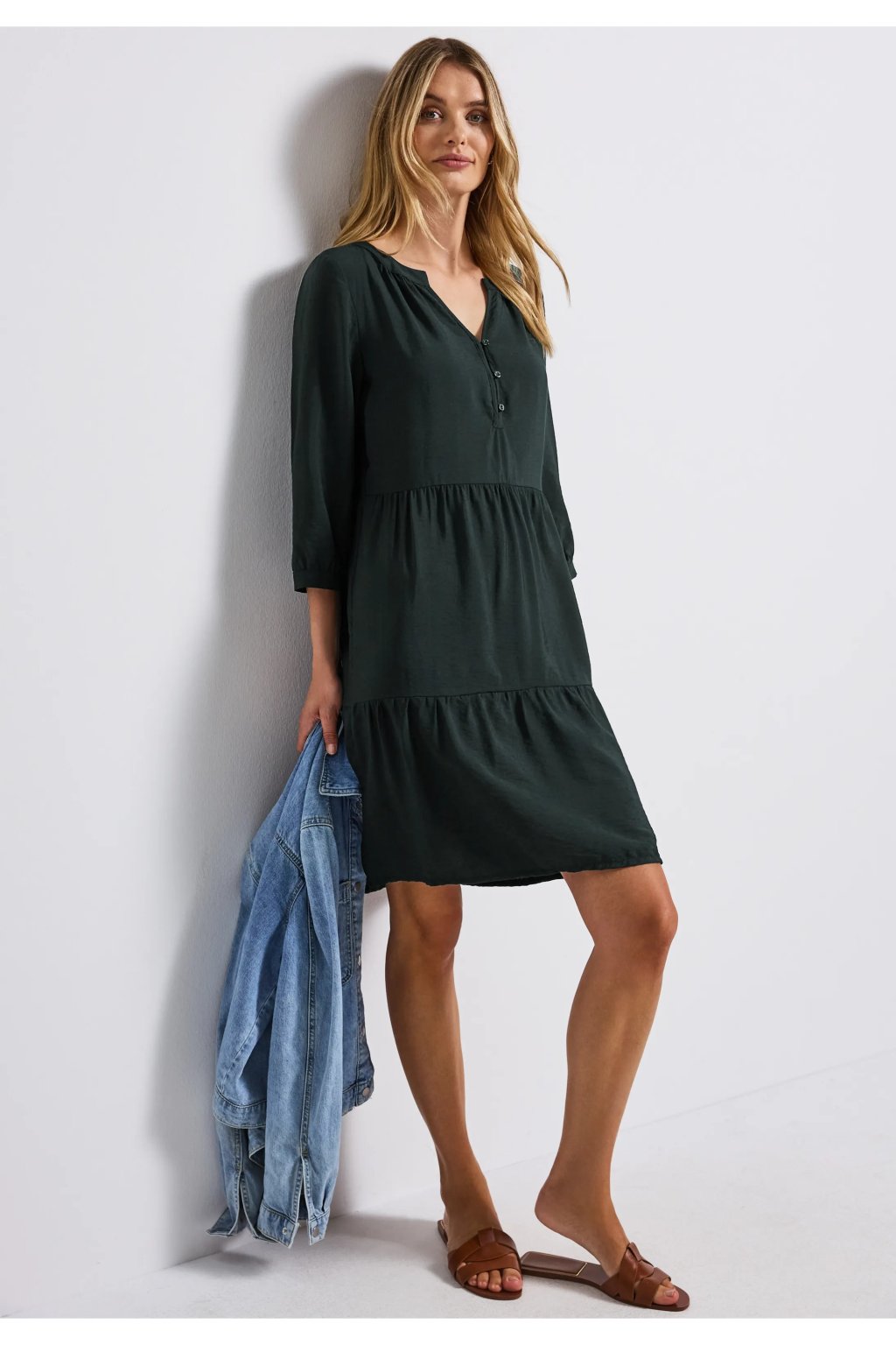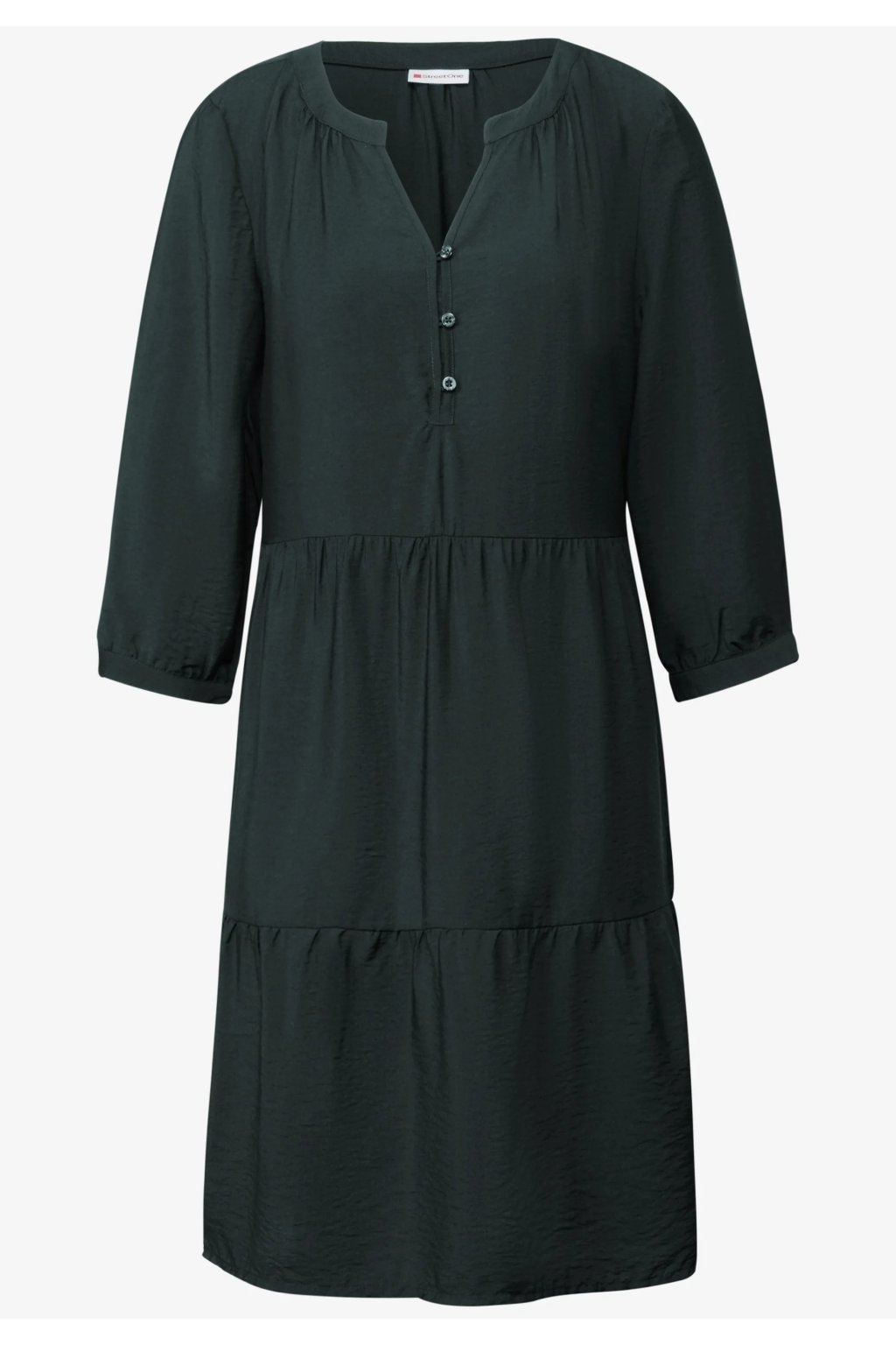 Tieto dámske tunikové šaty Street One vás budú okúzľujúcim spôsobom sprevádzať celým letom. Rozparkový výstrih s ozdobným zapínaním na gombíky a volánový lem dodávajú módny vzhľad. Pohodlná zmes viskózy zaisťuje pohodlné nosenie.