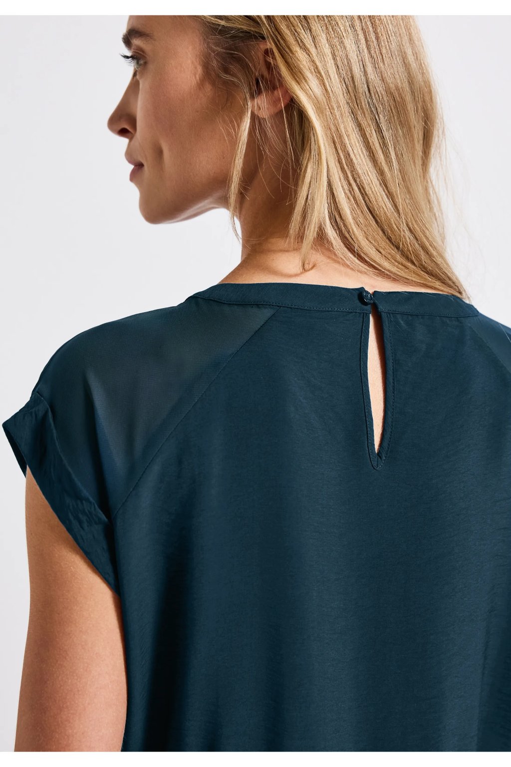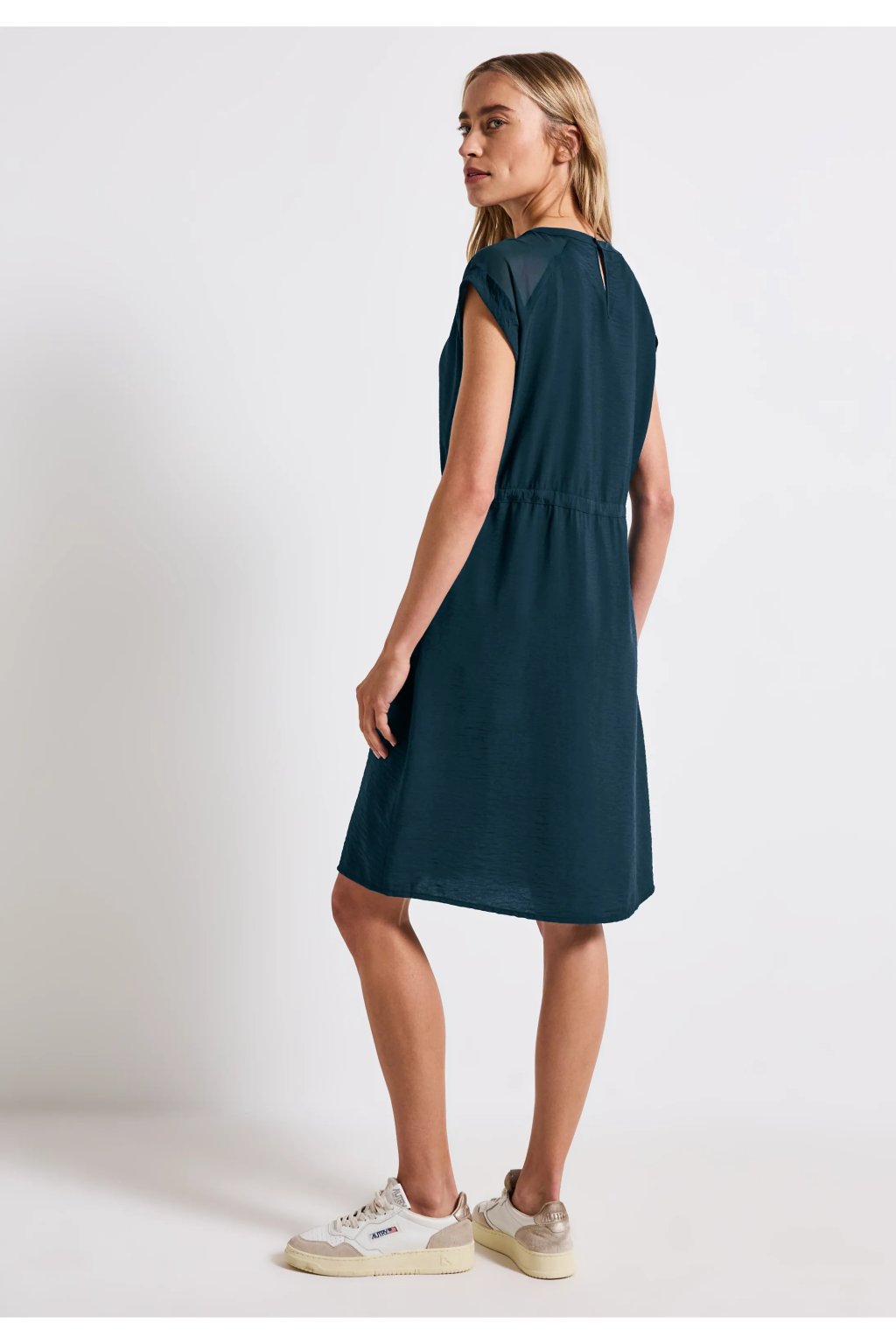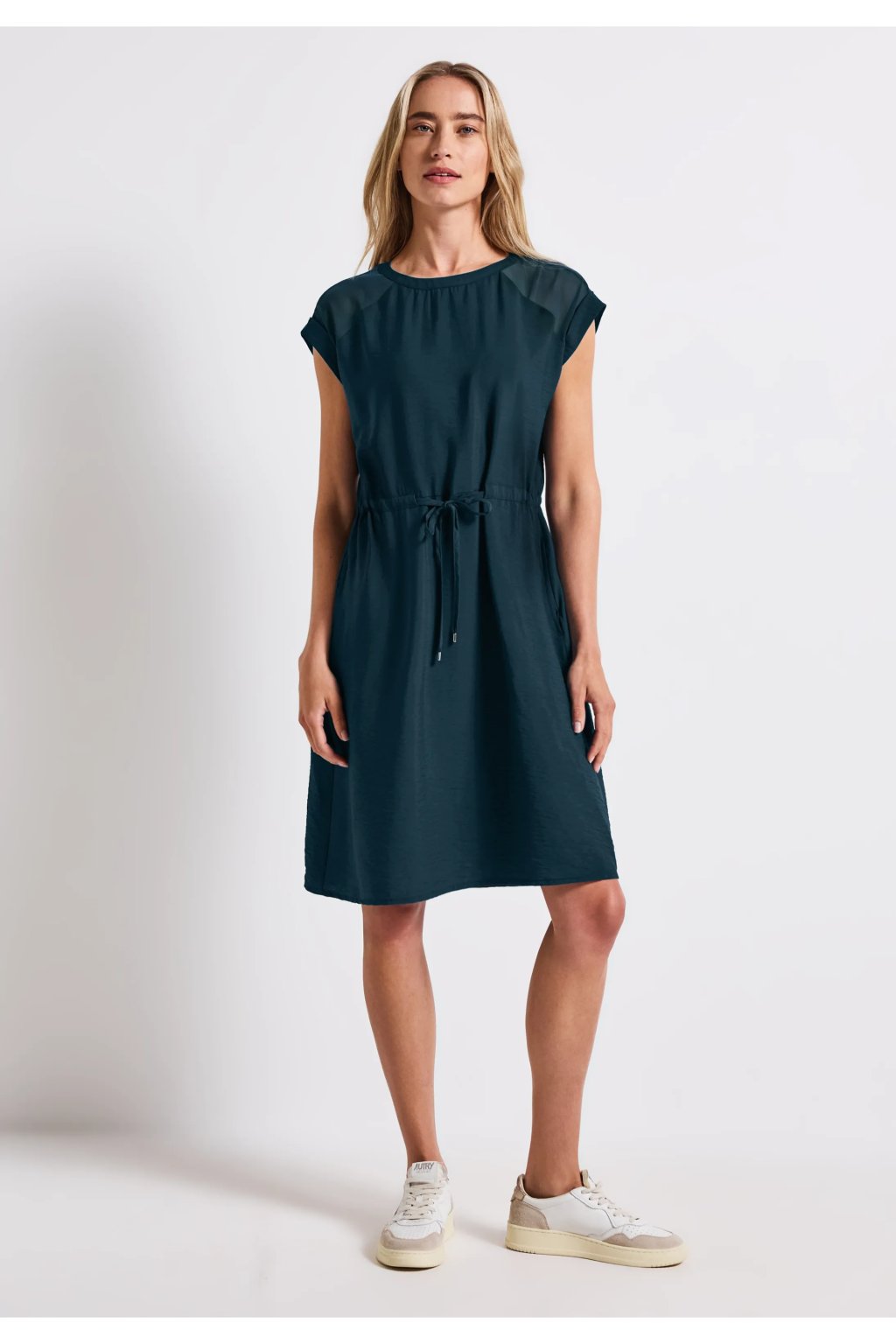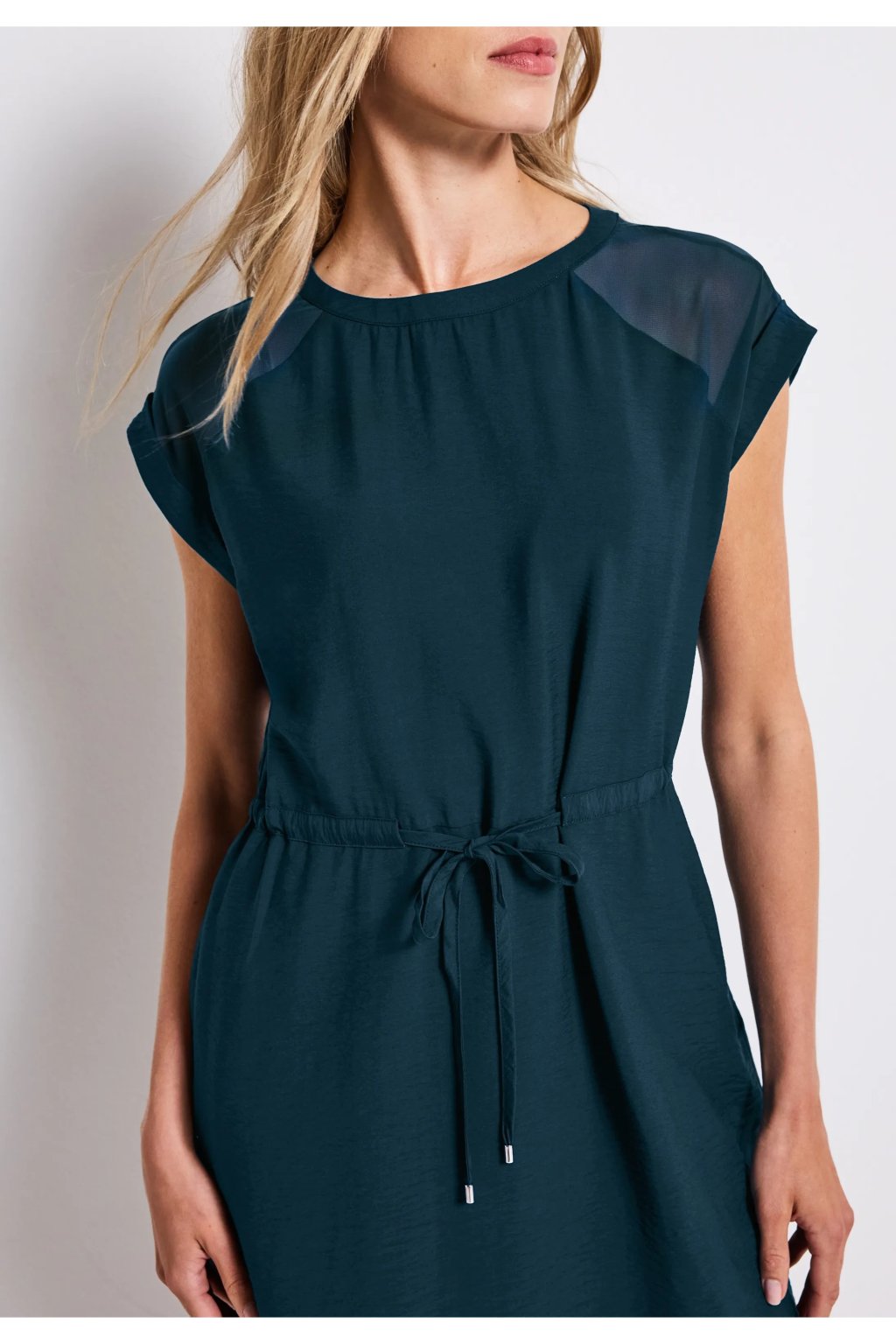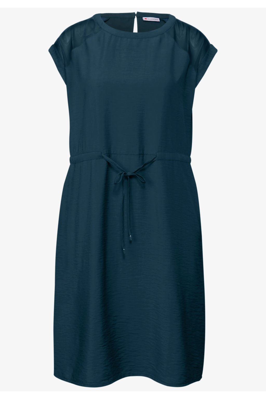 Tieto šaty od Street One pre ženy siahajúce až ku kolenám zaujmú sofistikovanými sieťovanými detailmi a funkčnými prvkami. Okrúhly výstrih, krátke rukávy a sťahovacia šnúrka v páse zaisťujú dokonalý strih. Bočné vrecká robia z týchto šiat praktického spoločníka pre ležérne letné outfity.