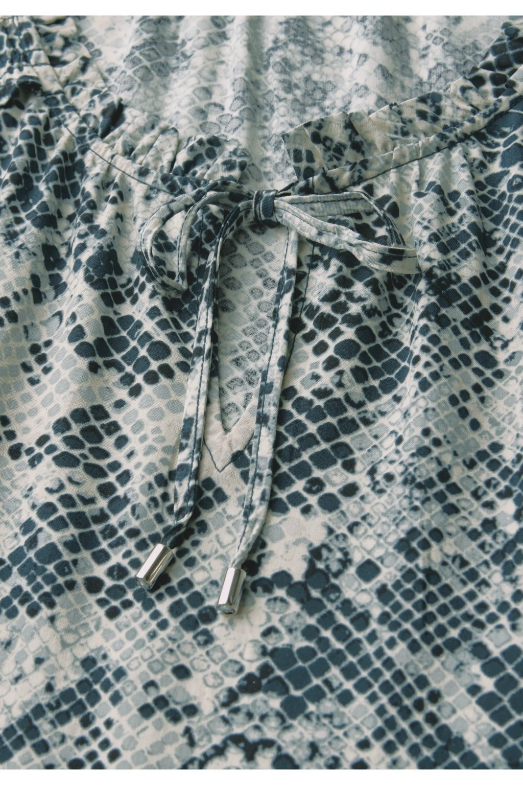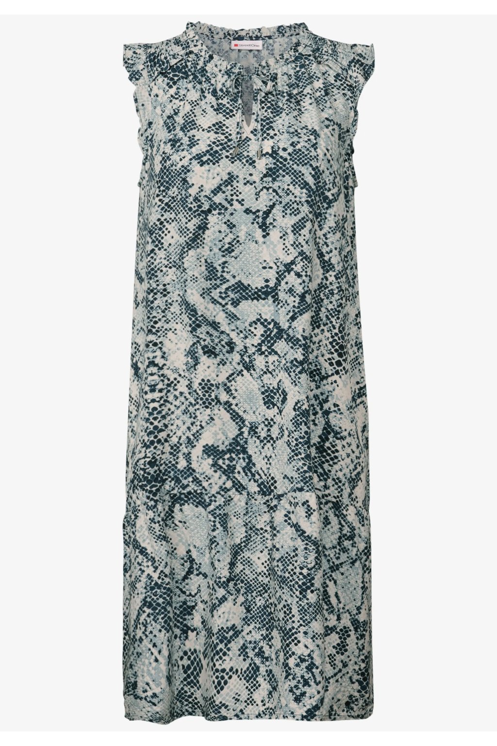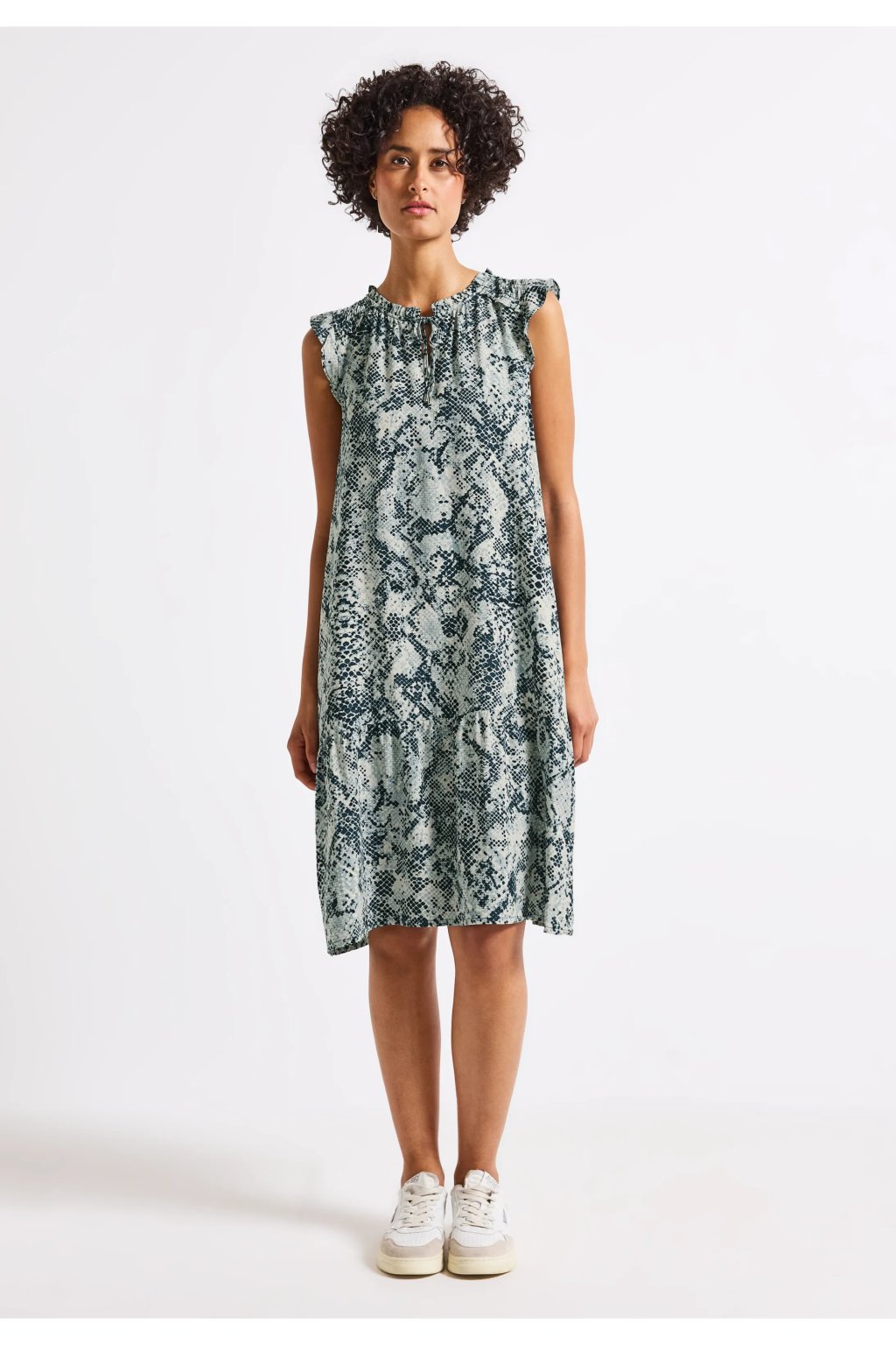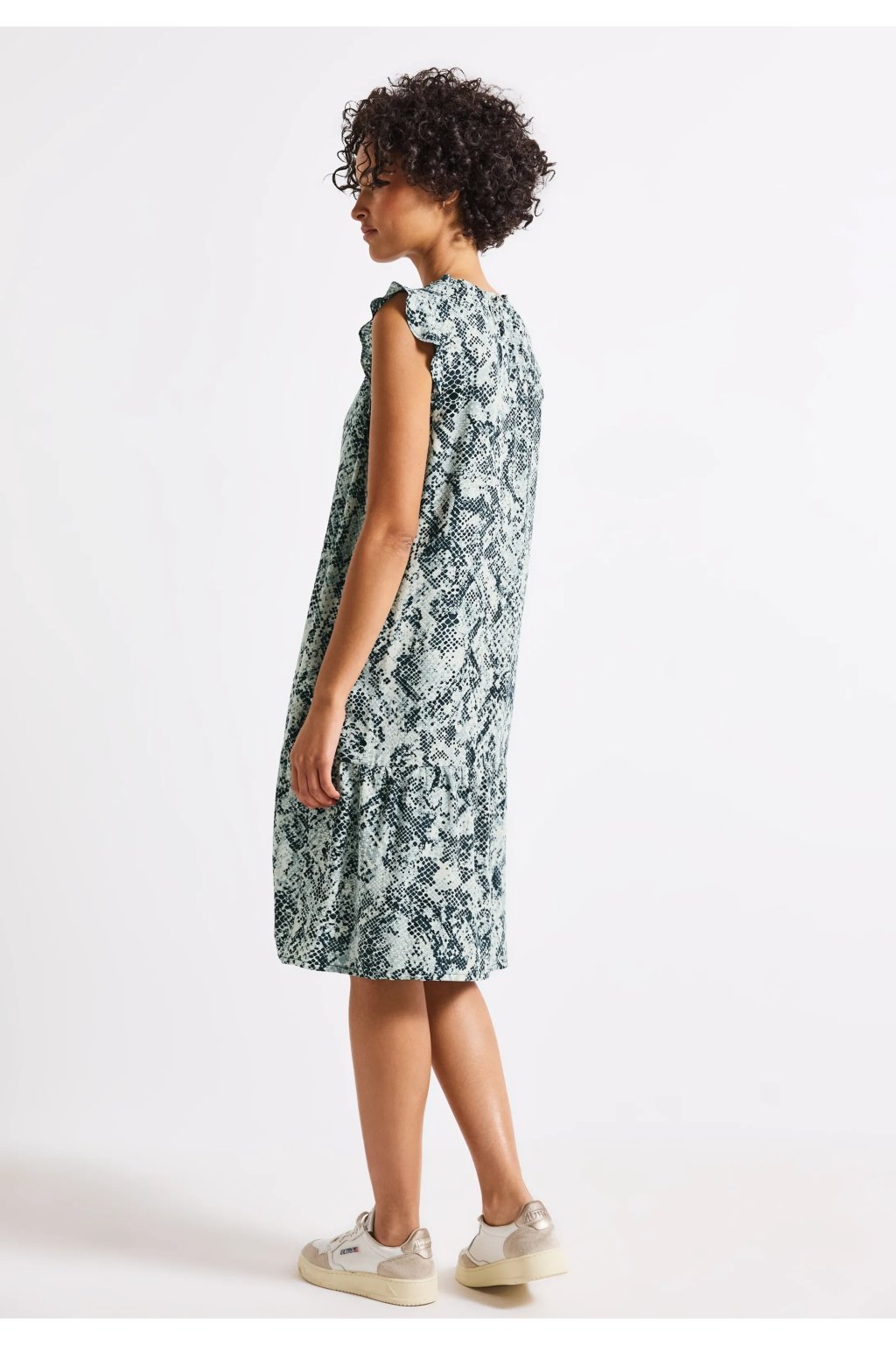 Tieto dámske tunikové šaty od Street One sa vyznačujú grafickým vzorom a krátkymi rukávmi - ideálne pre teplé dni. Rozparky s jemnými zaväzovaniami dodávajú strihu hravý nádych, zatiaľ čo mäkká viskózová tkanina zaisťuje pohodlné nosenie. Štýlový volánik na leme dotvára celkový vzhľad.