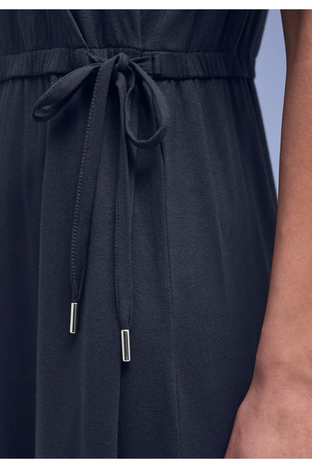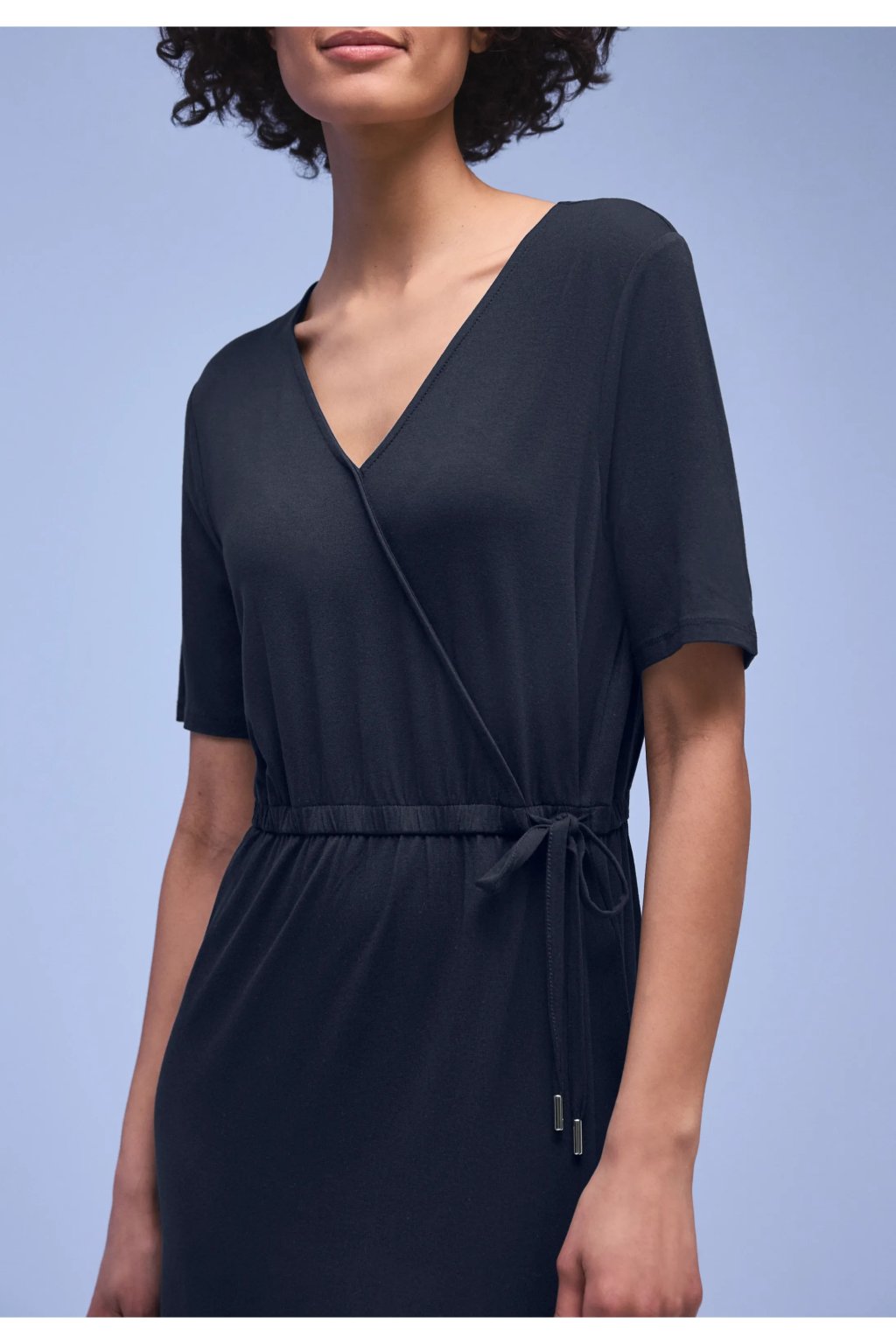 Tieto džersejové šaty vás rozmaznávajú jemne splývavou viskózovou tkaninou a ženským zavinovacím detailom. Výstrih do V a krátke rukávy dodávajú šatám midi dĺžky ľahký a vzdušný vzhľad, zatiaľ čo sťahovací pás jemne zdôrazňuje vašu postavu. Bočné rázporky zaisťujú pohodlnú voľnosť pohybu. Všestranné ležérne šaty, ktoré vás budú štýlovo sprevádzať každodenným životom.