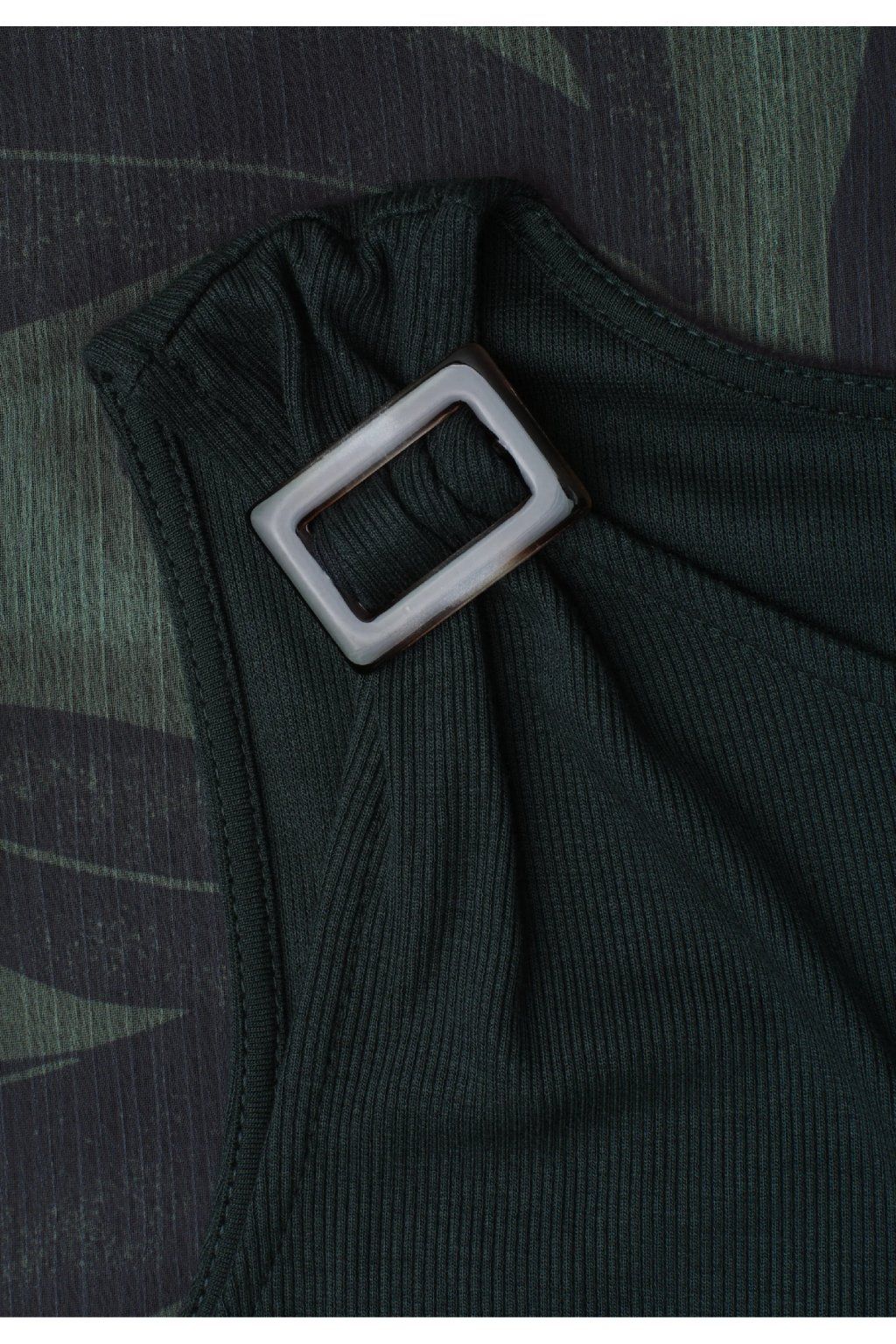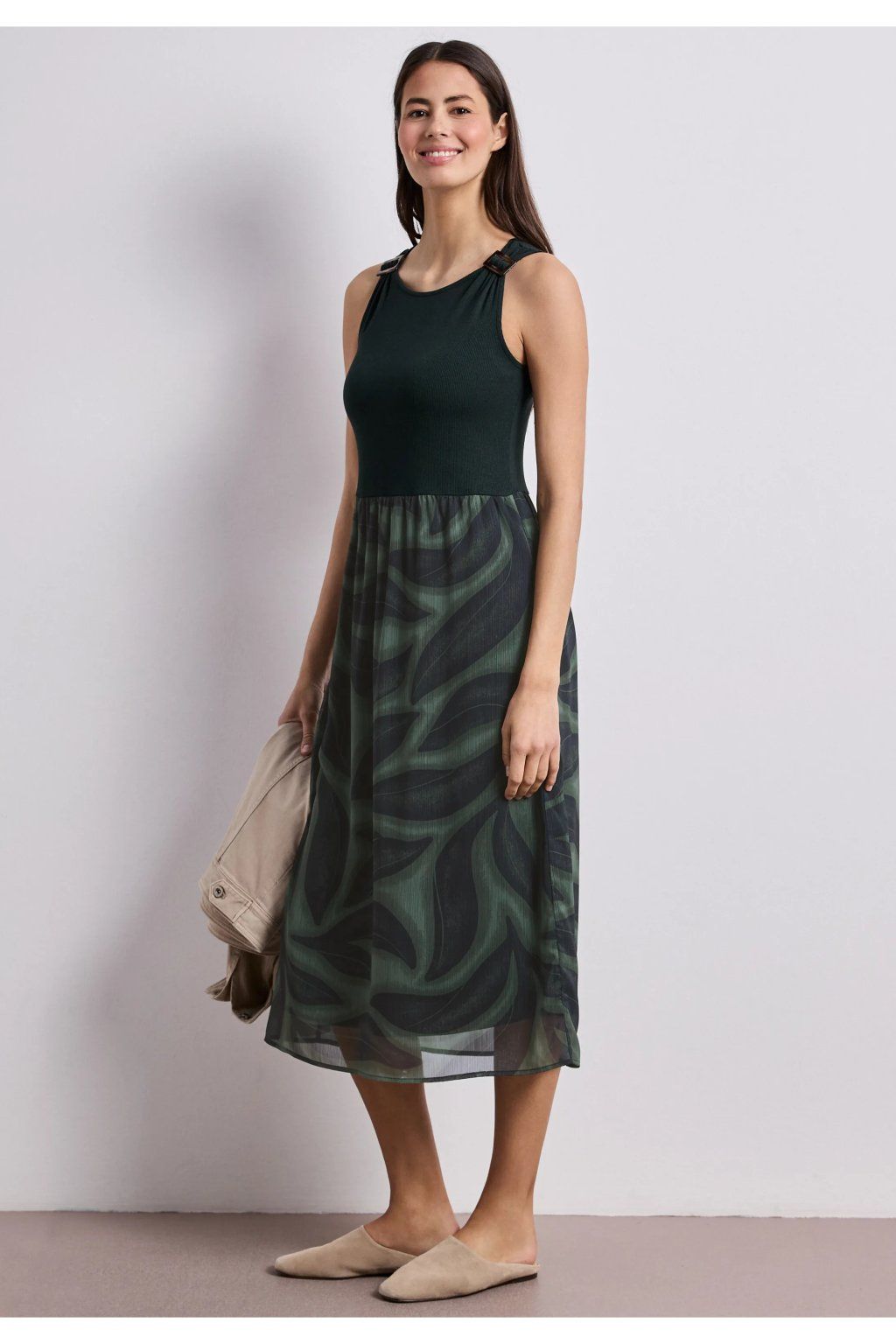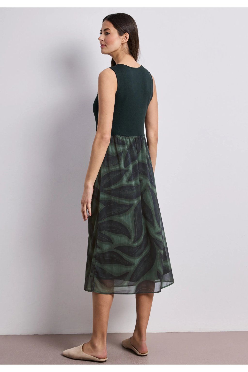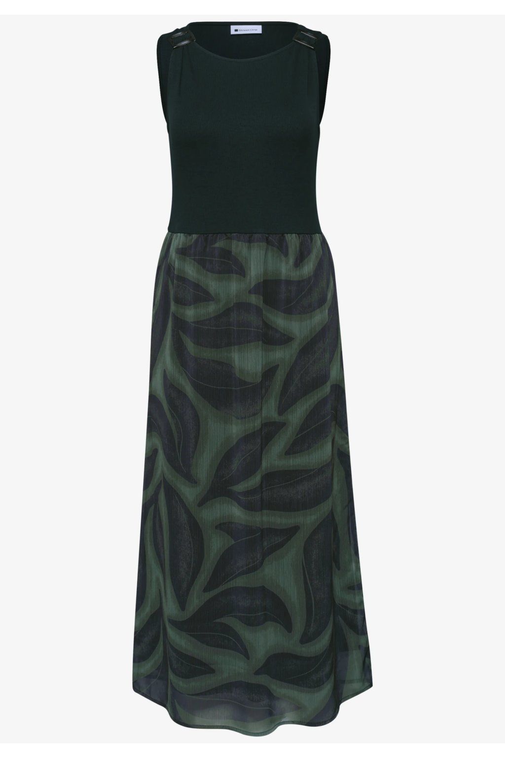 Dámske šaty v tmavo zelenom prevedení pôsobia elegantne, jemne a veľmi žensky. Priliehavejšia horná časť bez rukávov krásne zvýrazní siluetu, zatiaľ čo ľahká splývavá sukňa s decentným vzorom dodáva modelu vzdušnosť a zaujímavý vizuálny efekt. Midi dĺžka podčiarkuje vkusný a nadčasový vzhľad, vďaka ktorému sa šaty skvele hodia do mesta, na letné stretnutie aj na bežné denné nosenie. Štýlový kúsok pre ženy, ktoré hľadajú spojenie pohodlia, ľahkosti a nenútenej elegancie.