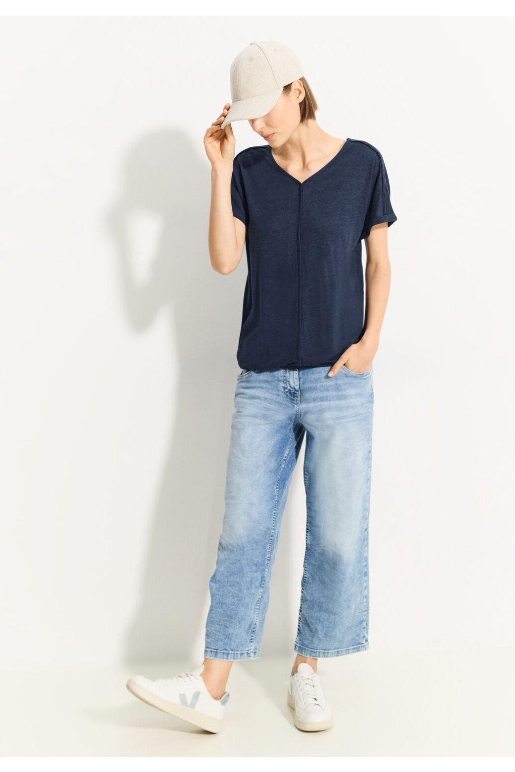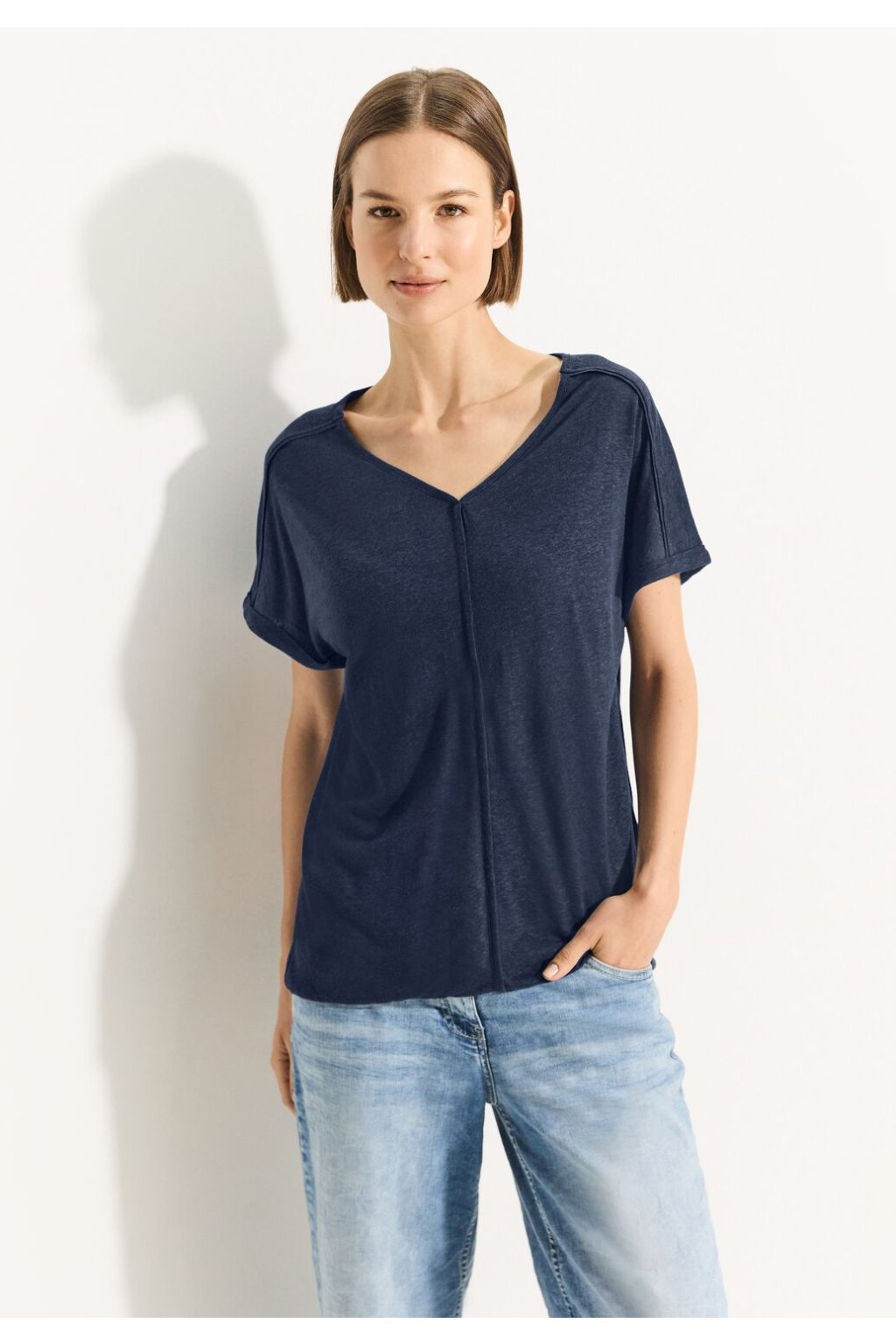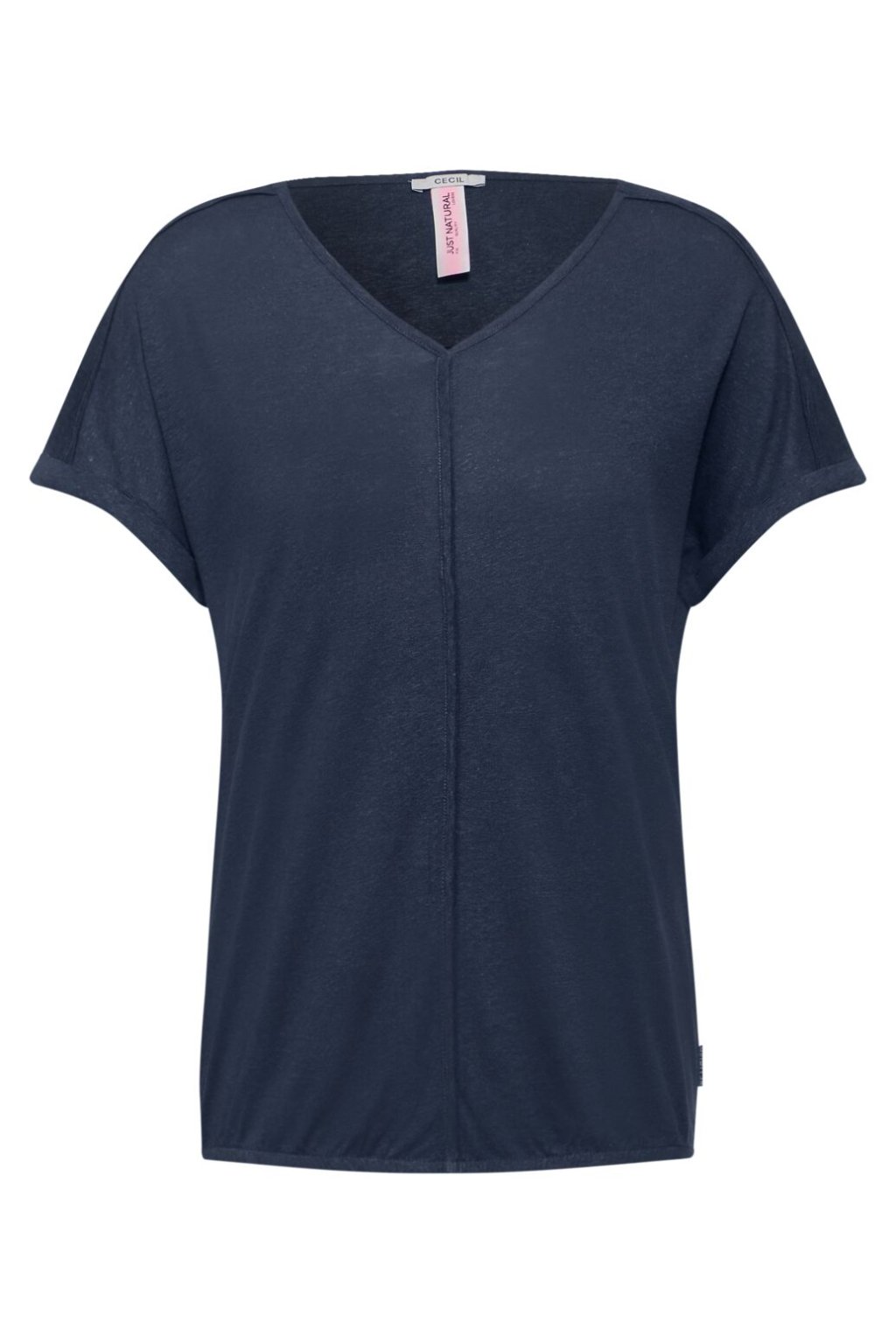 Dámske plátené tričko CECIL je tričko s krátkym rukávom, ktorá má lichotivý výstrih do V s lemovaním a módny elastický pás. Svojím melanžovým vzhľadom dodáva každému outfitu zaujímavú textúru a nádych sofistikovanosti. Košeľa je vyrobená z vysoko kvalitnej zmesi ľan-viskóza, je ľahká a príjemná na nosenie, ideálna do teplých letných dní.