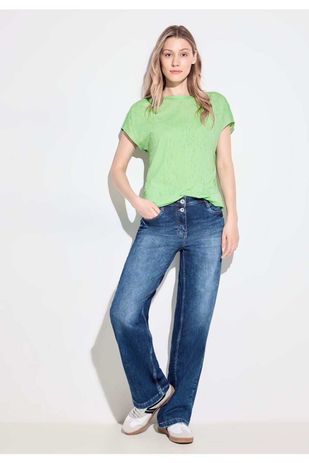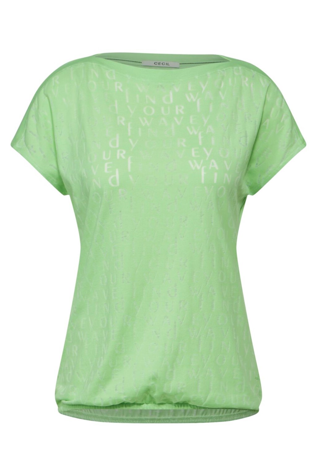 Dámske tričko s krátkym rukávom od CECIL má elegantný lodičkový výstrih a pohodlný elastický pás na optimálne padnutie. Golier elegantne prechádza do ramien a dodáva tričku zaujímavý nádych. Vzor dotvára dizajn a dodáva košeľu moderný nádych.