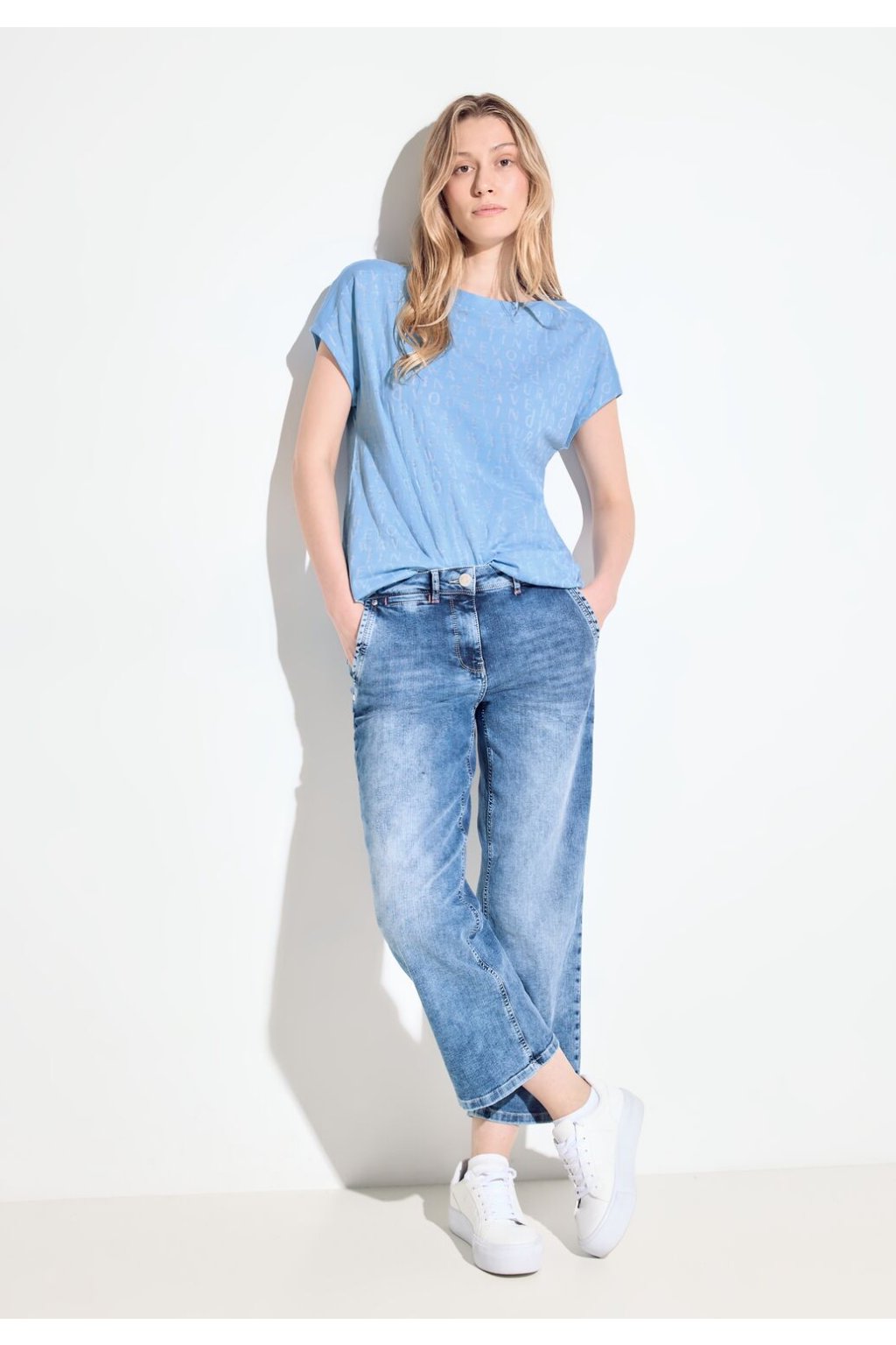 Dámske tričko s krátkym rukávom od CECIL má elegantný lodičkový výstrih a pohodlný elastický pás na optimálne padnutie. Golier elegantne prechádza do ramien a dodáva tričku zaujímavý nádych. Vzor dotvára dizajn a dodáva košeľu moderný nádych.