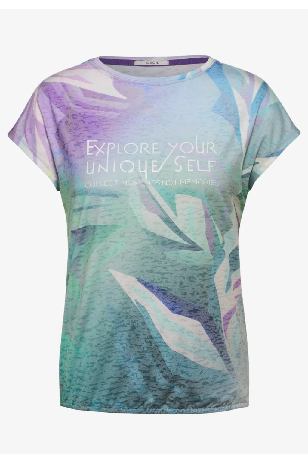 Táto letná košeľa pre ženy CECIL so svojim vyhoretým vzhľadom a elastickým pásom je nielen pohodlná, ale aj štýlová. Text na grafickom vzore mu dodáva ďalší módny nádych. Tričko Burn-Out s potlačou a výstrihom je ideálnym doplnkom vášho šatníka.