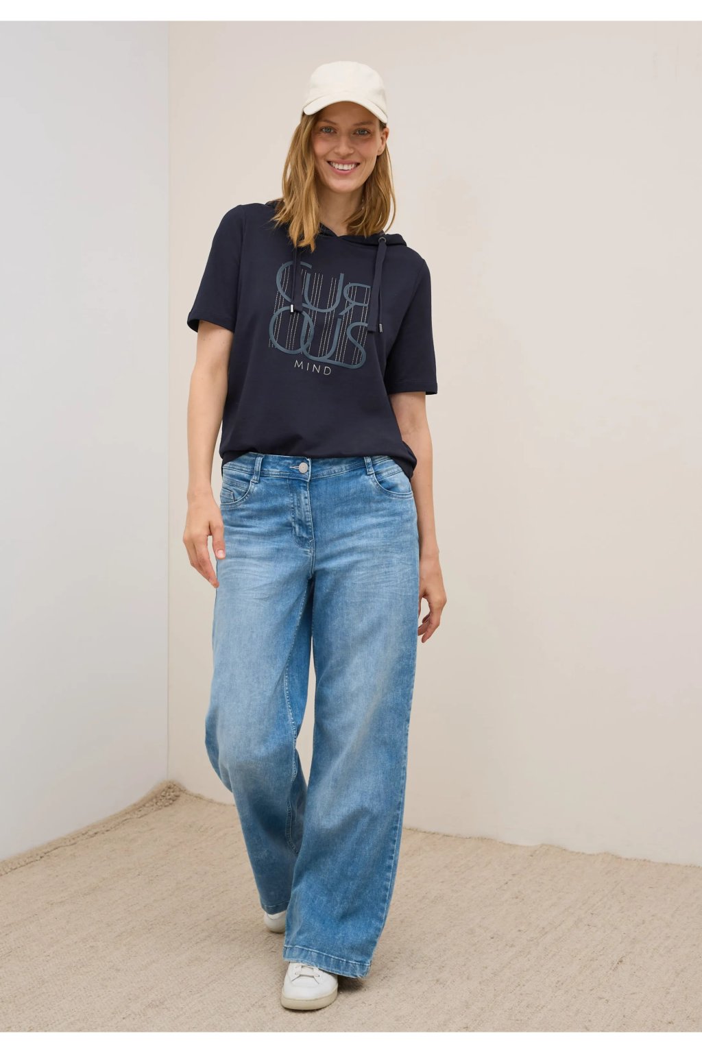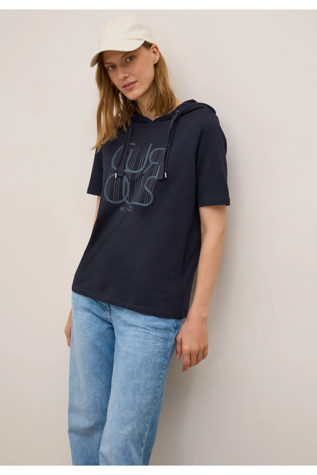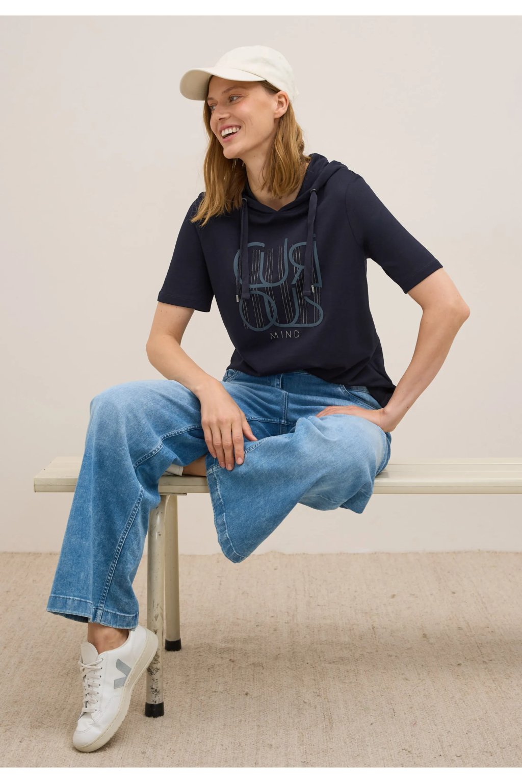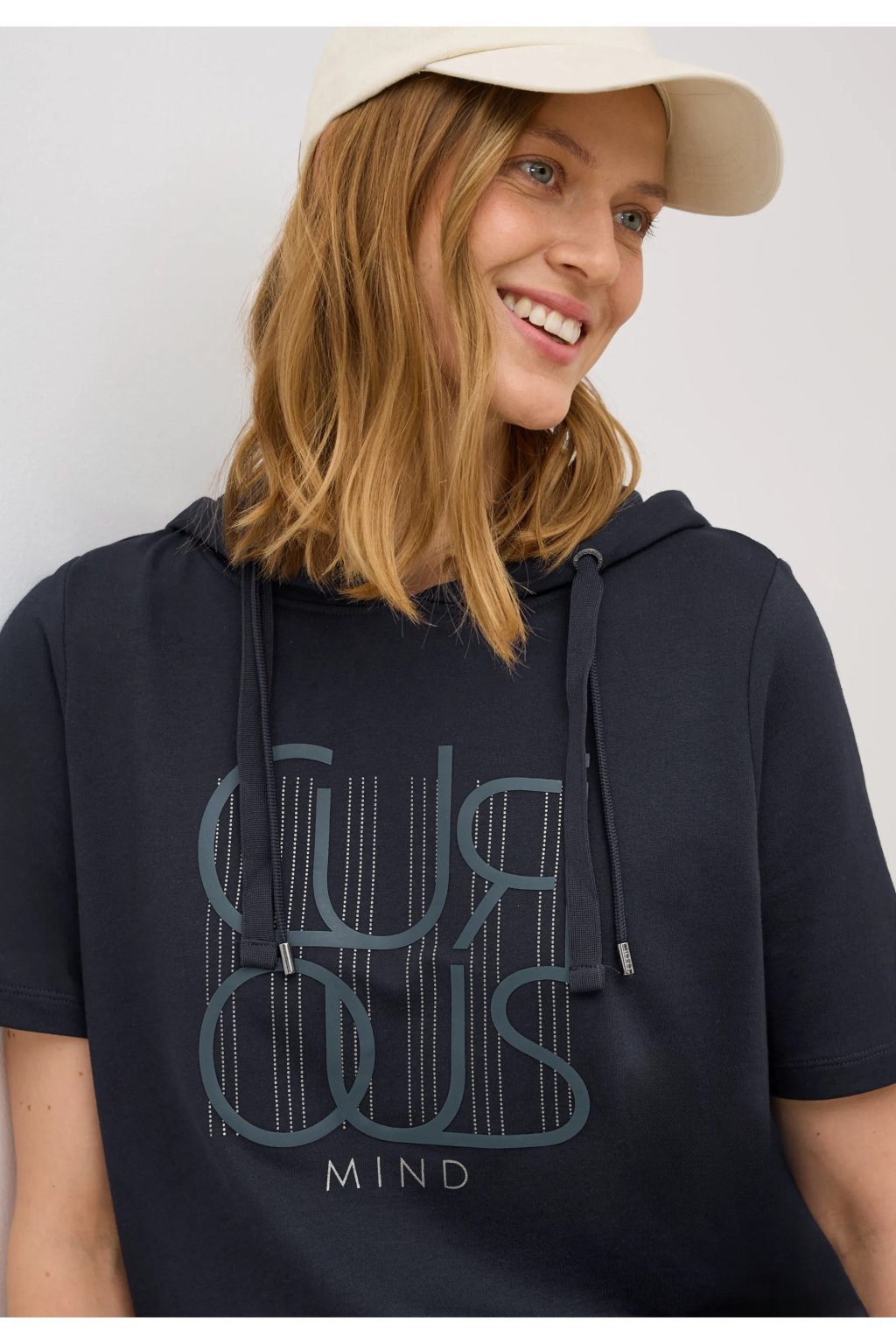 Táto dámska mikina s kapucňou od CECIL s grafickou potlačou a športovým dizajnom je perfektným kúskom pre vaše letné outfity. Kapucňa so sťahovacou šnúrkou a krátke rukávy podčiarkujú ležérny štýl. Mäkká zmes bavlny a modalu je príjemne hebká na dotyk - ideálna pre uvoľnené outfity.