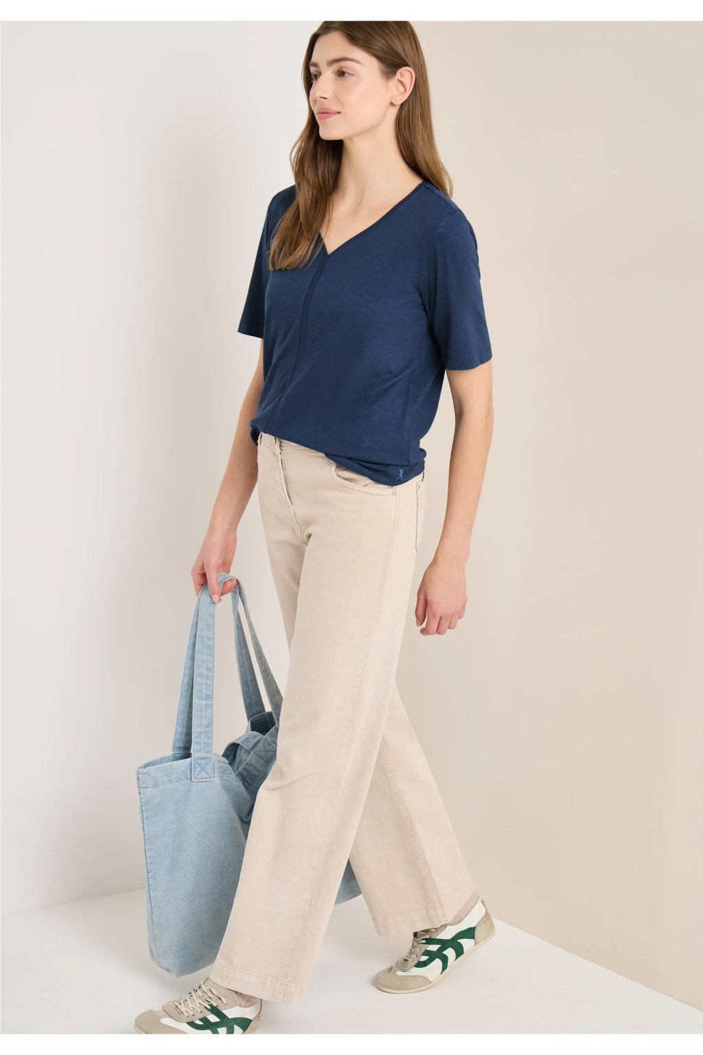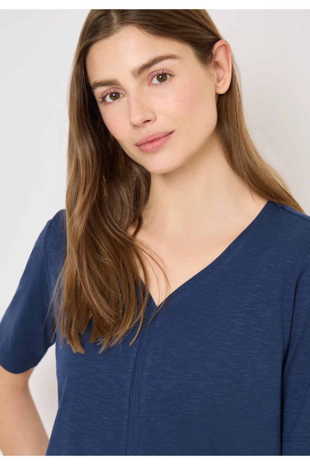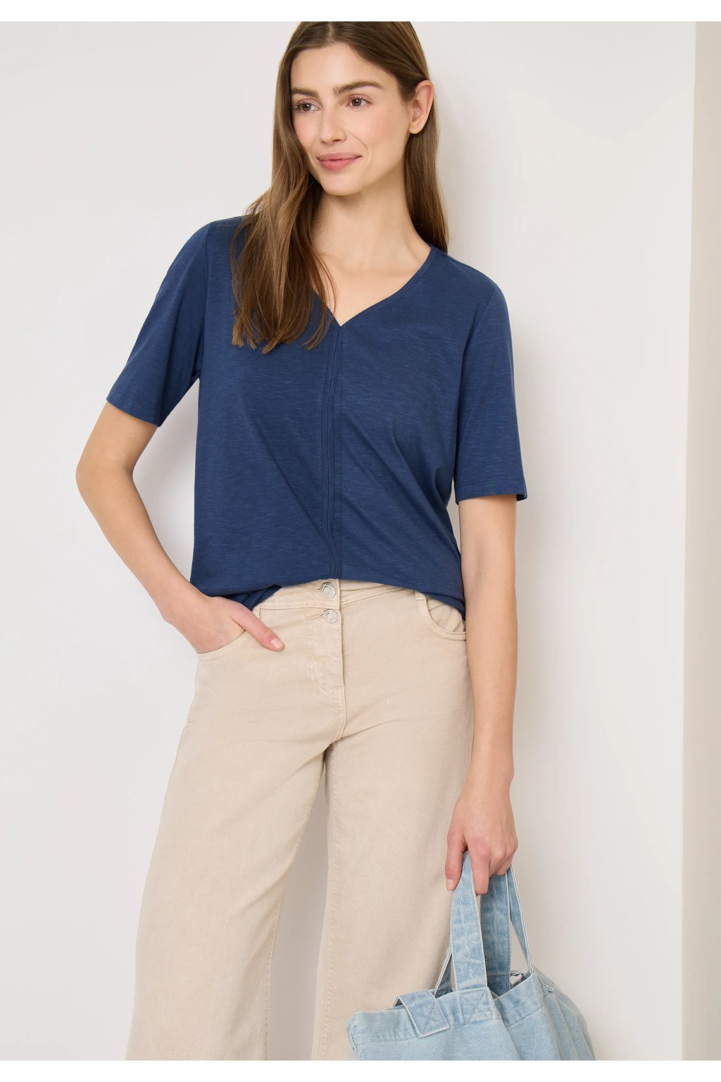 Toto tričko od značky CECIL pre ženy zaujme jemnými detailmi a mäkkým pocitom. Výstrih do V a ozdobné prešívanie dodávajú tomuto ležérnemu tričku ženský nádych. Elastický lem zaisťuje uvoľnený strih. Zmes bavlny a modalu je mimoriadne pohodlná na nosenie.