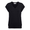 Tento top s krátkymi rukávmi je ušitý z príjemného viskózového úpletu, ktorý krásne splýva a je pohodlný na nosenie. Vďaka širšiemu lemu v spodnej časti má top ľahko blúzkový efekt, takže lichotí postave a dá sa nosiť ako voľne, tak úhľadne zastrčený.