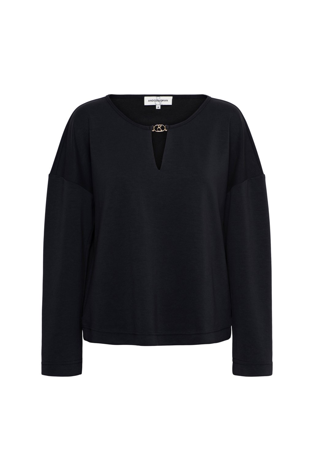 Tento dámsky top This & Co Woman je vyrobený z krásnej a kvalitnej Modal tkaniny, ktorá je hebká, príjemná na dotyk a elegantne sa prispôsobí postave. Má okrúhly výstrih so štýlovou zlatou sponou, dlhé rukávy a nadčasový strih, vďaka čomu je skvelou voľbou ako na každodenné nosenie, tak aj na večerné príležitosti, kedy chcete pôsobiť žensky a sofistikovane.