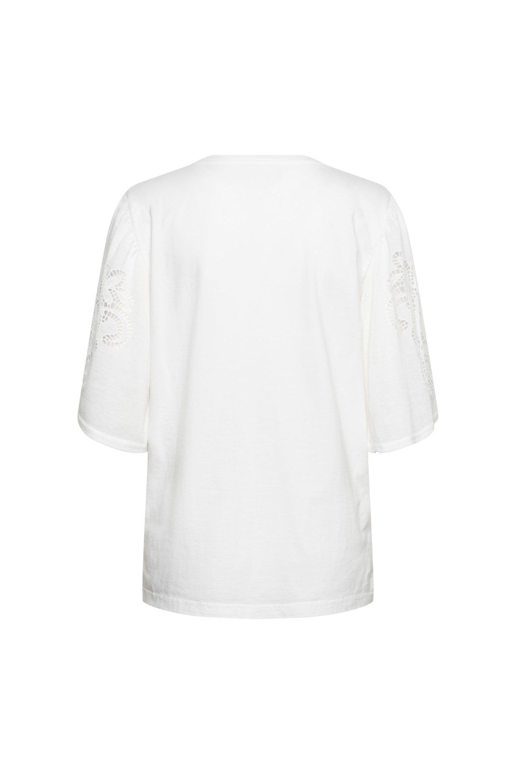 Elegantný top od &Co s okrúhlym výstrihom a krátkymi rukávmi je ideálnym kúskom pre jemný a ženský outfit. Rukávy zdobí krásna prestrihová výšivka, ktorá dodáva modelu ľahkosť a štýlový detail. Príjemný džersejový materiál zaisťuje maximálny komfort pri nosení po celý deň. Skvele sa hodí ako k džínsom, tak k elegantnejším nohaviciam či sukni - univerzálny kúsok do každého šatníka.