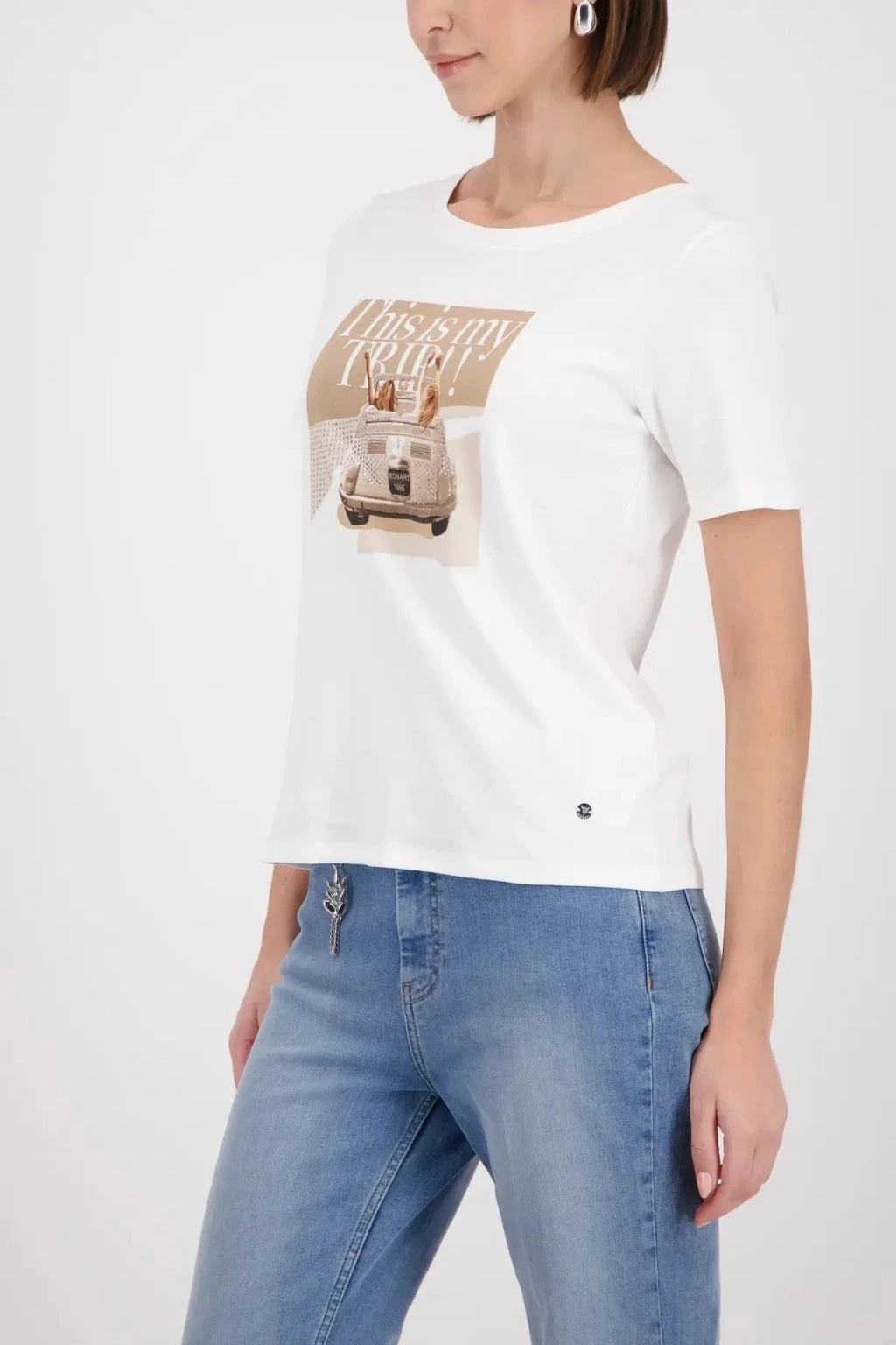 Dámske tričko s originálnou potlačou, ktoré dodá vášmu outfitu moderný a svieži vzhľad. Má pohodlný rovný strih, krátky rukáv a je vyrobené z príjemného materiálu, ktorý zaisťuje komfort pri nosení po celý deň. Skvele sa kombinuje s džínsami, sukňou aj sakom - ideálna voľba pre voľný čas aj ležérny mestský štýl.